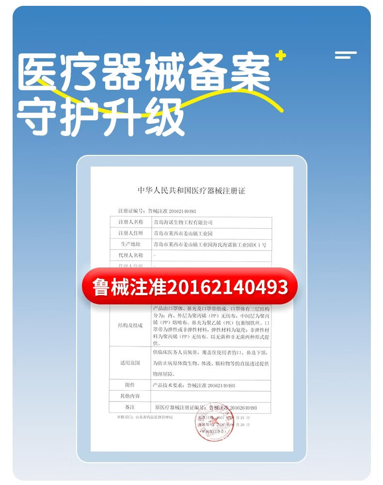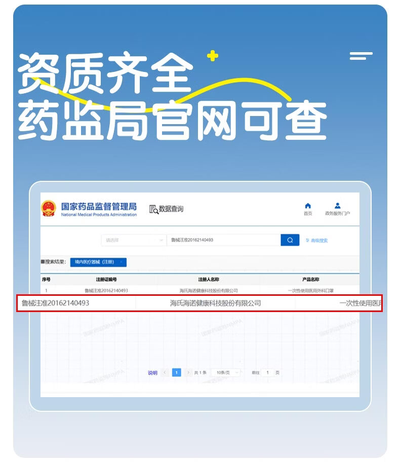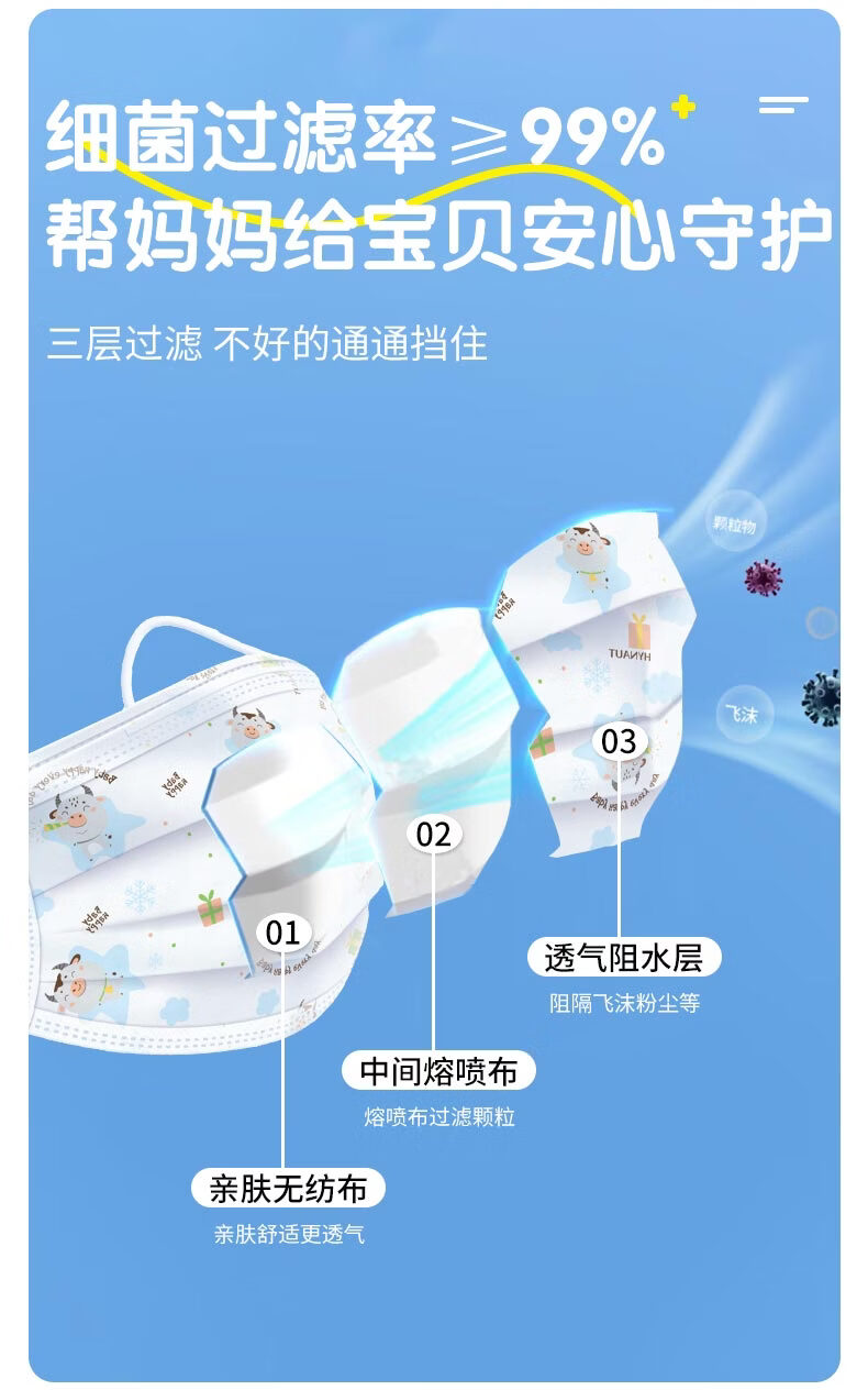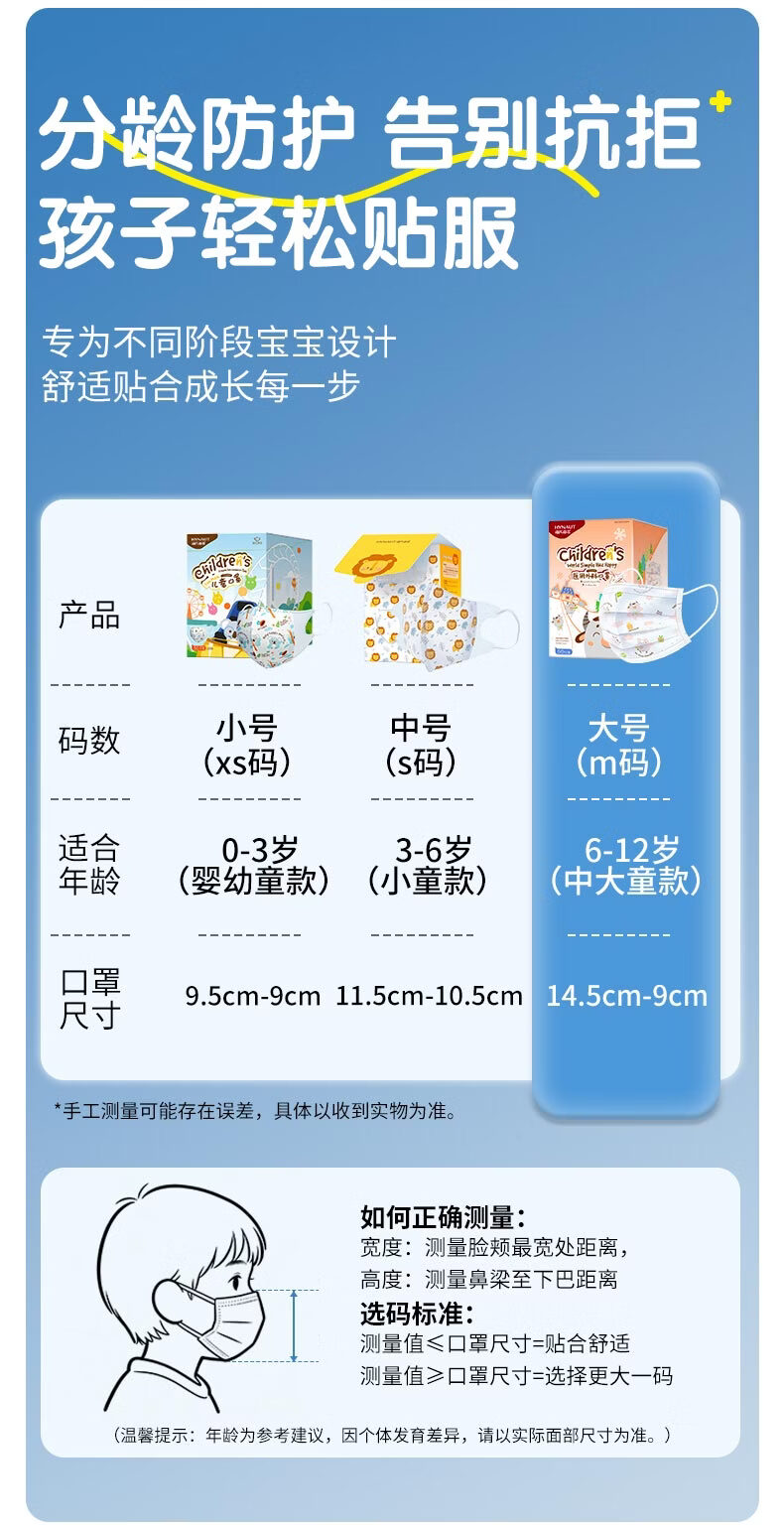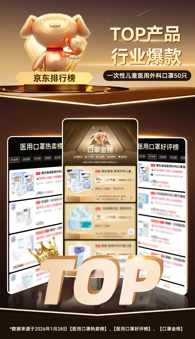 海氏海诺医用外科口罩独立包装一只一袋6-12岁儿童口罩医用灭菌级秋冬50只