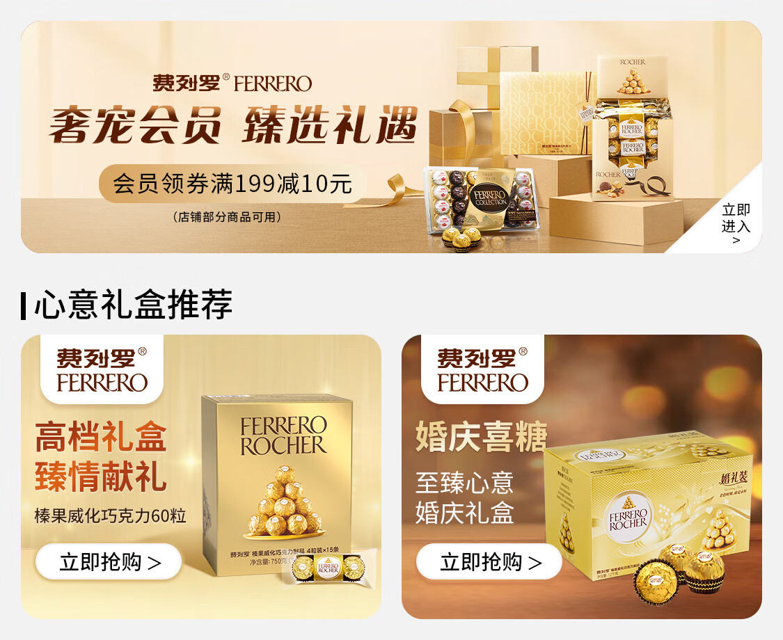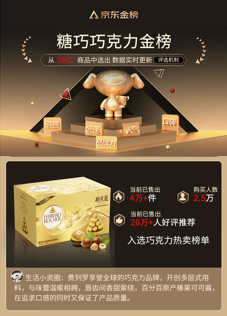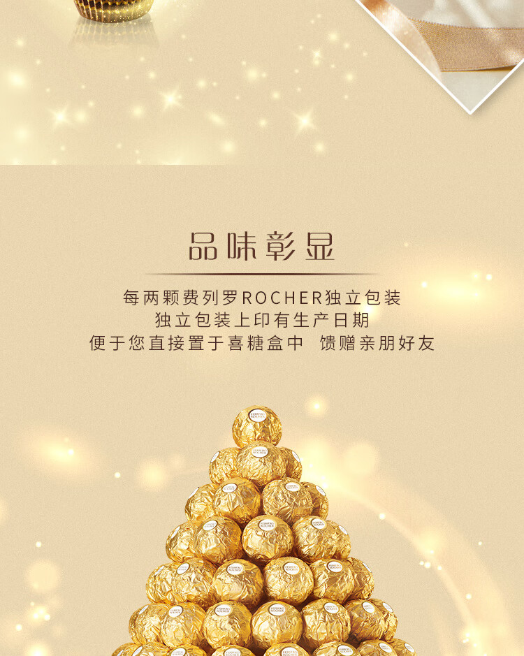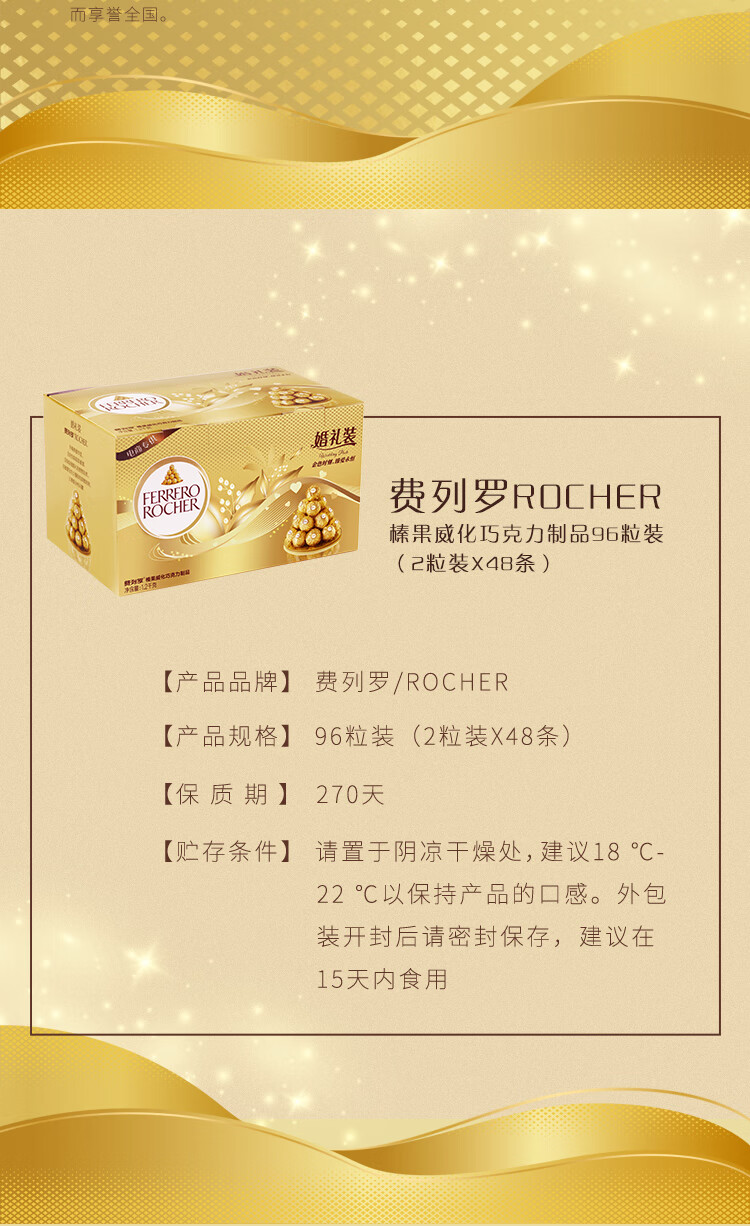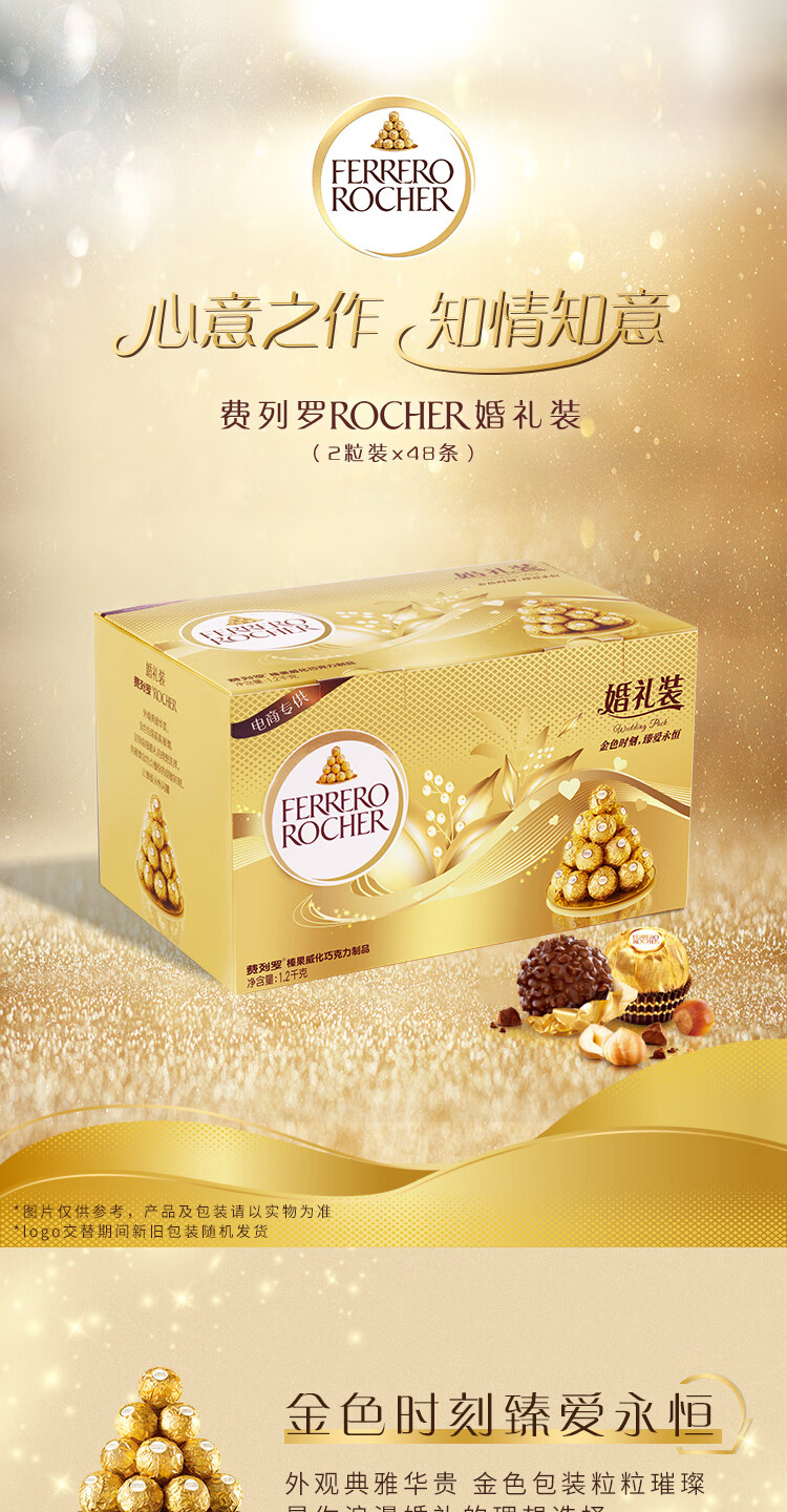 费列罗 巧克力 2粒*48条 96粒1200g 婚礼装 零食糖果 年货礼盒