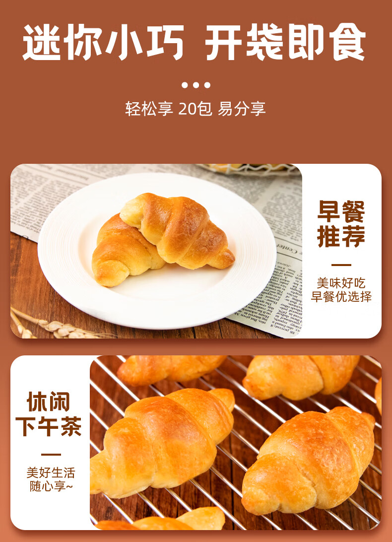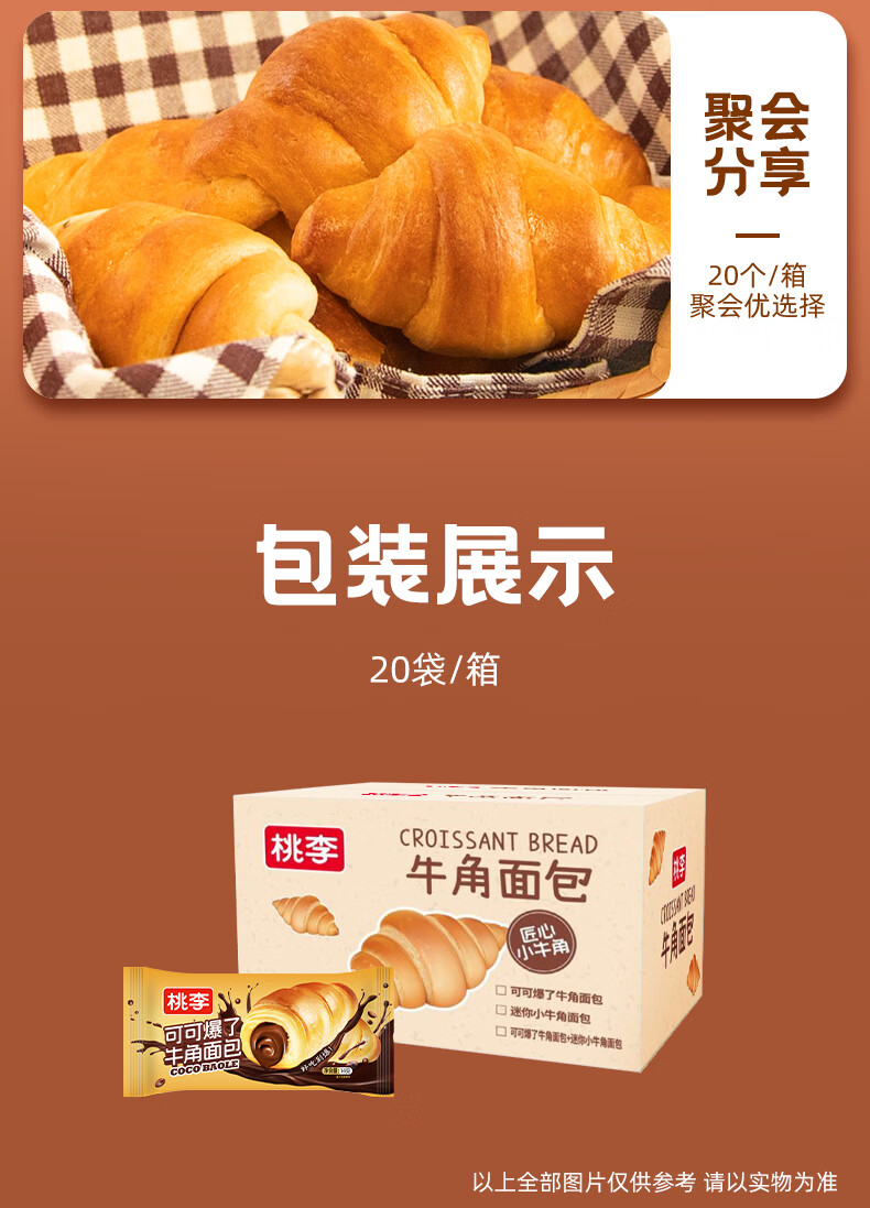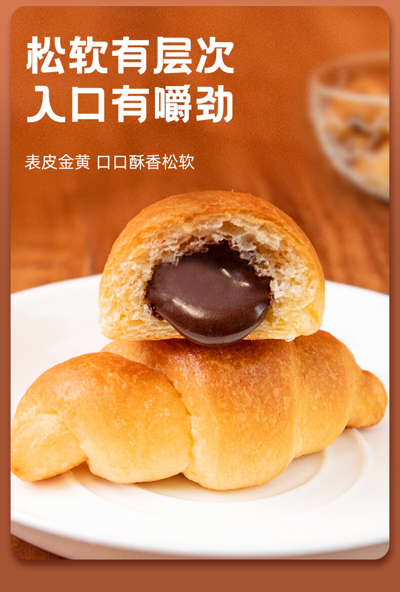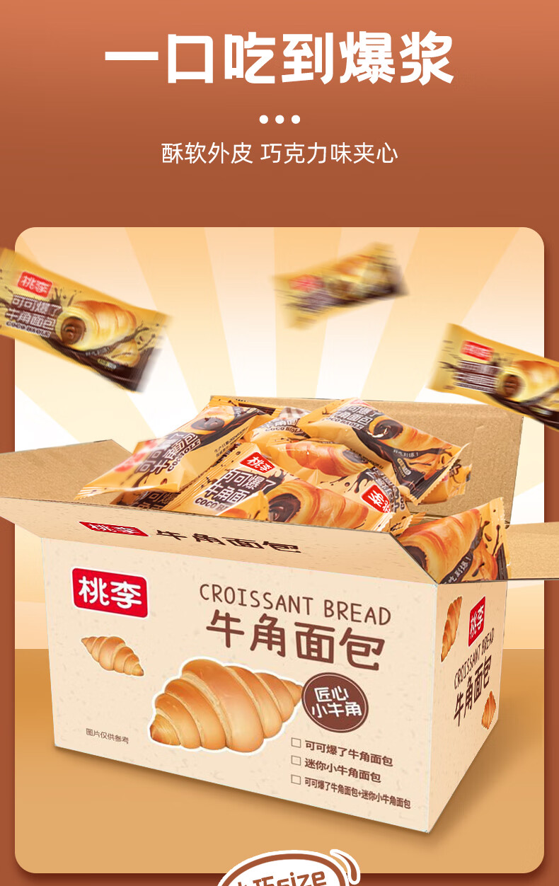桃李可可爆了迷你小牛角面包280g巧克力夹心可颂糕点心早餐办公室零食