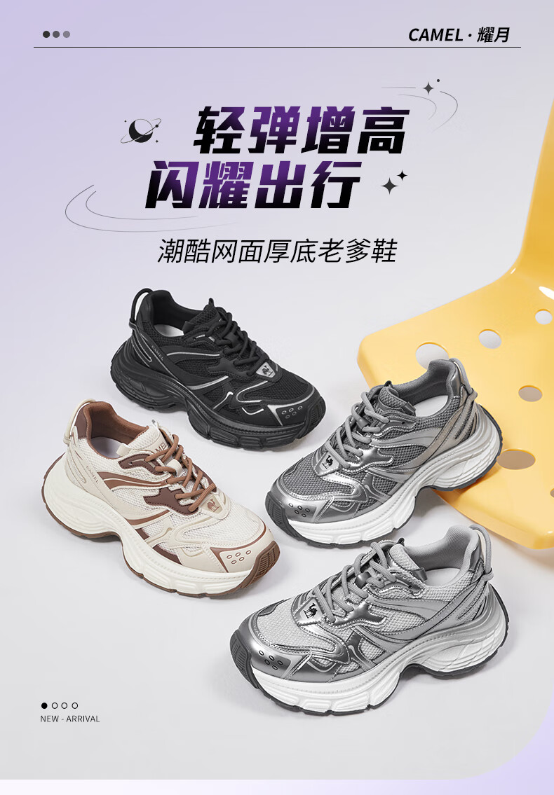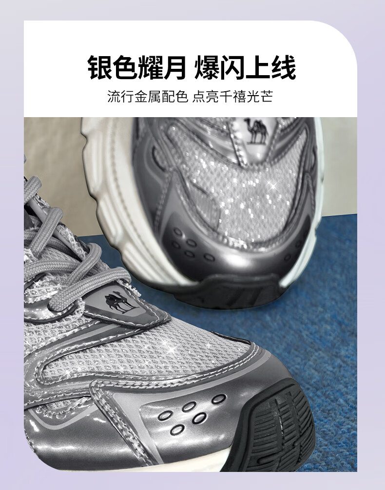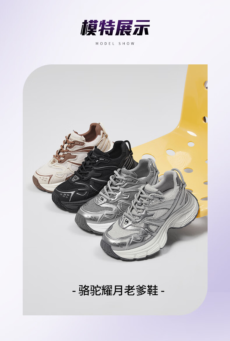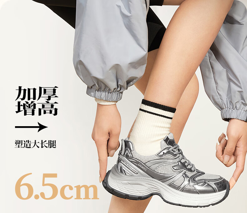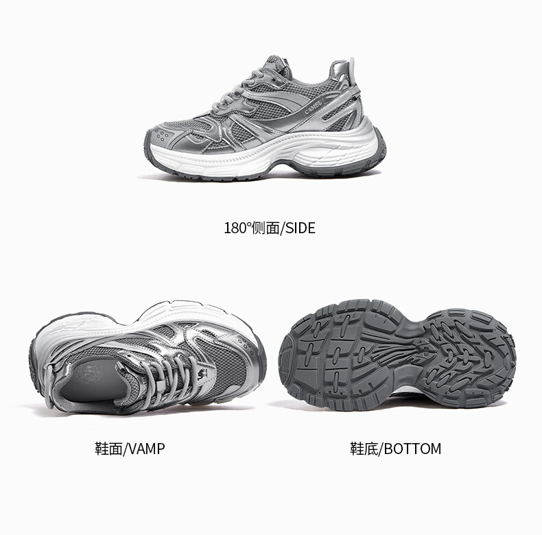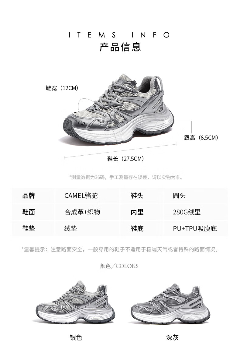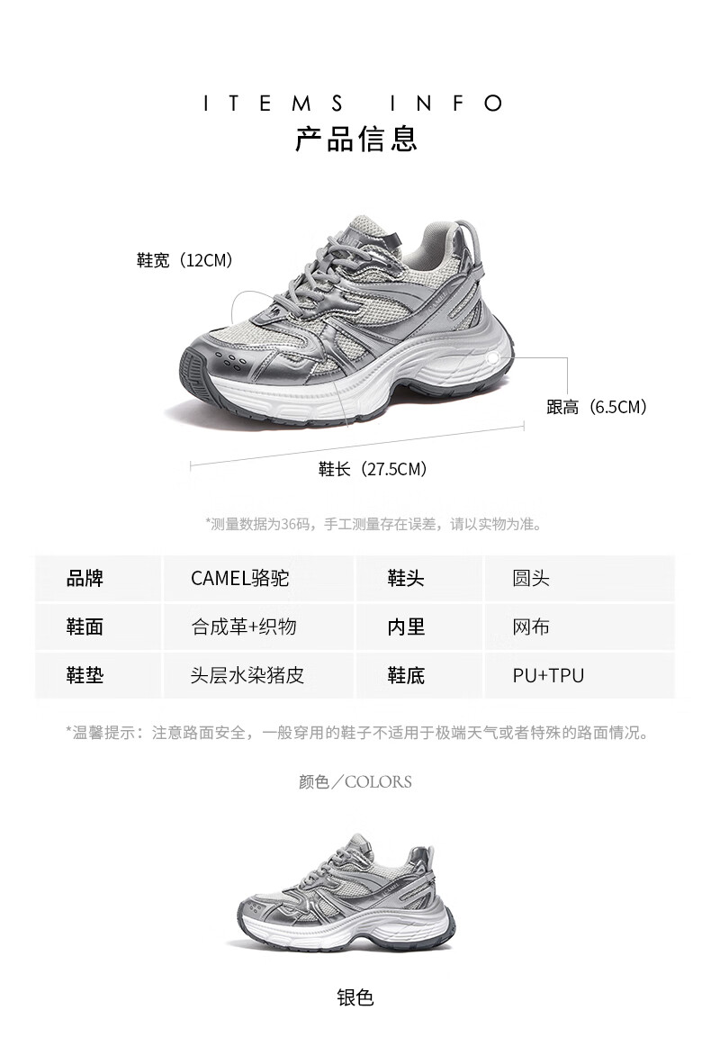 骆驼(CAMEL)【耀月】老爹鞋女潮酷撞色厚底休闲鞋 L24A255651 银色 37