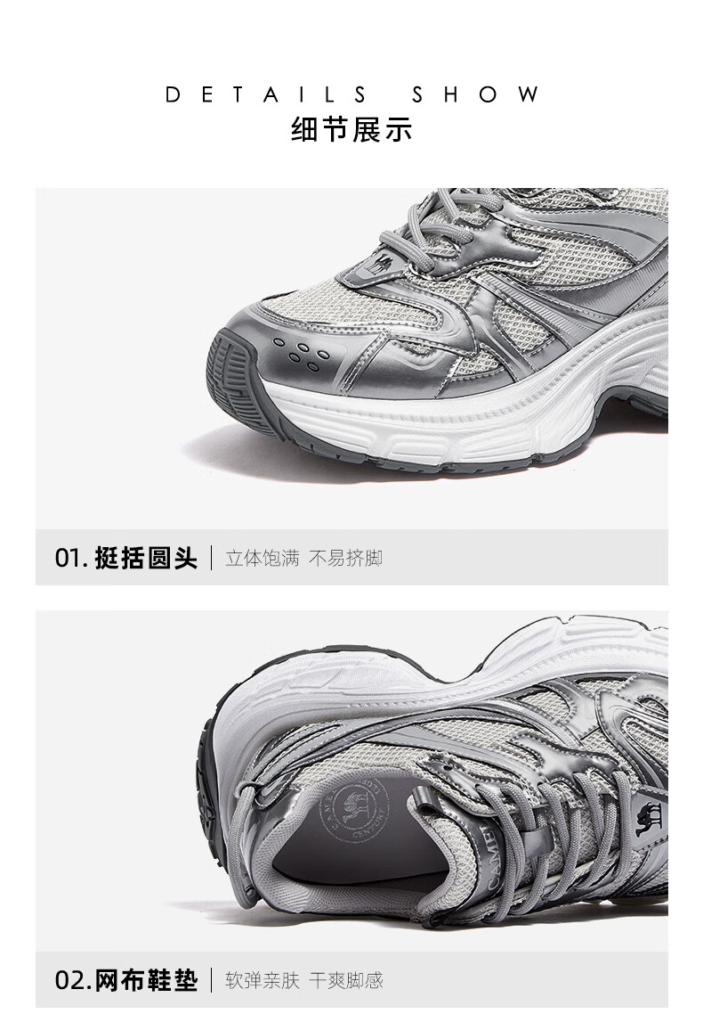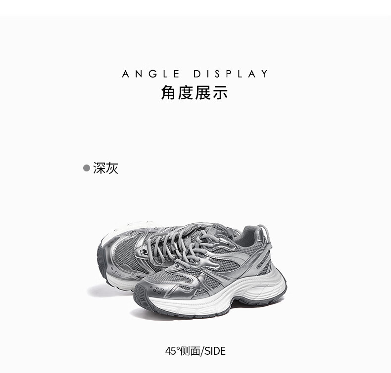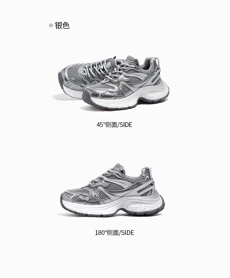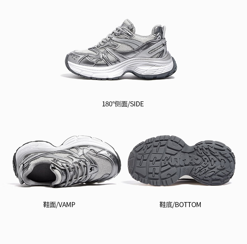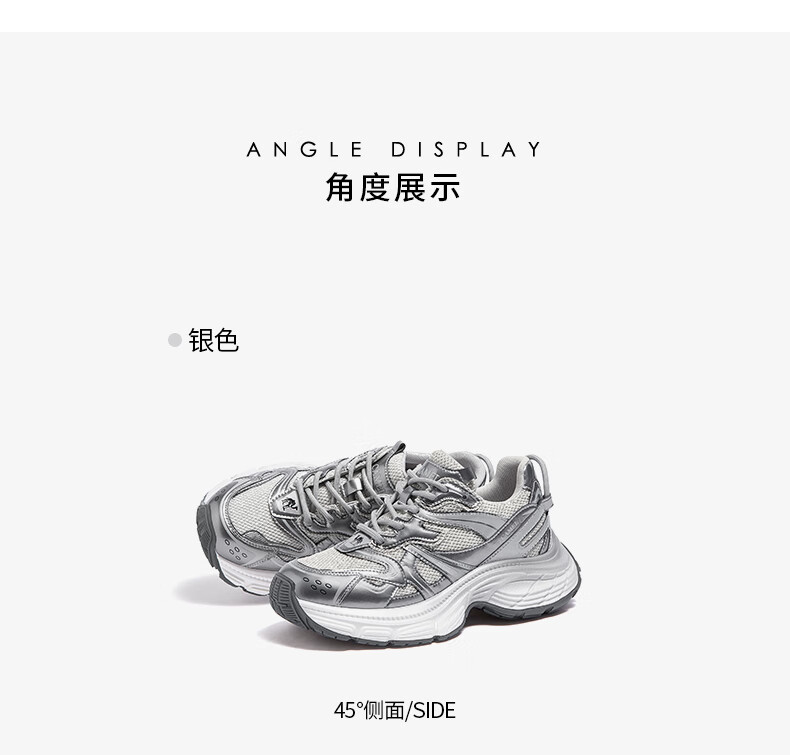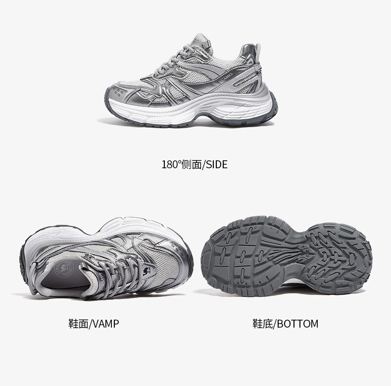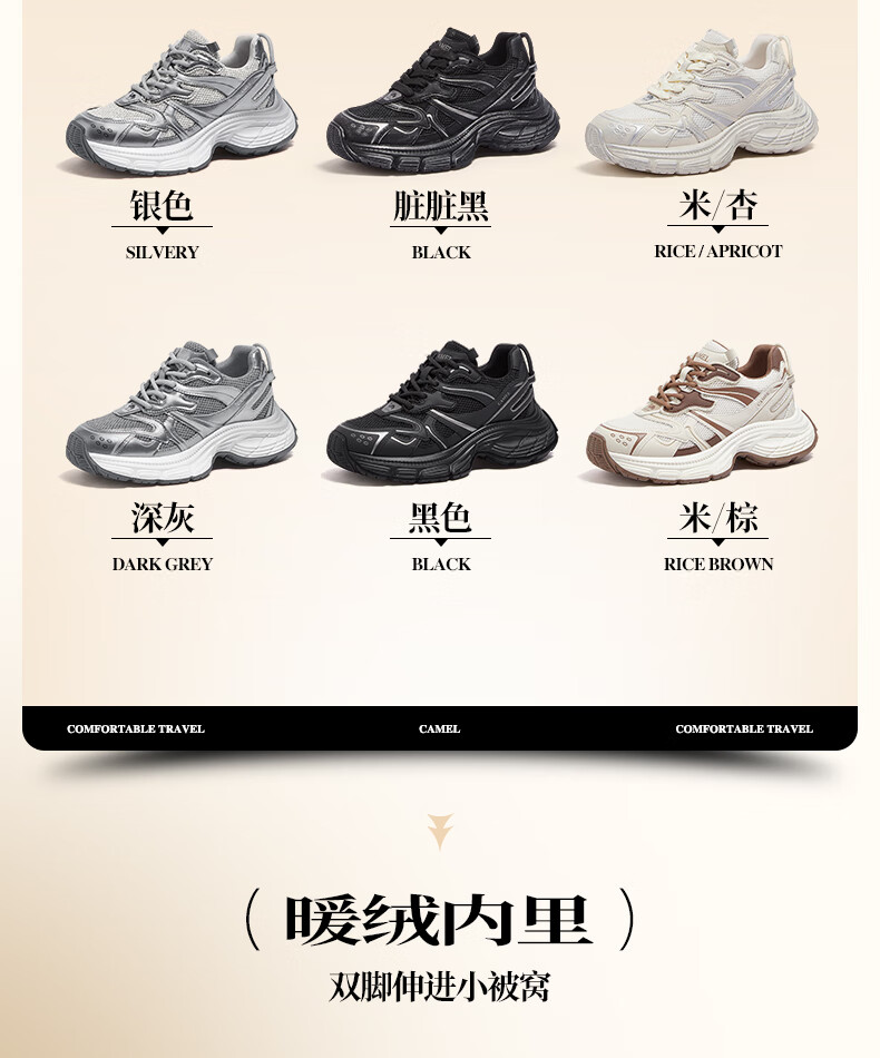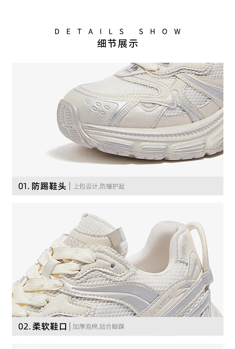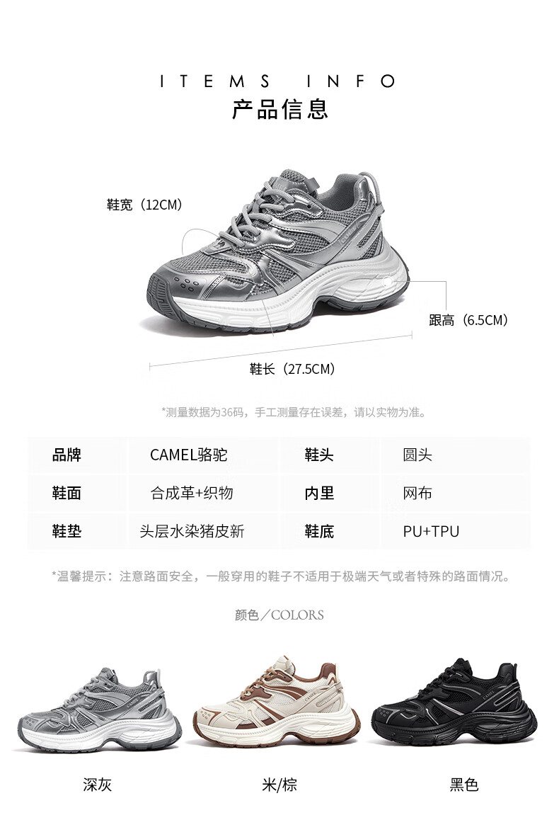 骆驼(CAMEL)【耀月】老爹鞋女潮酷撞色厚底休闲鞋 L24A255651 银色 37