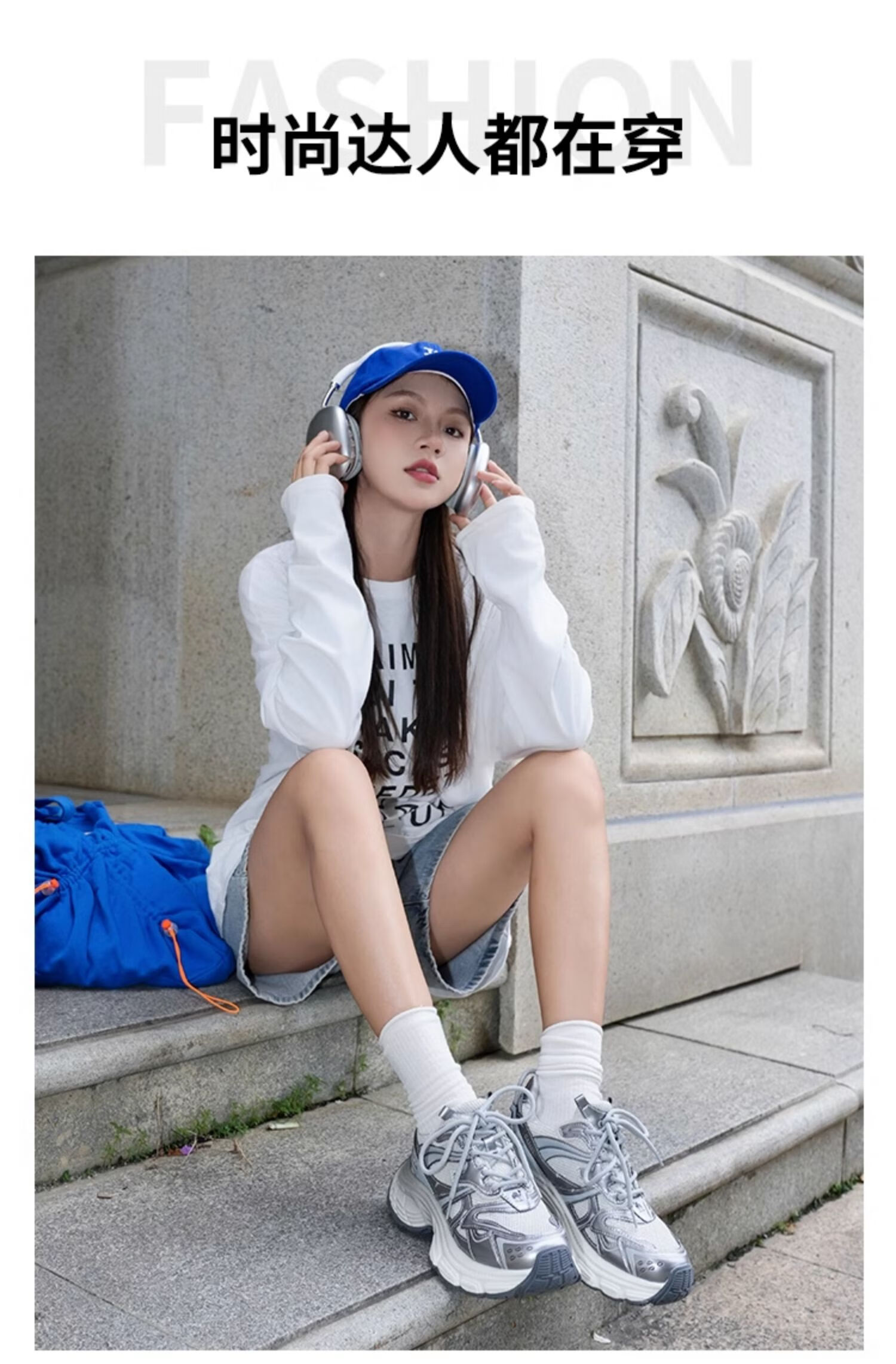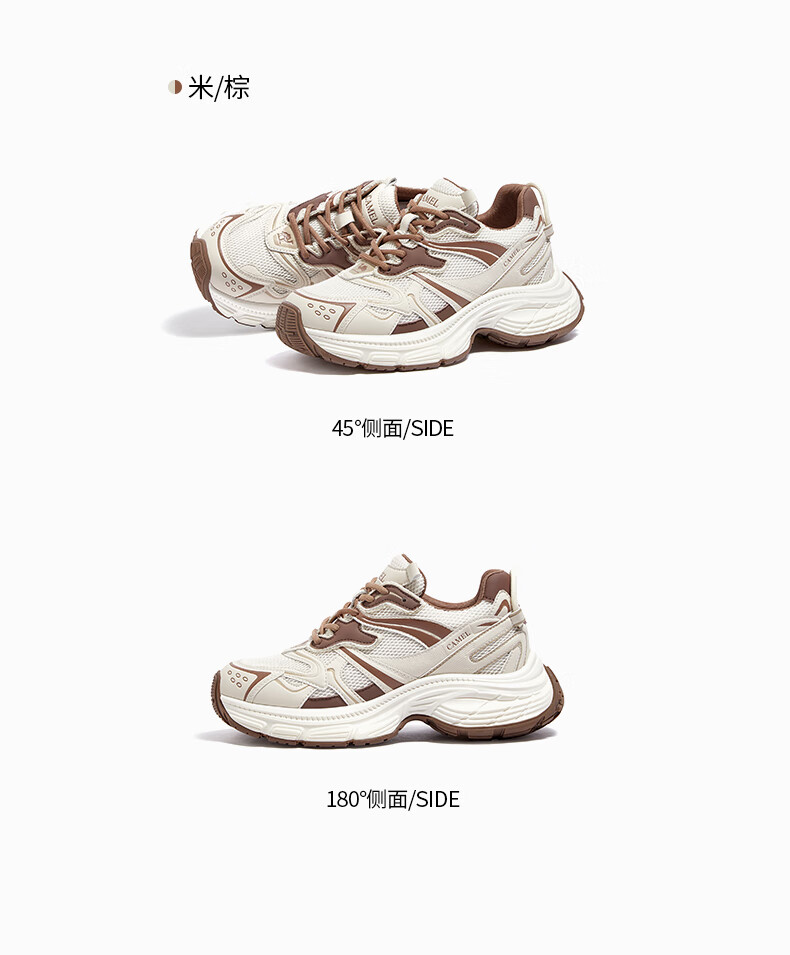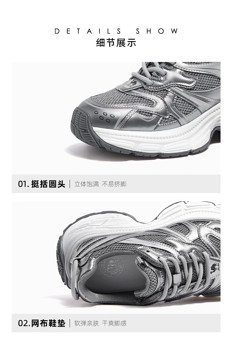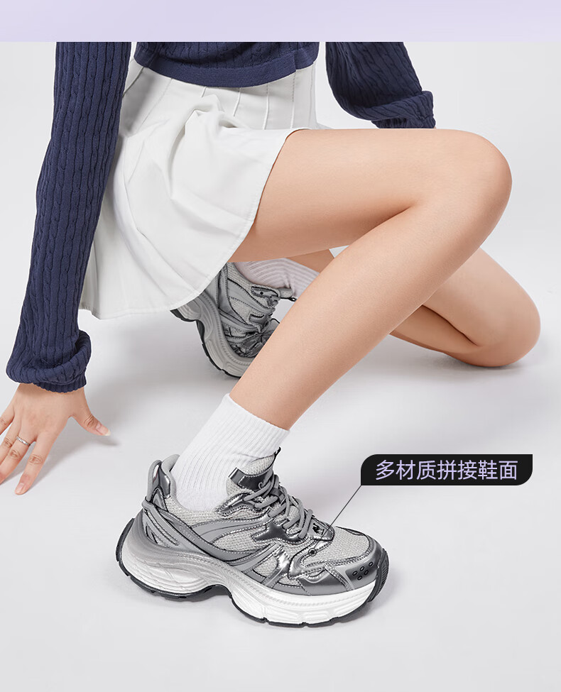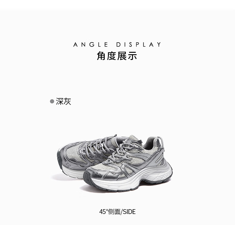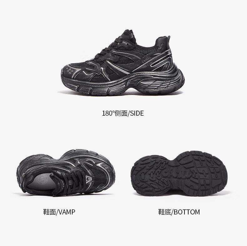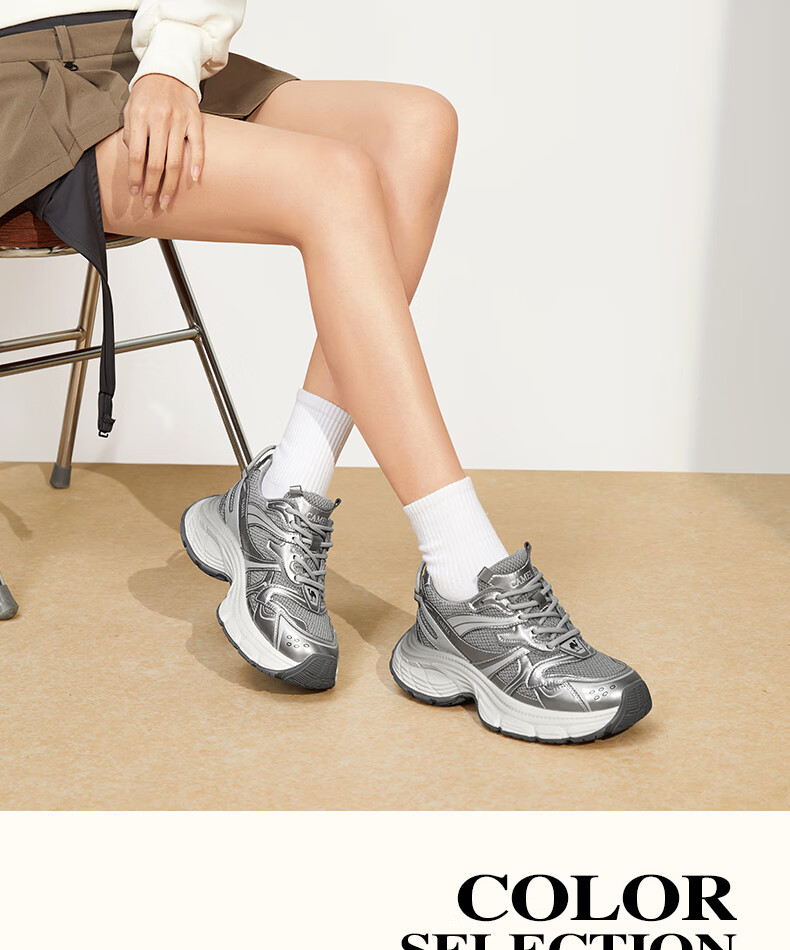骆驼(CAMEL)【耀月】老爹鞋女潮酷撞色厚底休闲鞋 L24A255651 银色 37