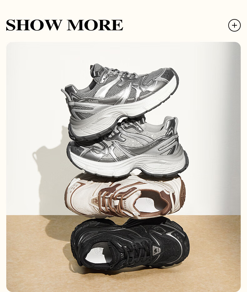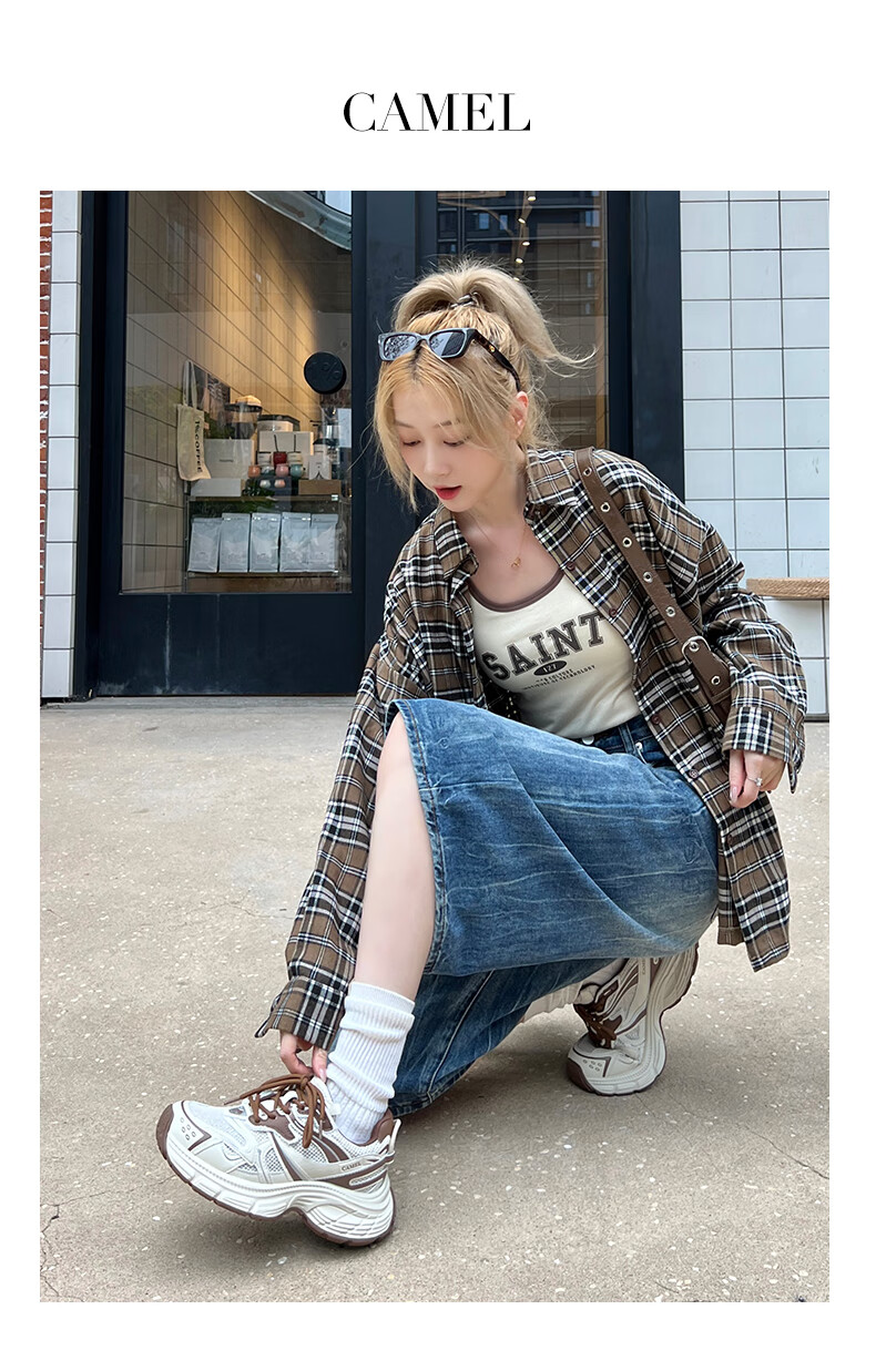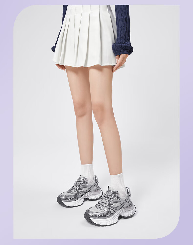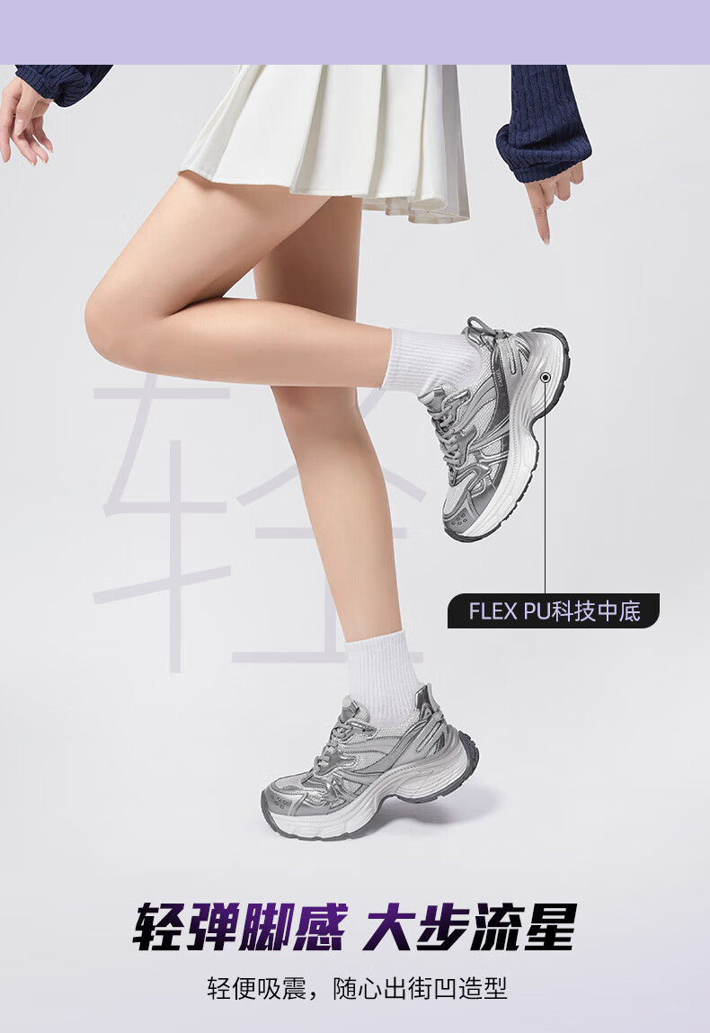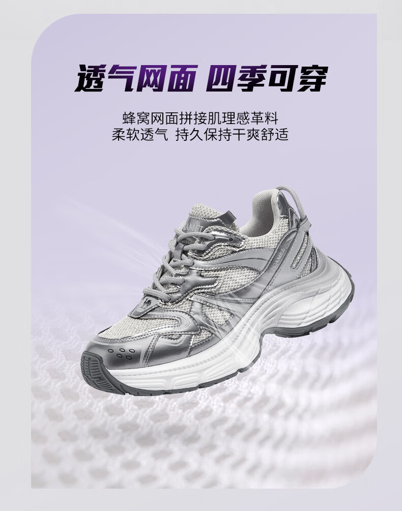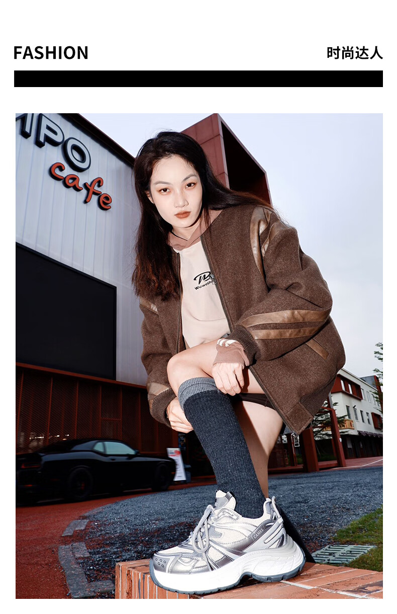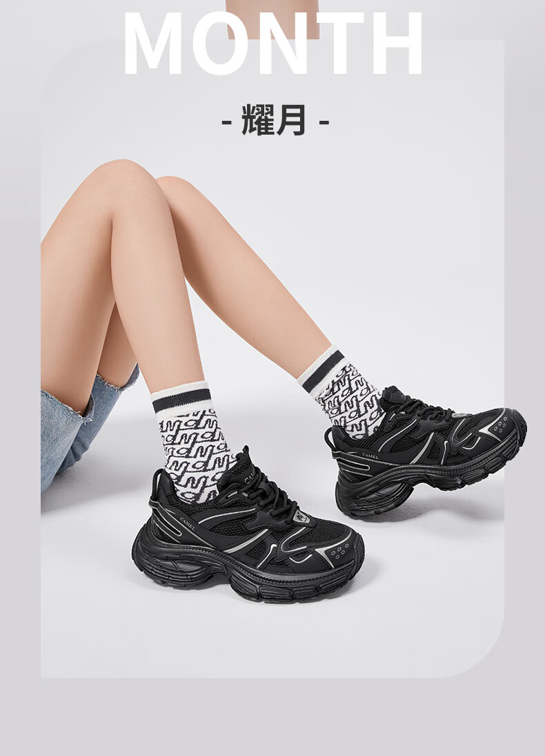 骆驼(CAMEL)【耀月】老爹鞋女潮酷撞色厚底休闲鞋 L24A255651 银色 37