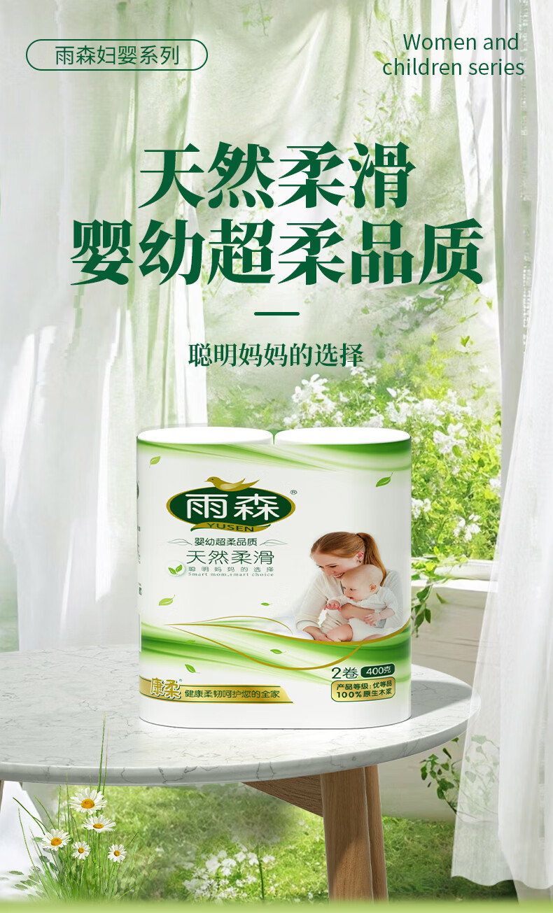 雨森(YUSEN)卷纸母婴6层加厚柔韧亲肤妇婴适用 无芯厕所经期适用 6层 200g/卷*10卷 【共5提】活动款