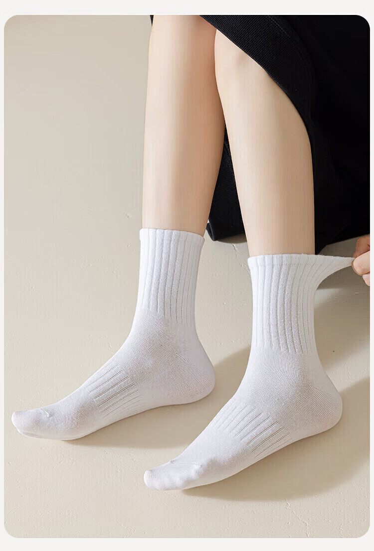 极烁【5双装】中筒袜秋冬透气商务休闲袜四季男士纯黑色百搭中筒袜 【5双装】黑色中筒袜 均码