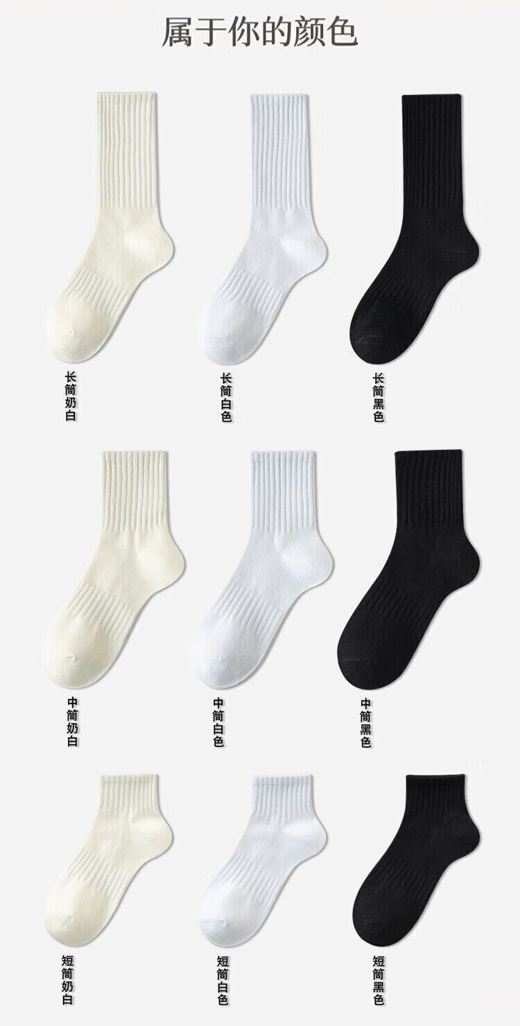 【爆款运动袜】白色袜子长袜秋冬季厚款底中筒袜男士长袜篮球袜 【1双装】颜色随机 均码