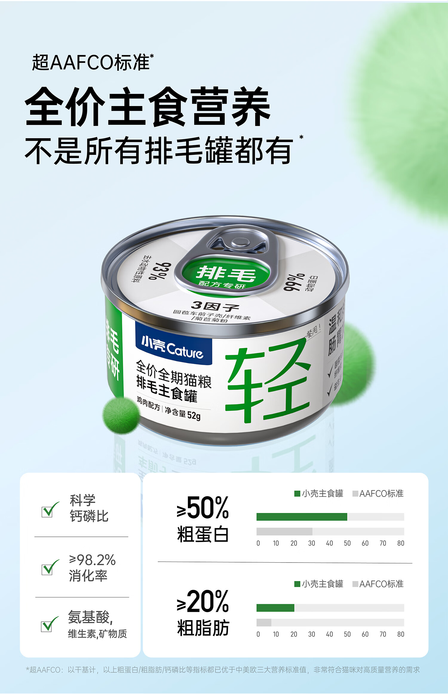 小壳排毛罐猫咪全价全期主食罐头车前子化毛功能湿粮罐头 【排毛尝鲜装】车前子排毛罐鸡肉味 52g*2罐