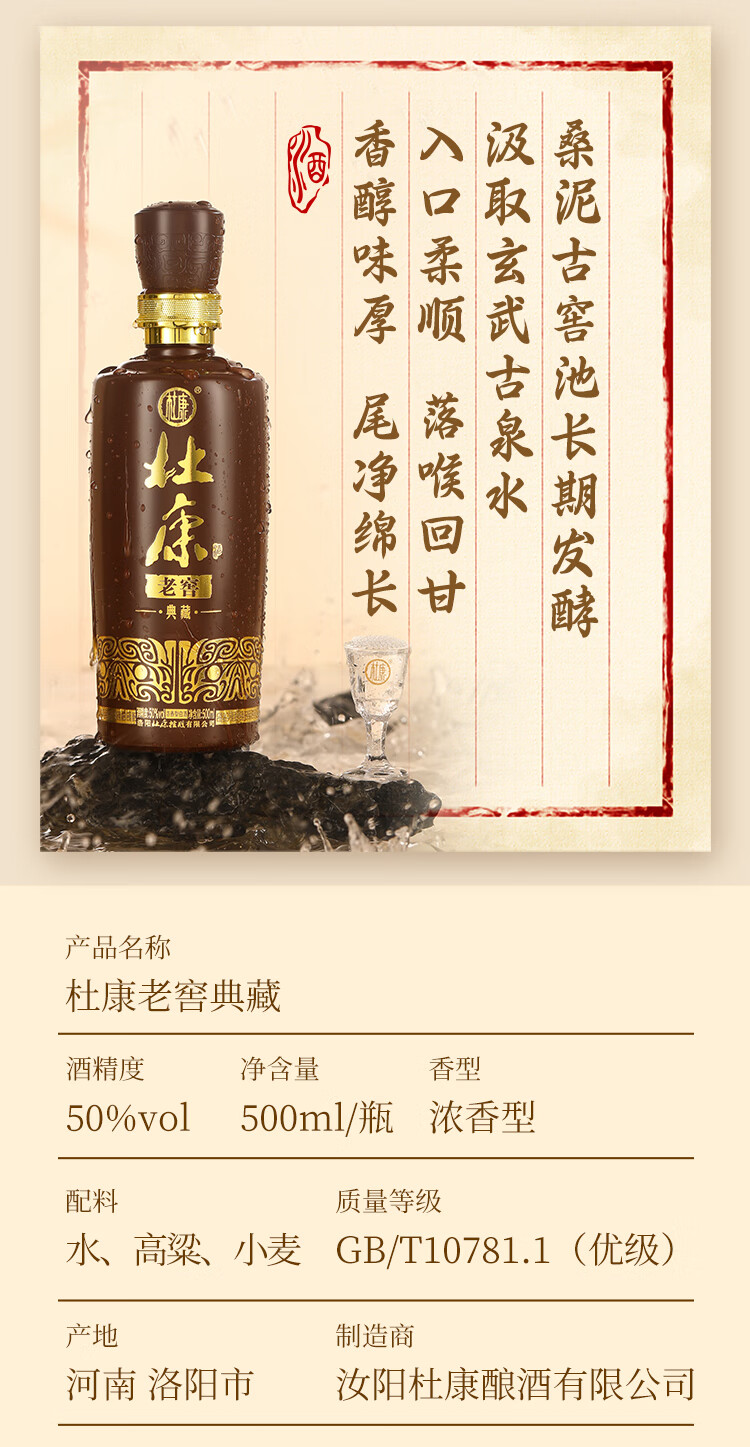 杜康 老窖典藏 浓香型白酒 50度 500ml*6瓶 整箱装【店铺爆款】