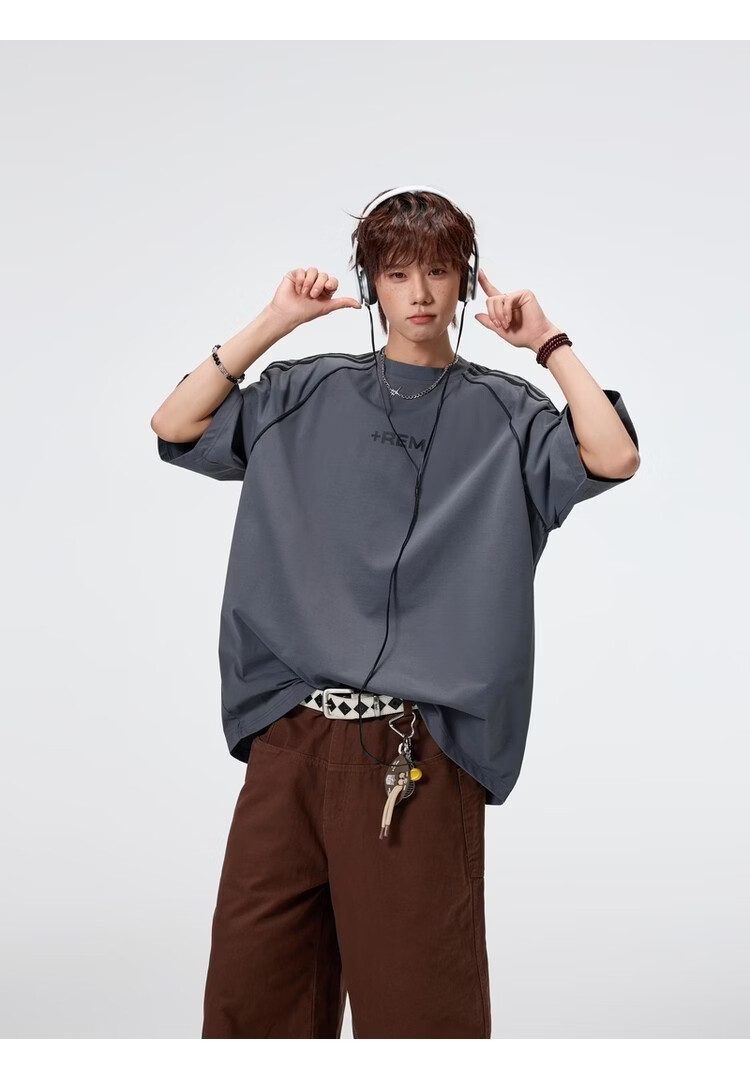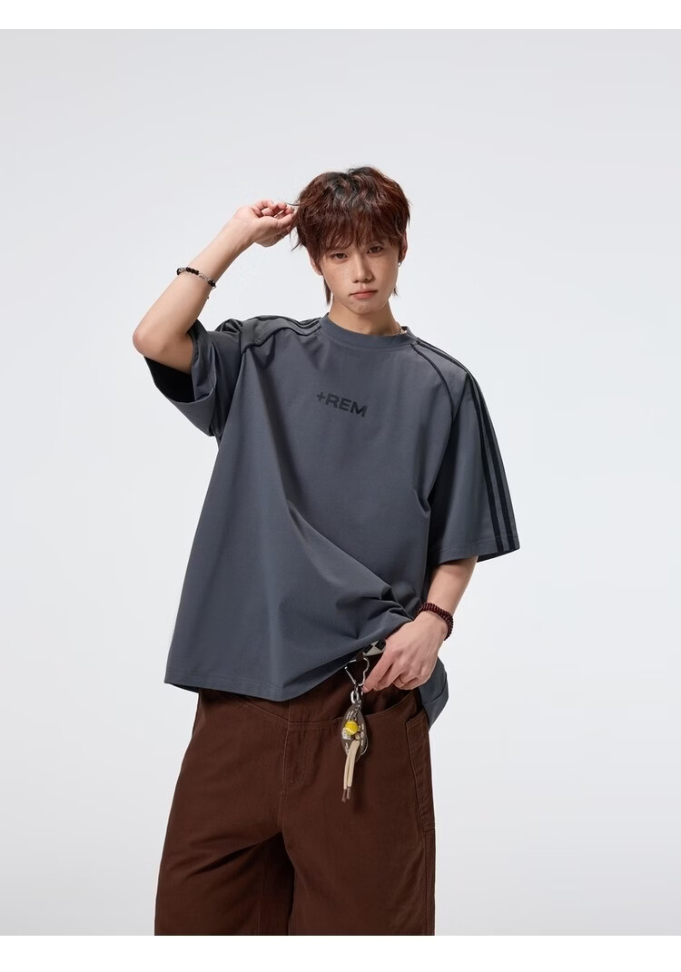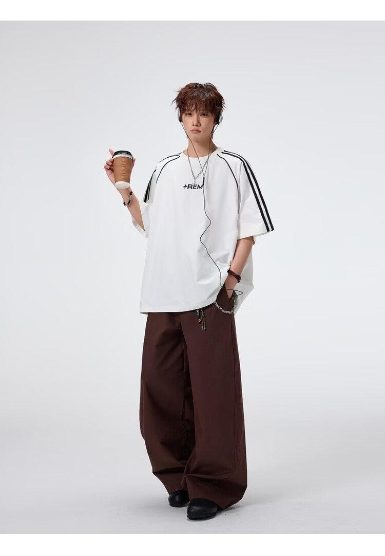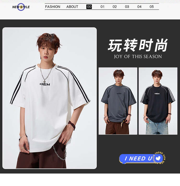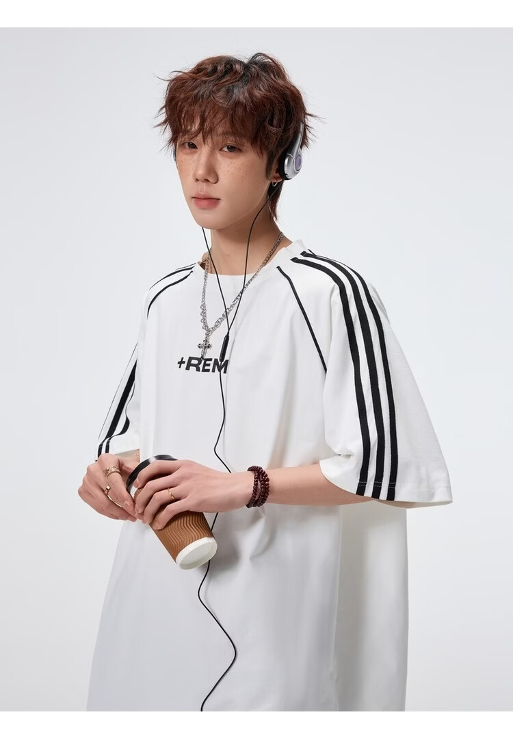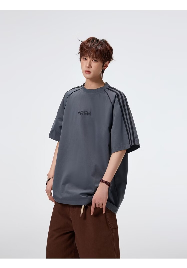 NEW OR MODE美式条纹运动短袖t恤男夏季潮牌高街痞帅青少年宽松休闲半袖上衣 黑色【高品质】 M 【建议90-110斤】