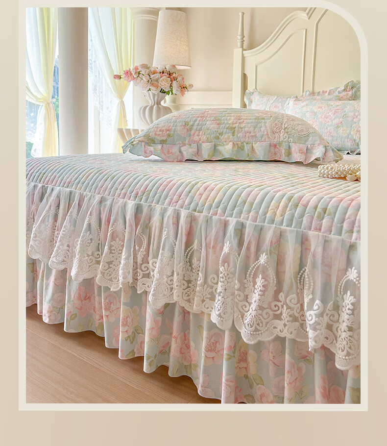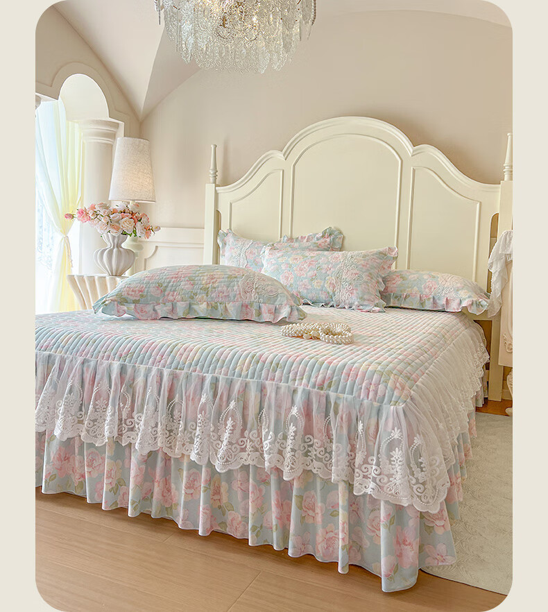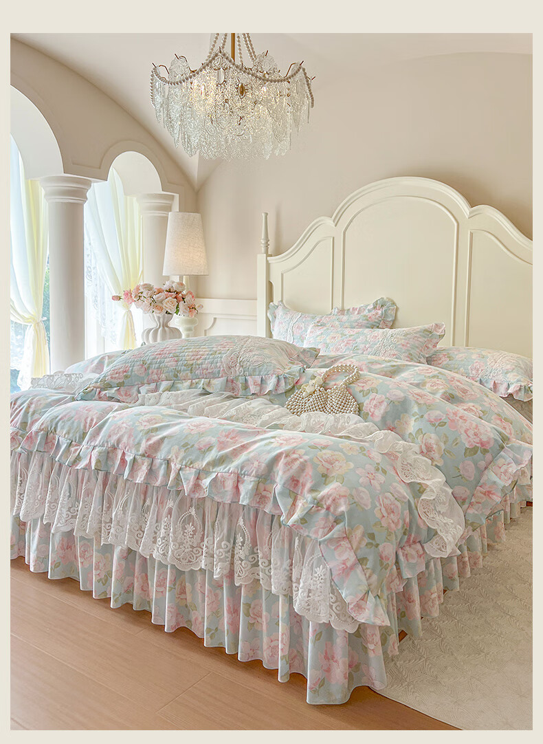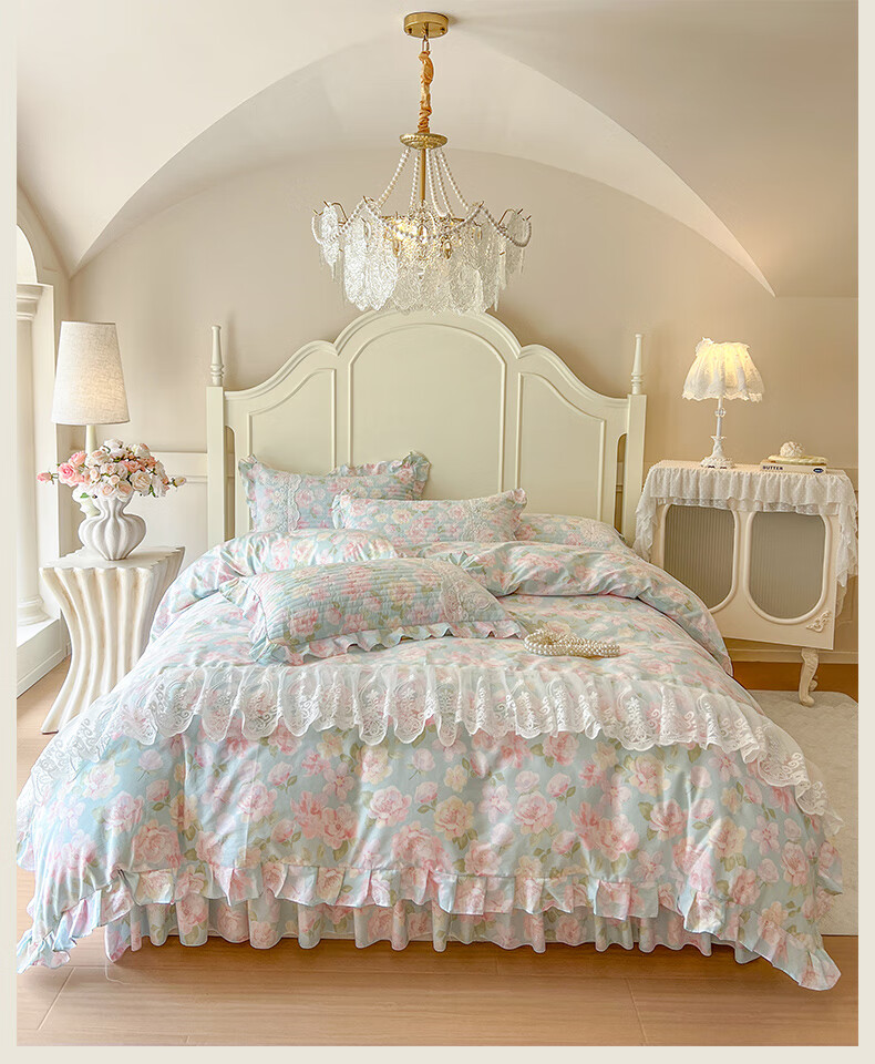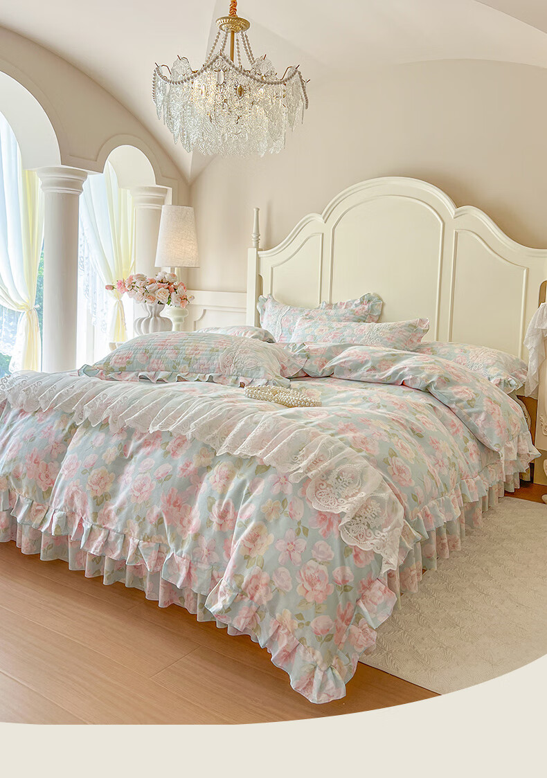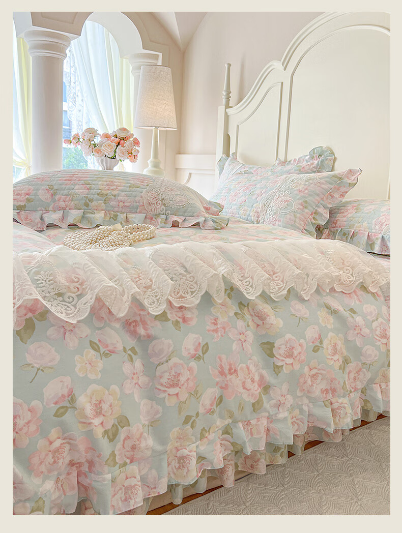 元族2025新款全棉纯棉印花床裙四件套床裙 花团锦簇 床裙款 1.5四件套-被套200x230