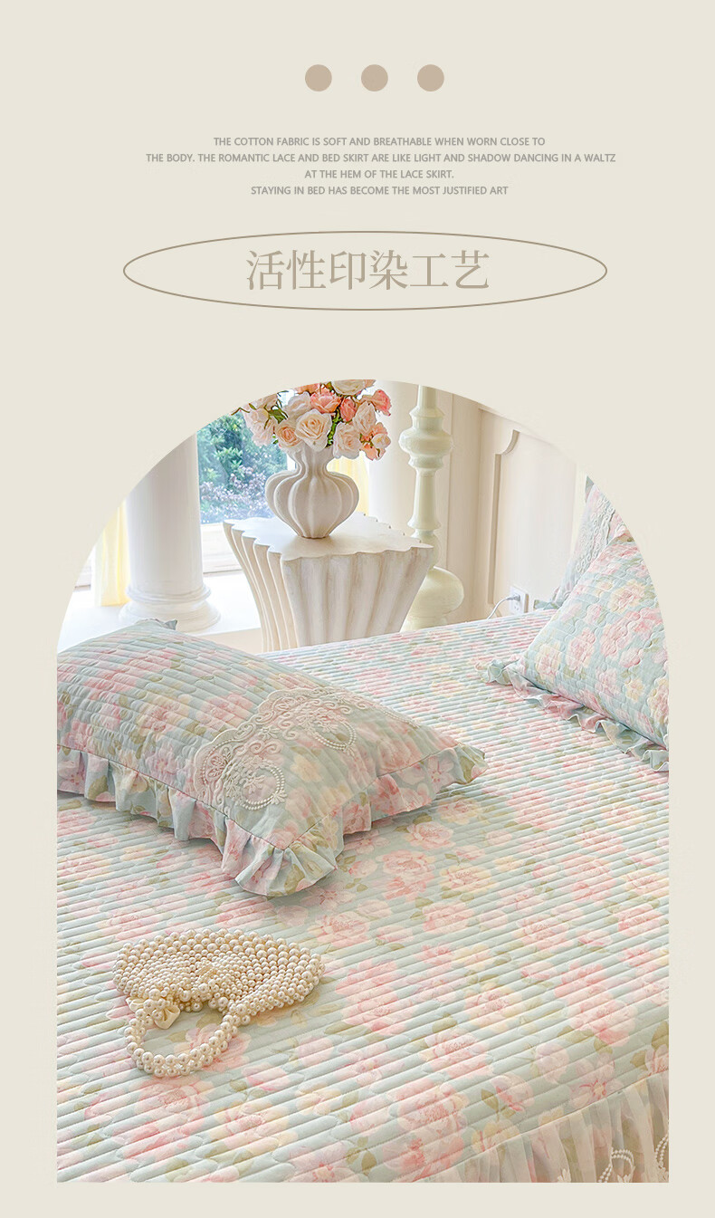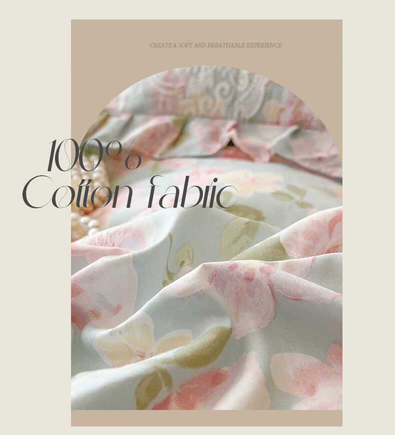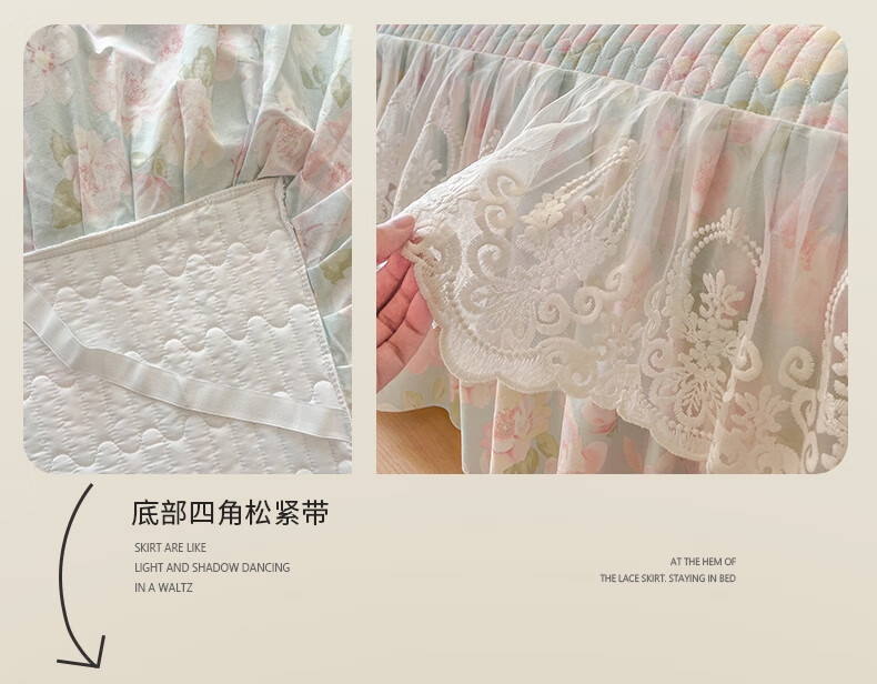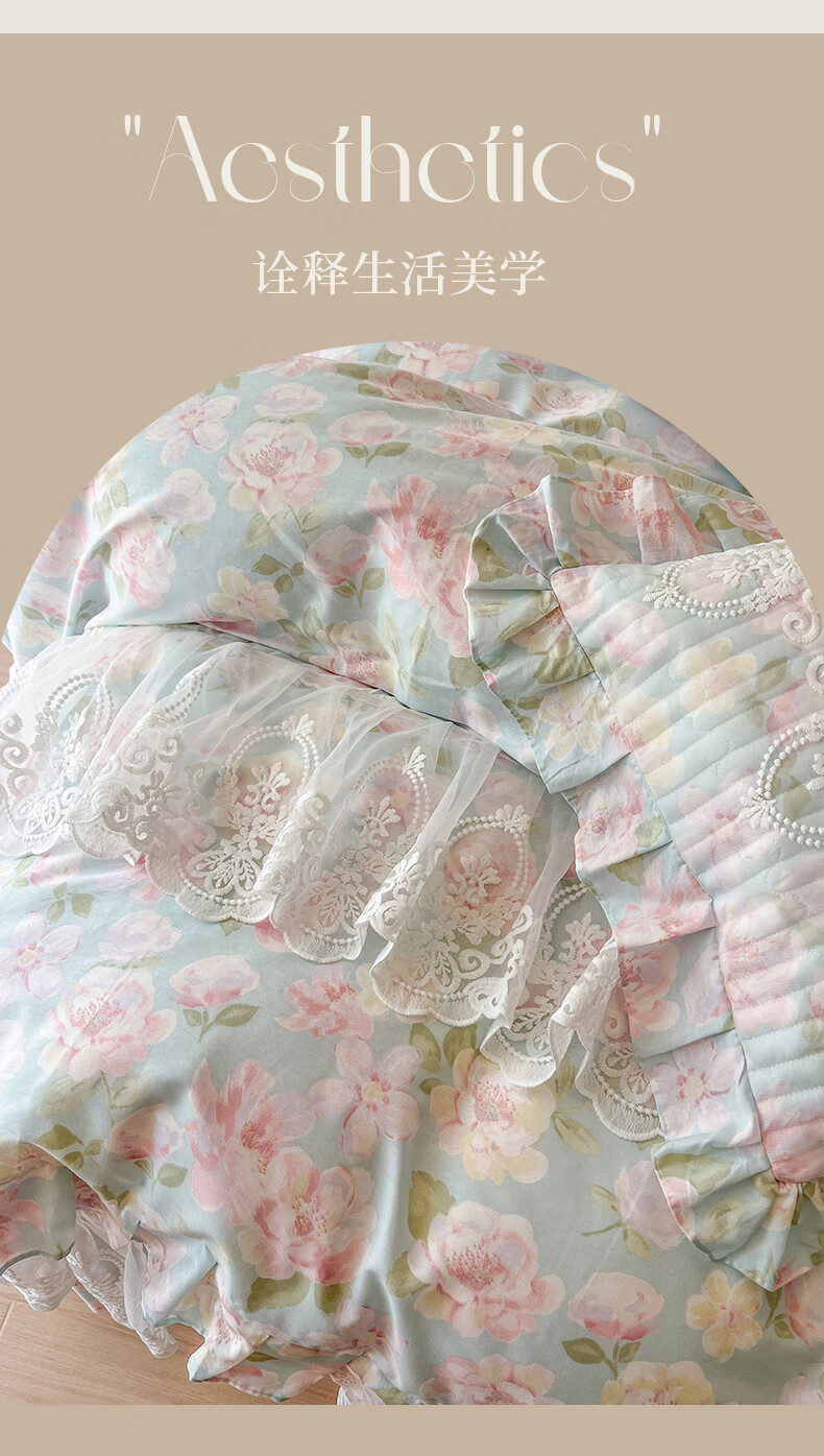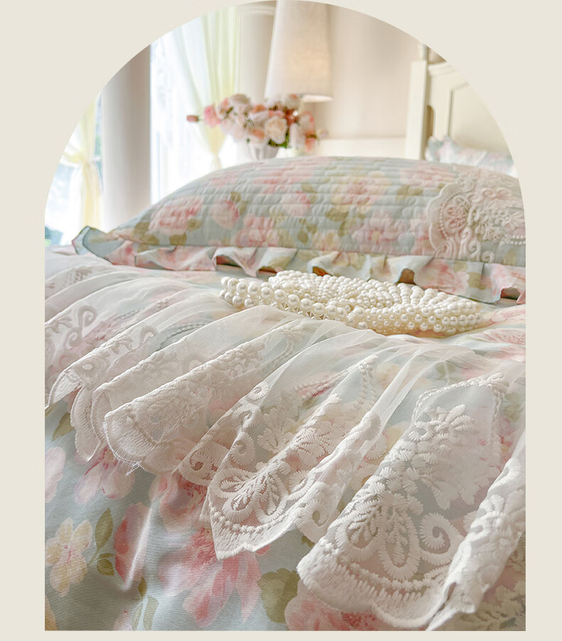 元族2025新款全棉纯棉印花床裙四件套床裙 花团锦簇 床裙款 1.5四件套-被套200x230