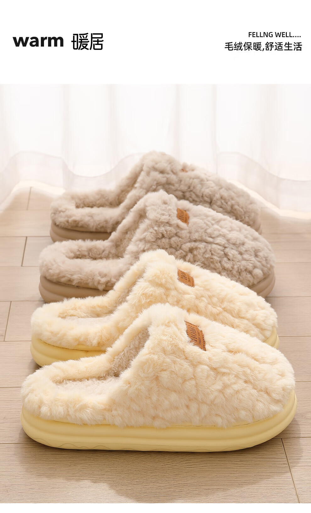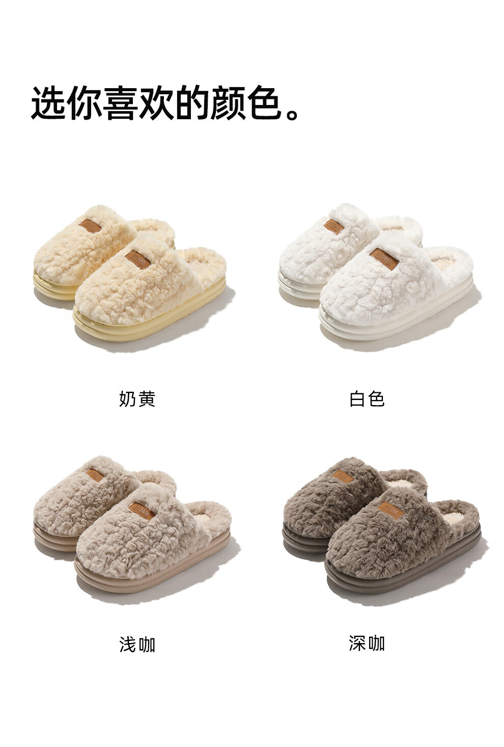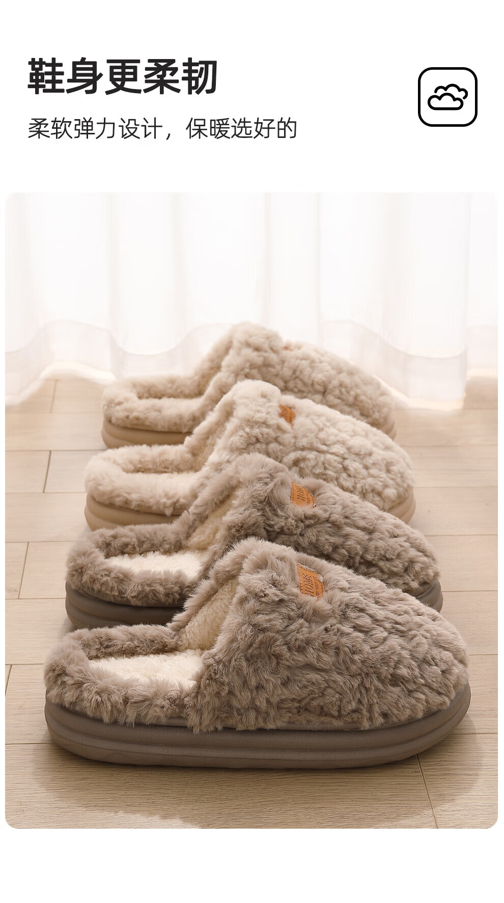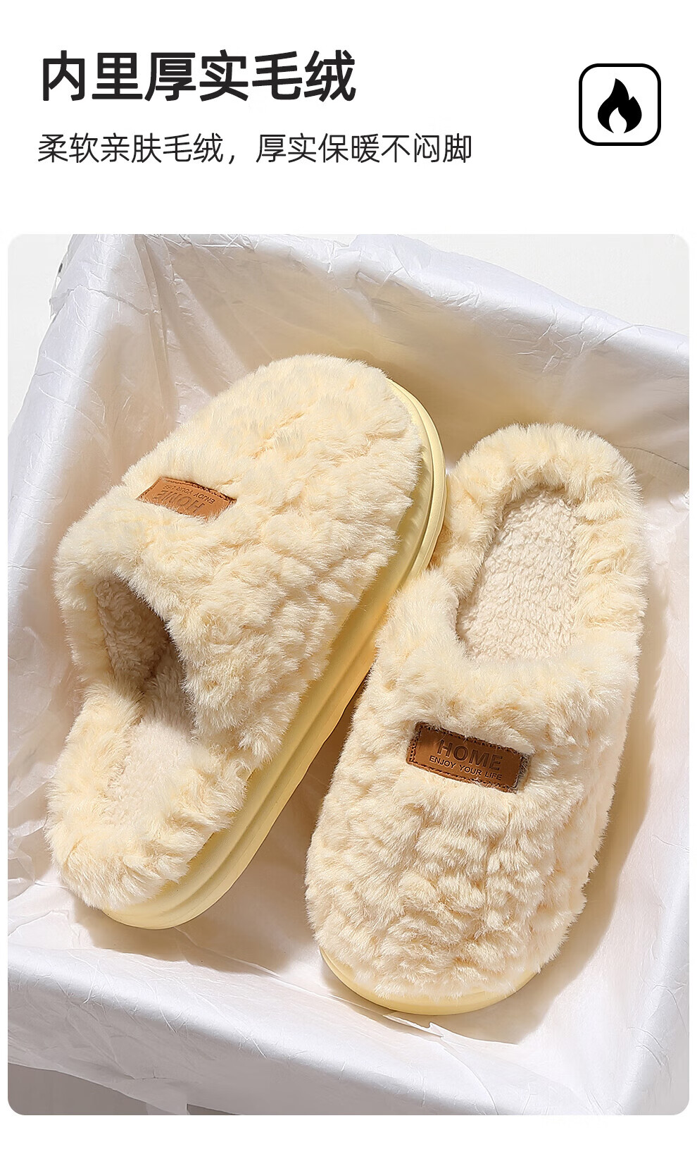 FZT棉拖鞋女士2025新款秋冬厚底防滑静音室内居家保暖毛毛加绒棉鞋男 白色 36-37 标准码