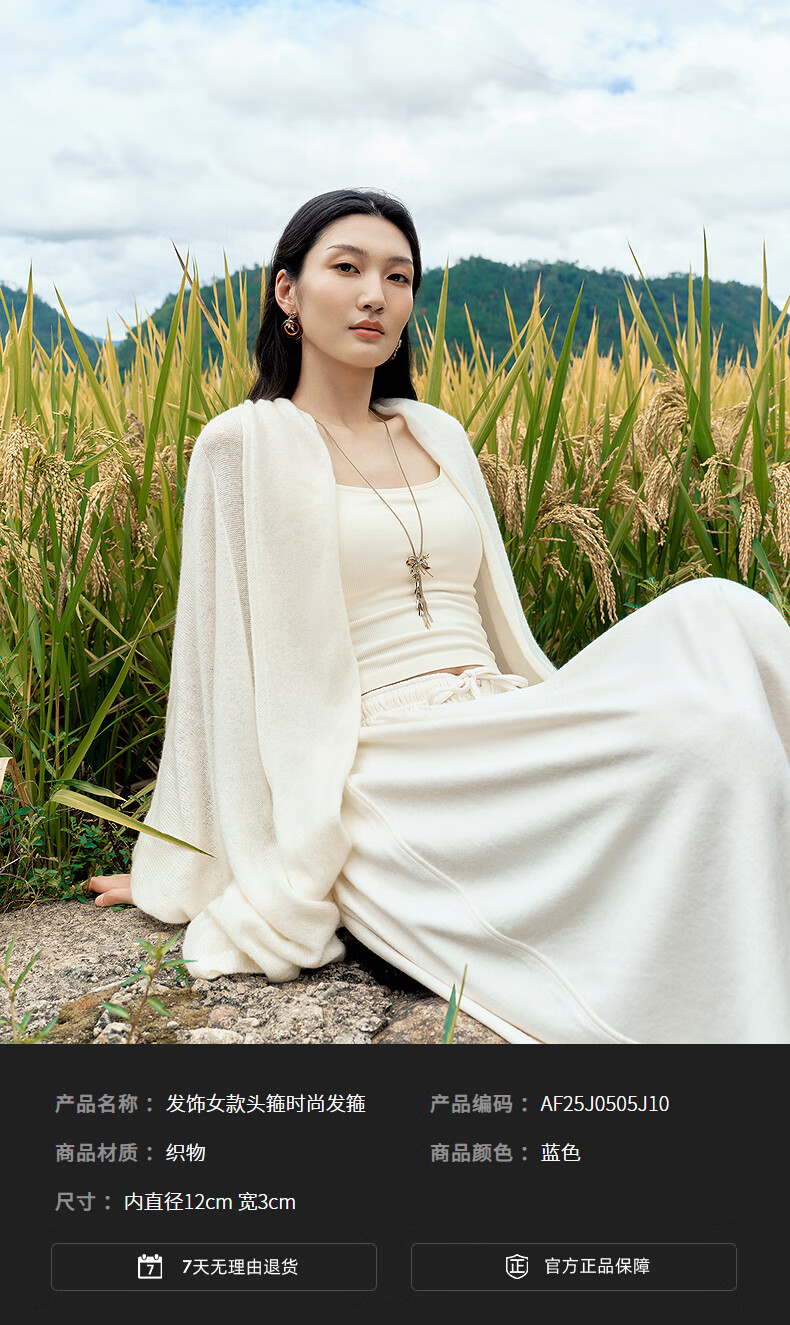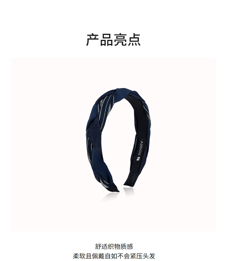 AJIDOU阿吉豆发饰女款蓝色时尚头箍织物发饰高颅顶发箍新年跨年礼物 蓝色 1个