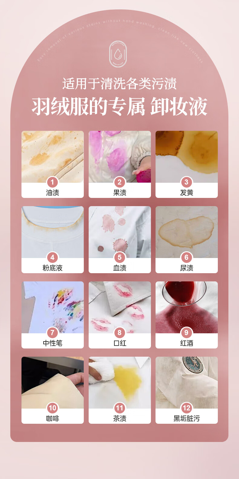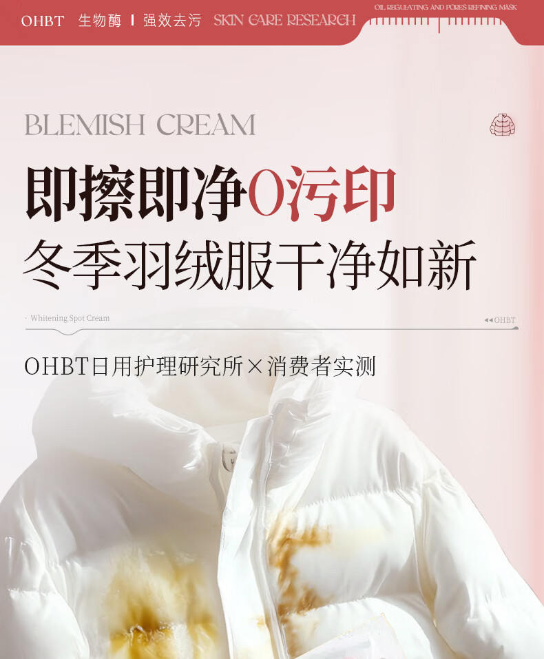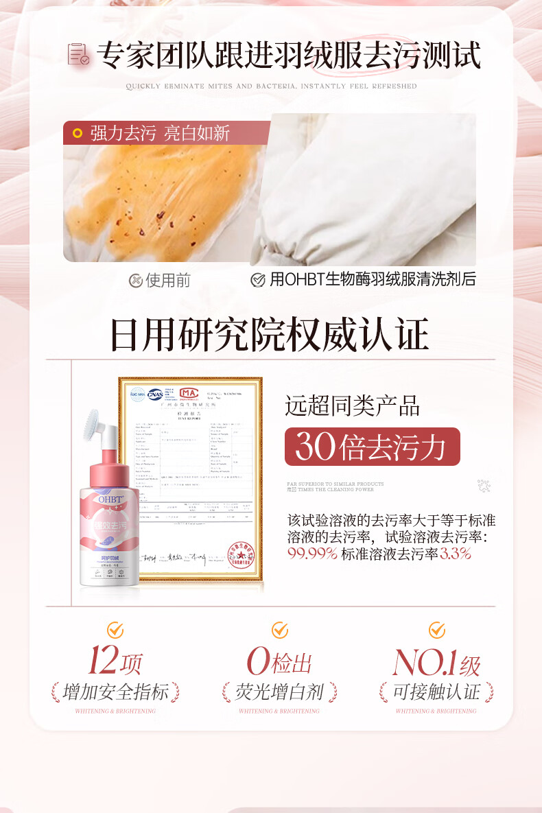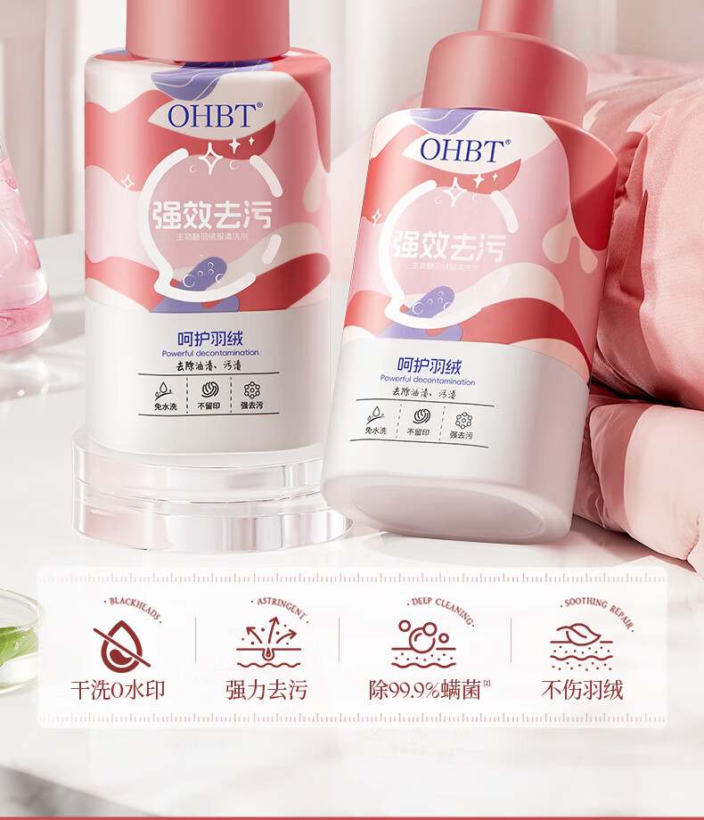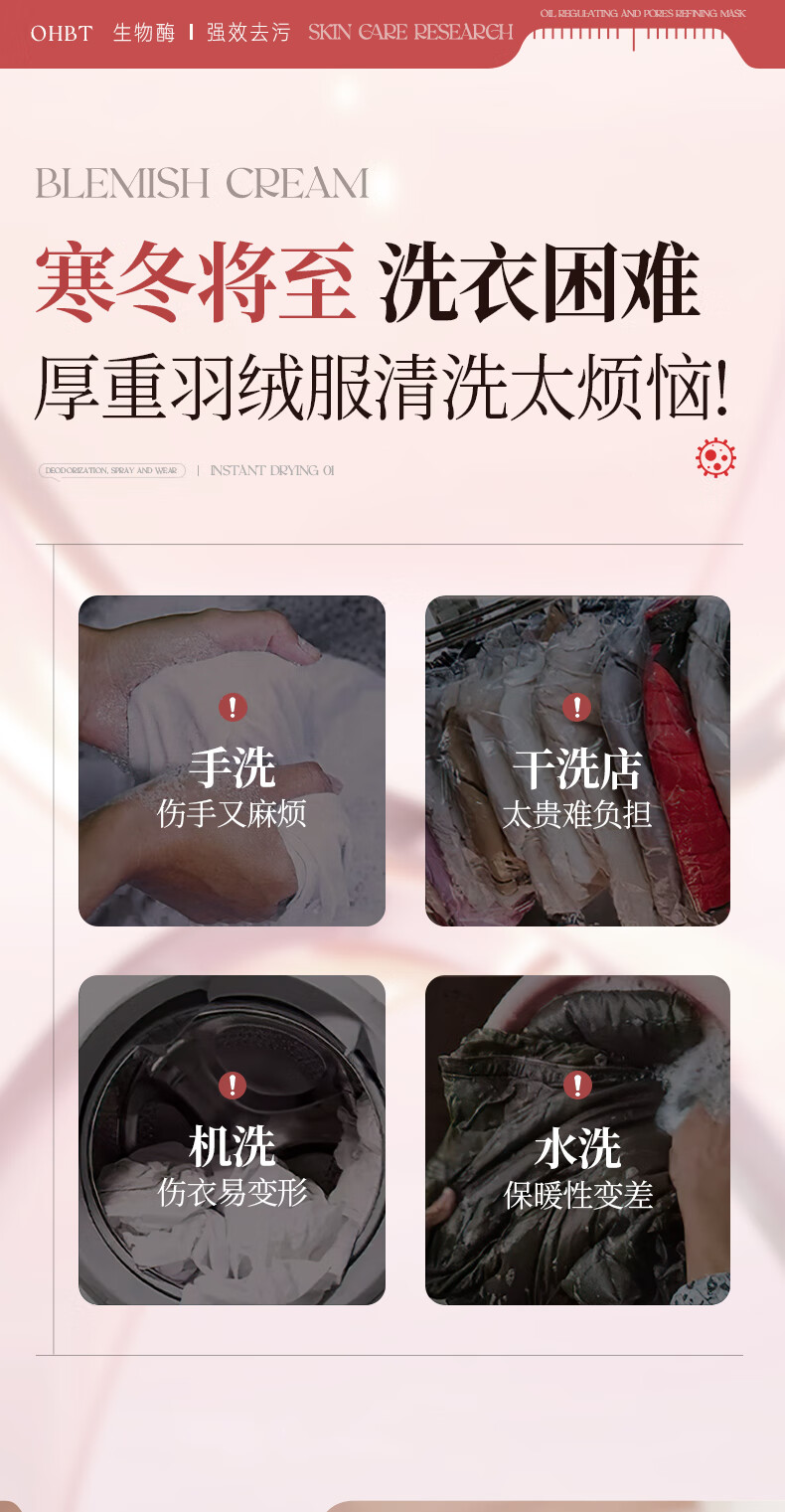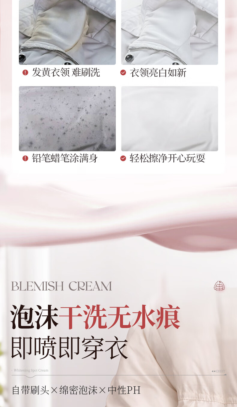 OHBT羽绒服清洗剂免水干洗剂蓬松洗涤剂强力去油污去渍一擦净清洁神器 1瓶265ml【轻松搞定污渍】