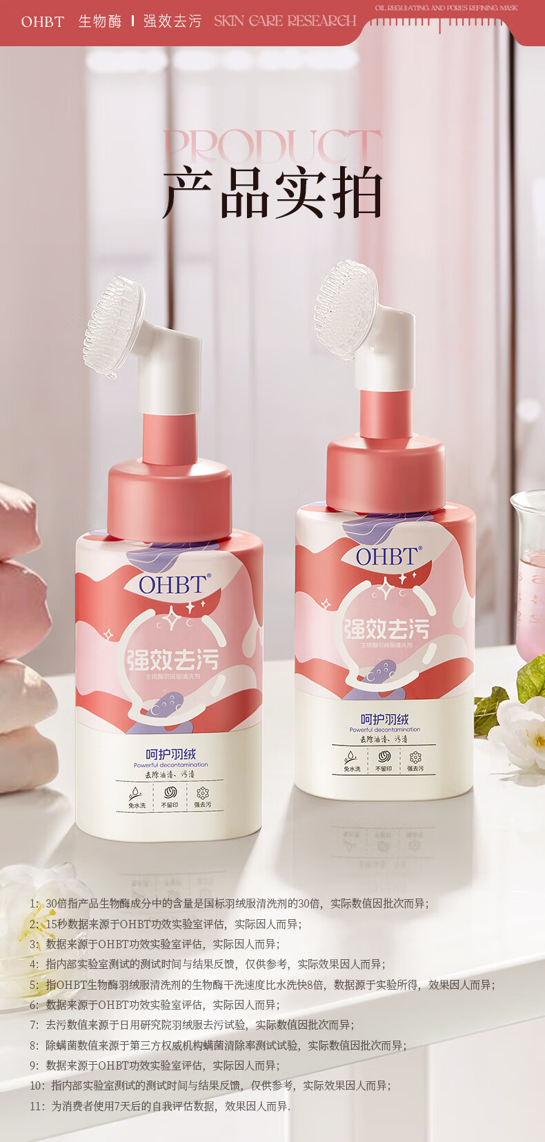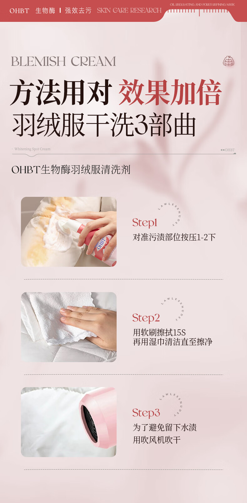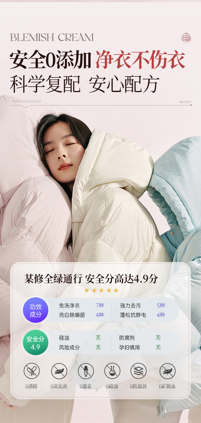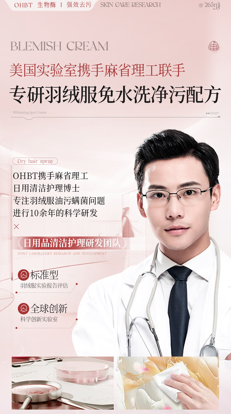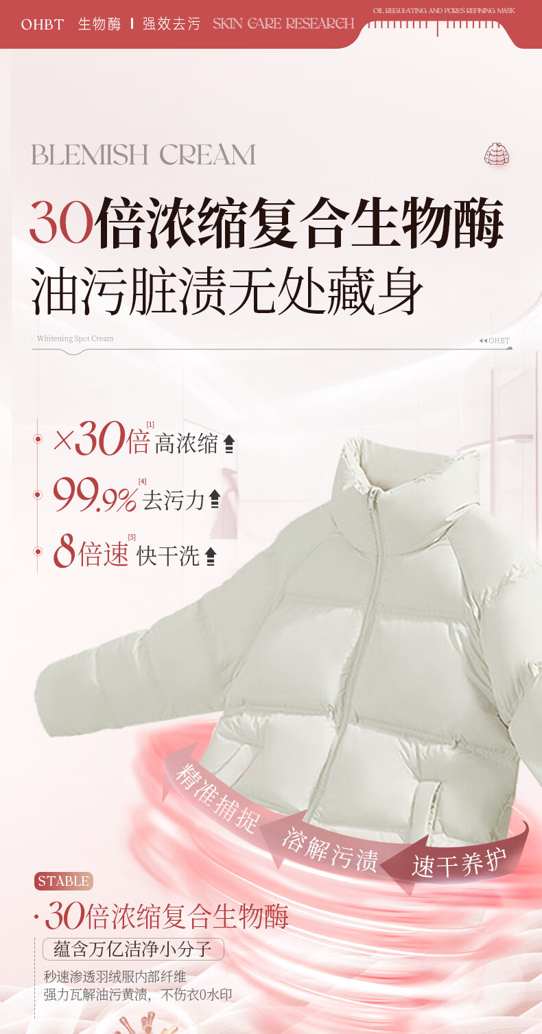 OHBT羽绒服清洗剂免水干洗剂蓬松洗涤剂强力去油污去渍一擦净清洁神器 1瓶265ml【轻松搞定污渍】