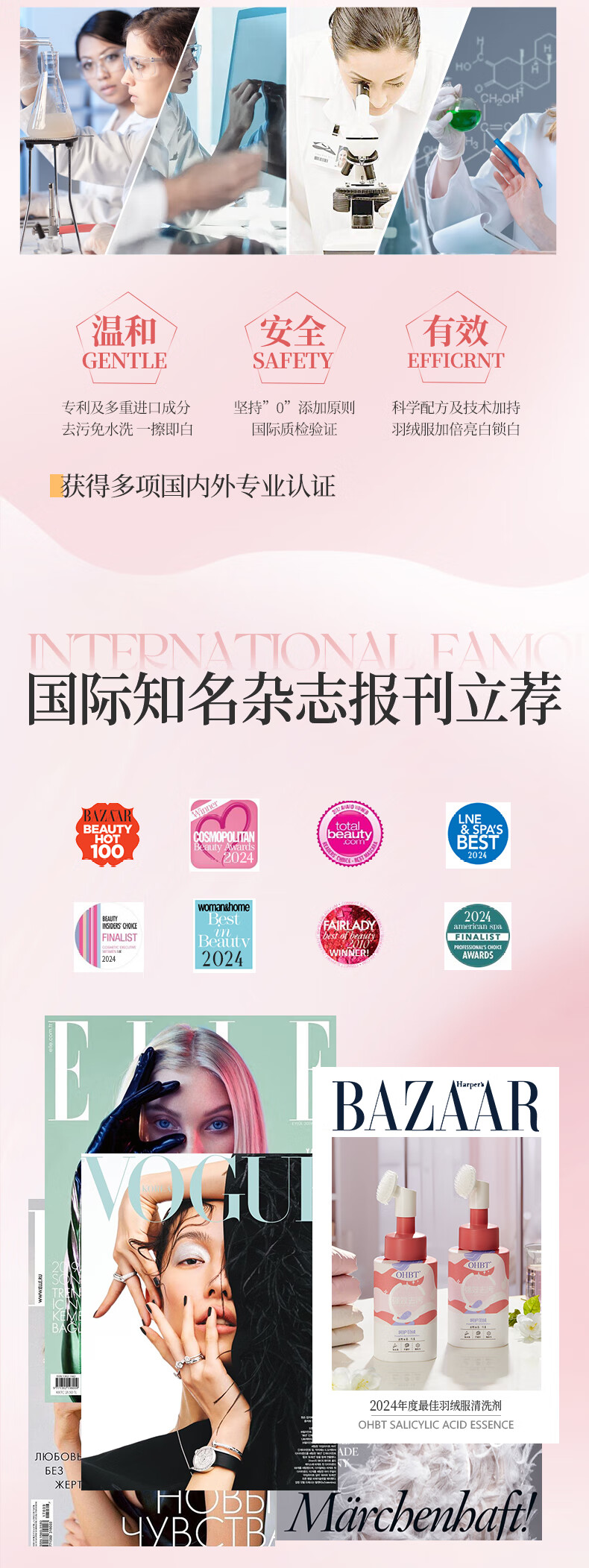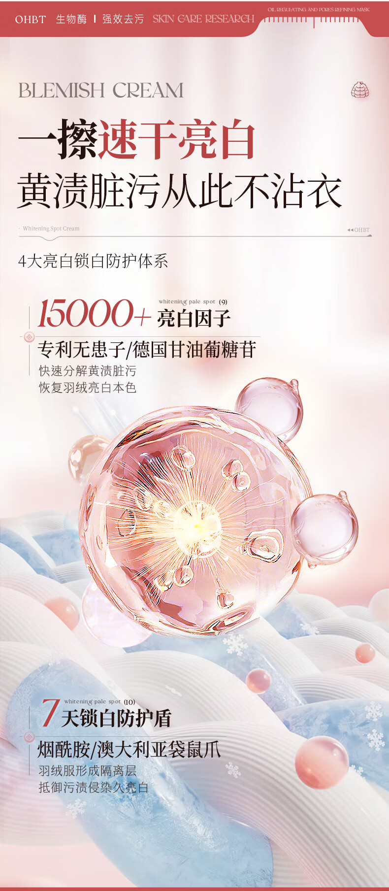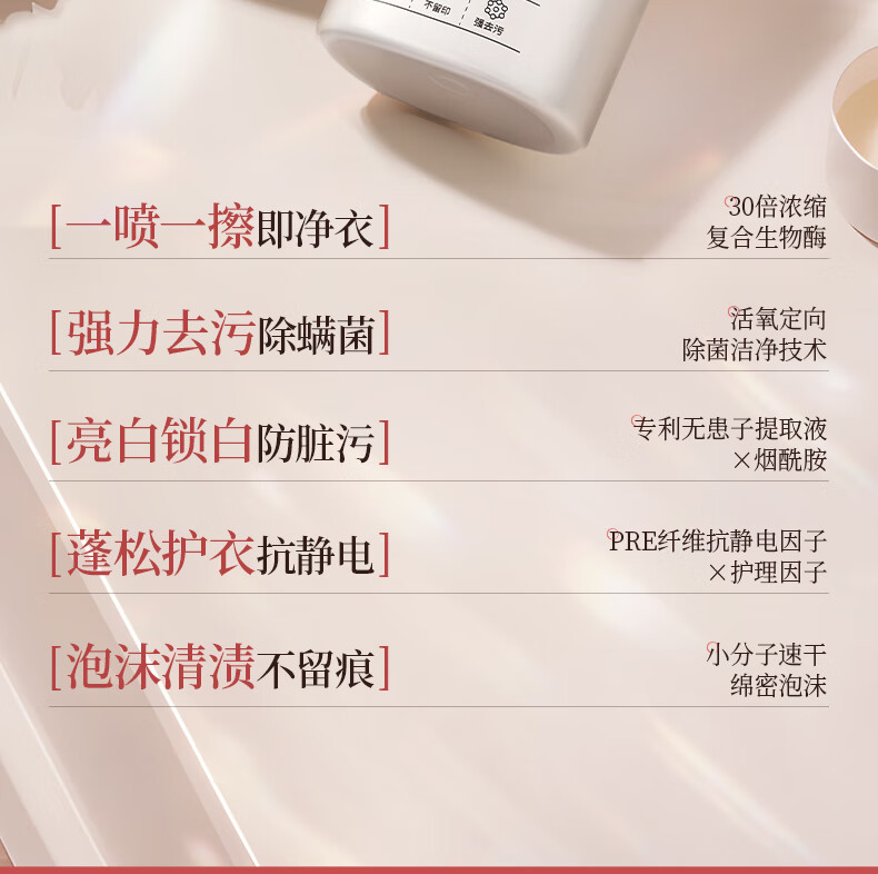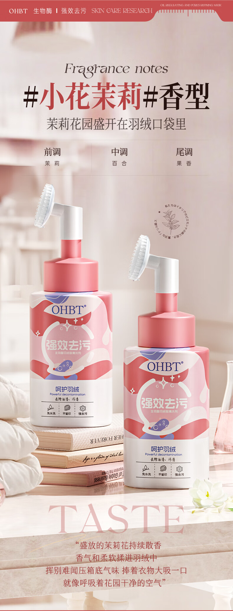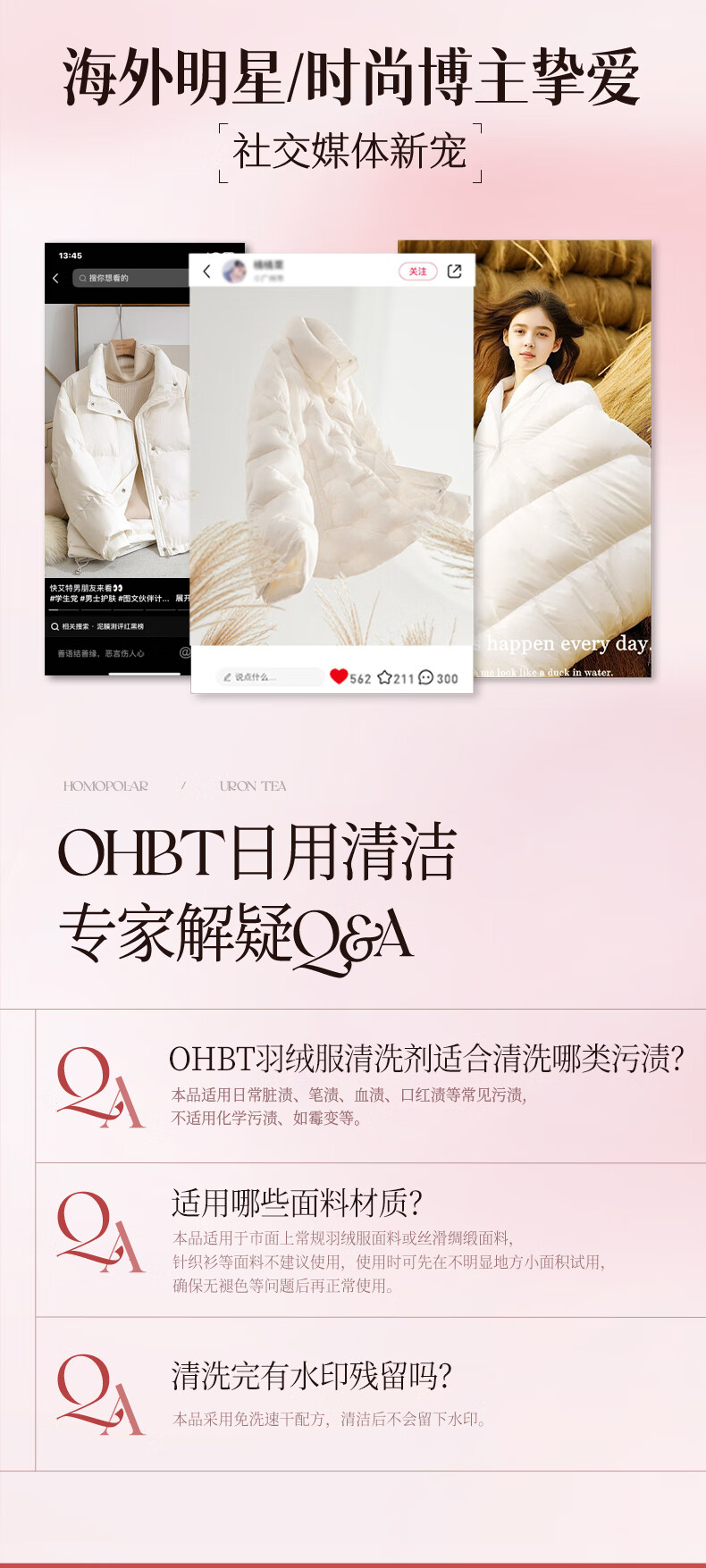 OHBT羽绒服清洗剂免水干洗剂蓬松洗涤剂强力去油污去渍一擦净清洁神器 1瓶265ml【轻松搞定污渍】