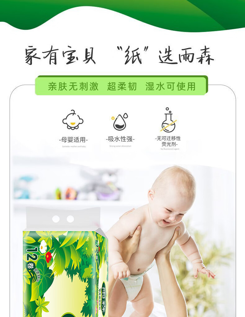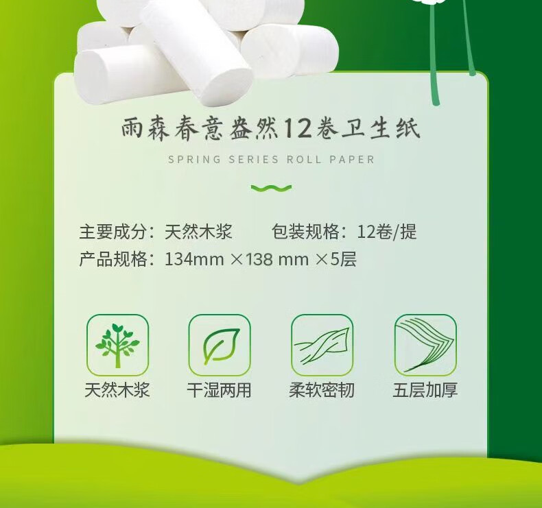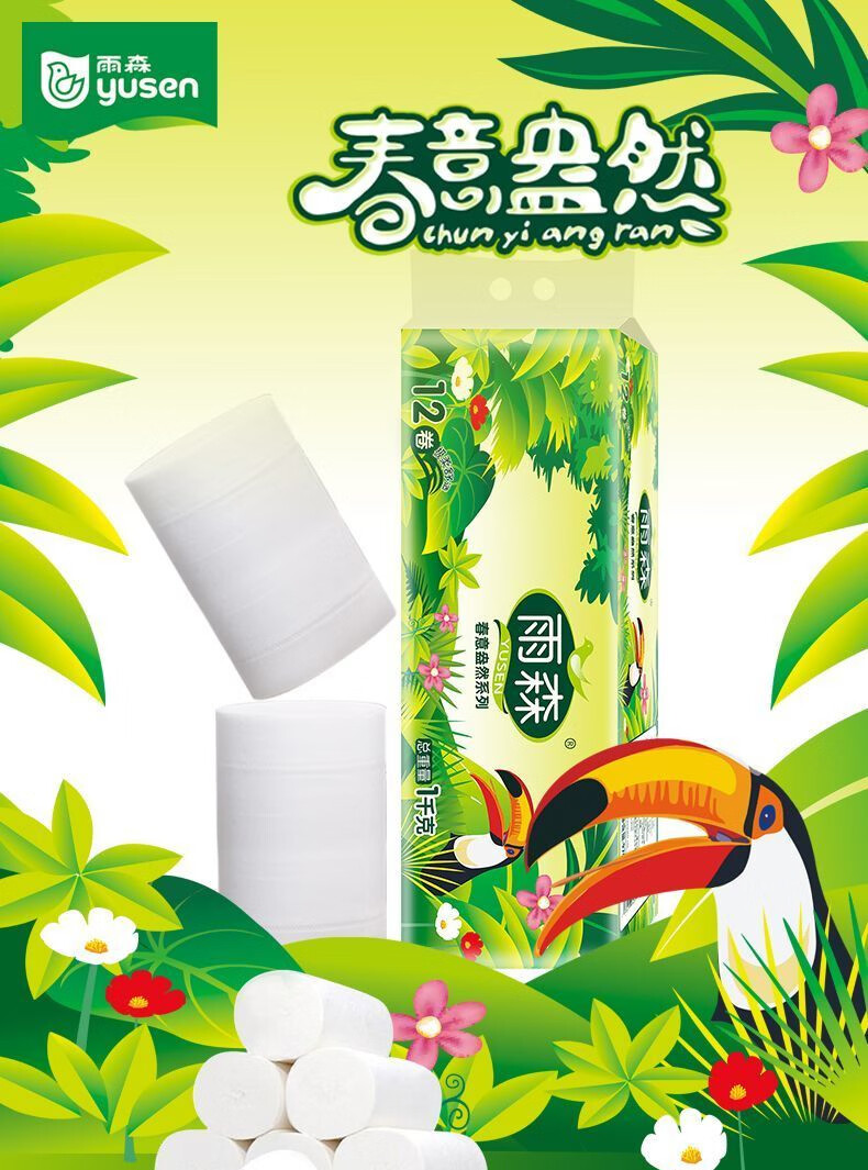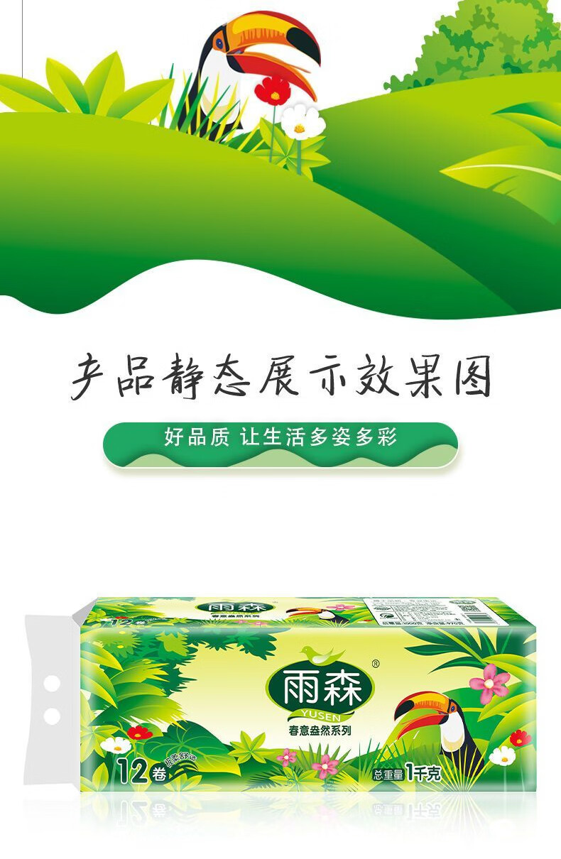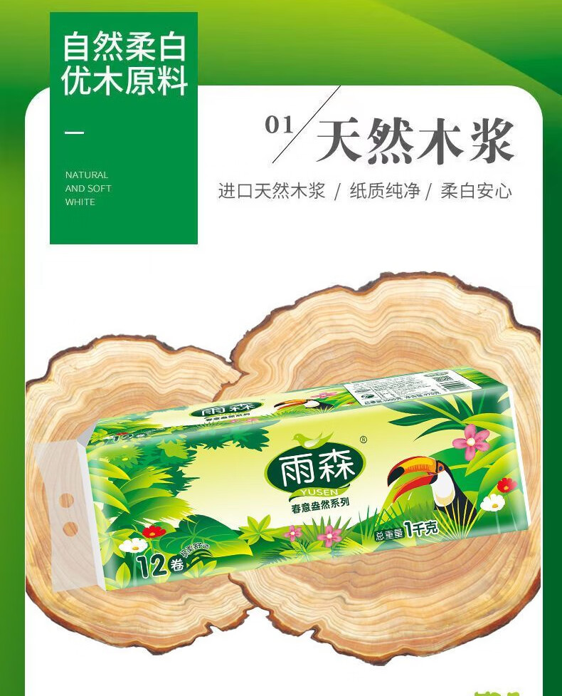 雨森(YUSEN)纸 春意盎然1000g/12卷 卫生纸 无芯卷纸家用纸巾五层 卷纸 5层 83.3g/卷*24卷