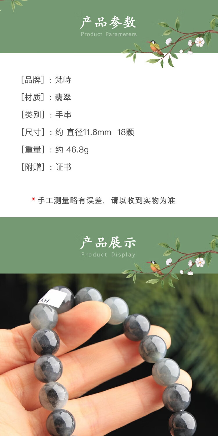 梵峙11.6翡翠手串手链单圈乌鸡绿毛鸡冰糯种缅甸A货送证书 默认