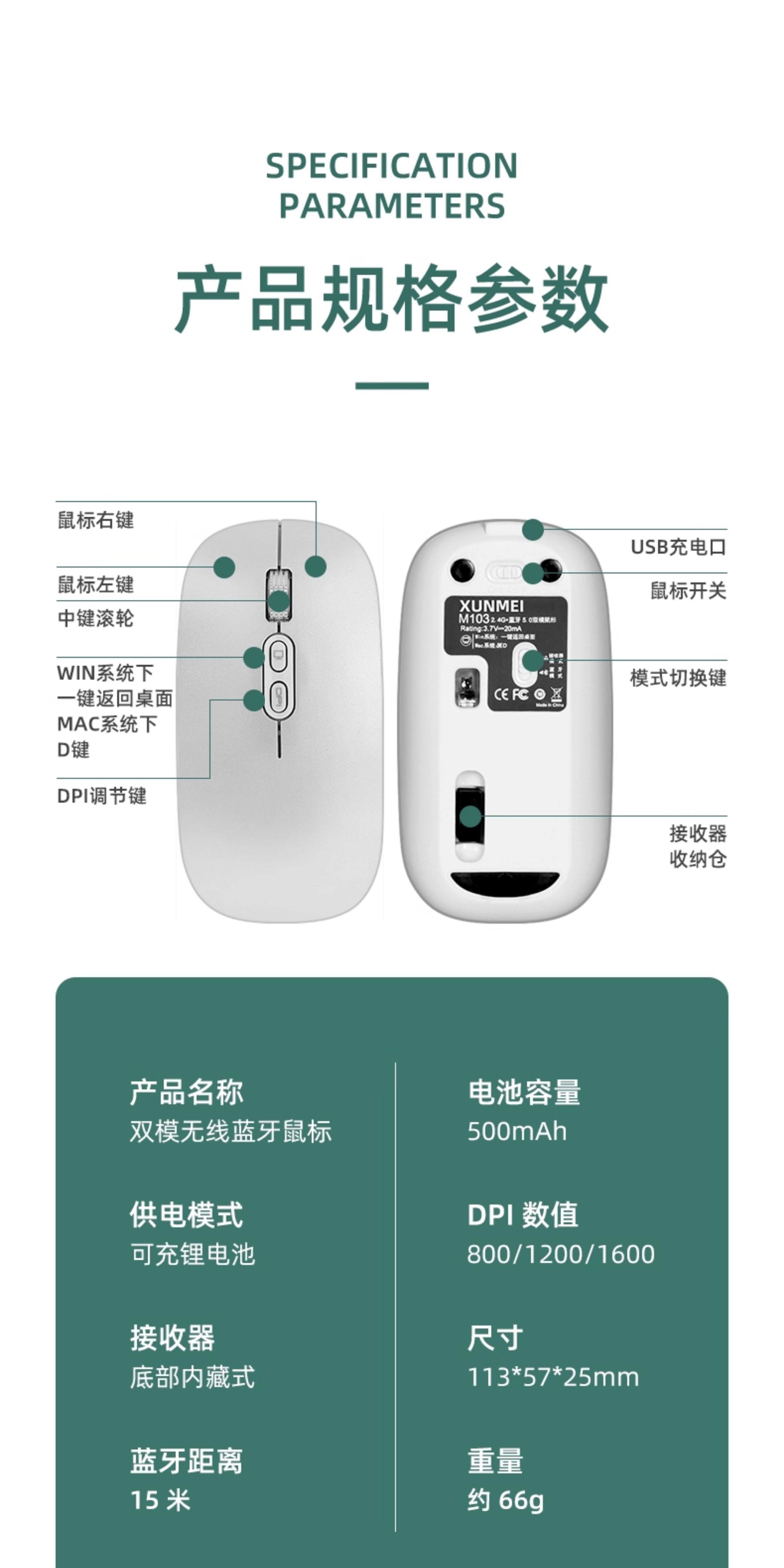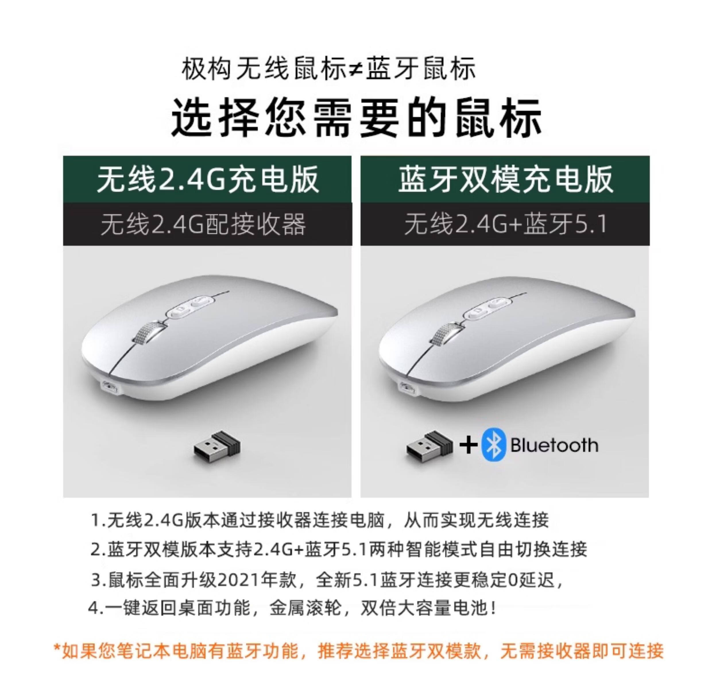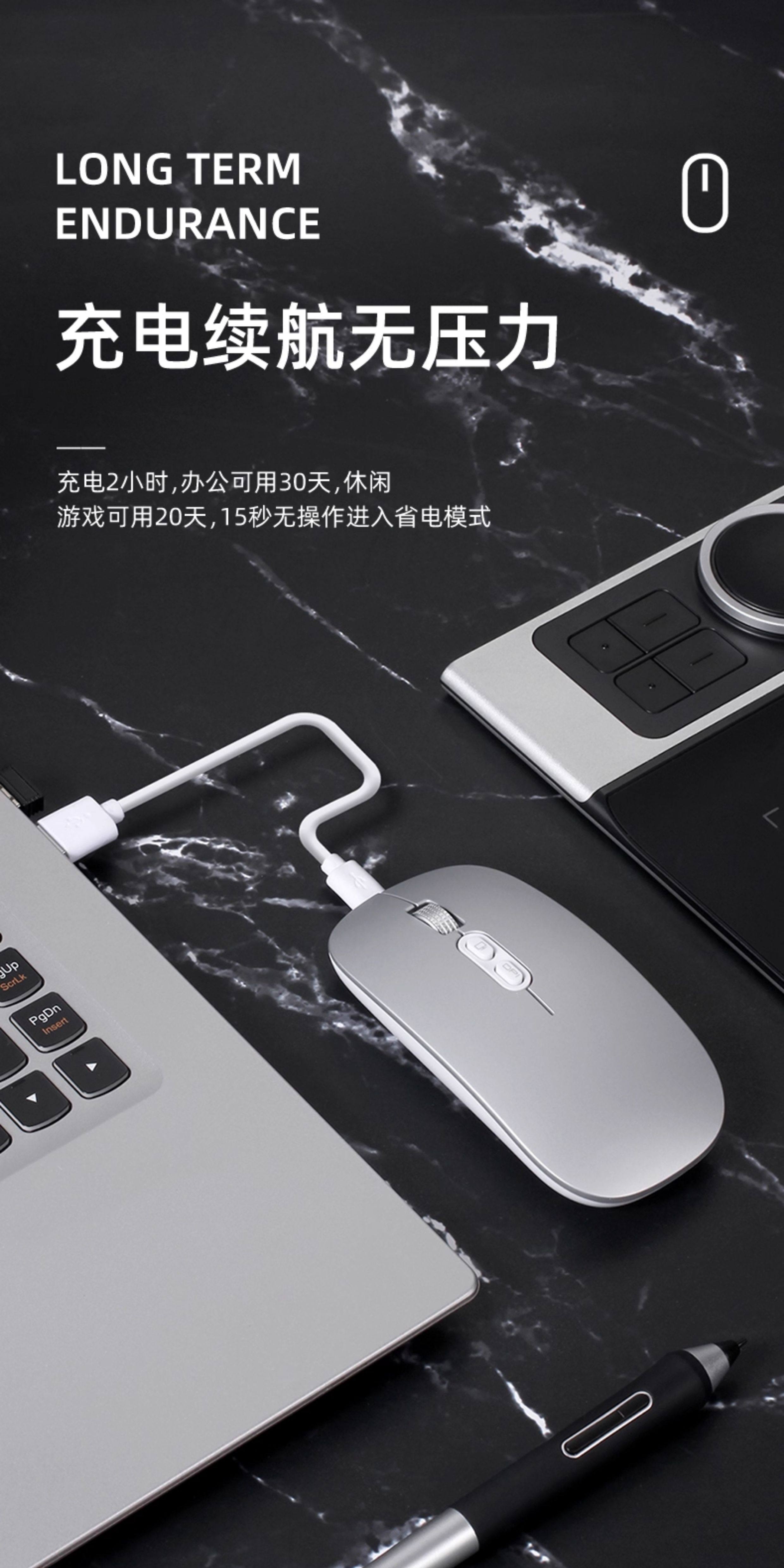 适用小米静音无线蓝牙鼠标红米ipad华为荣耀联想华硕办公笔记本台式充电人体工学超长续航平板充电 单模黑 - 送皮垫【单USB接口版】