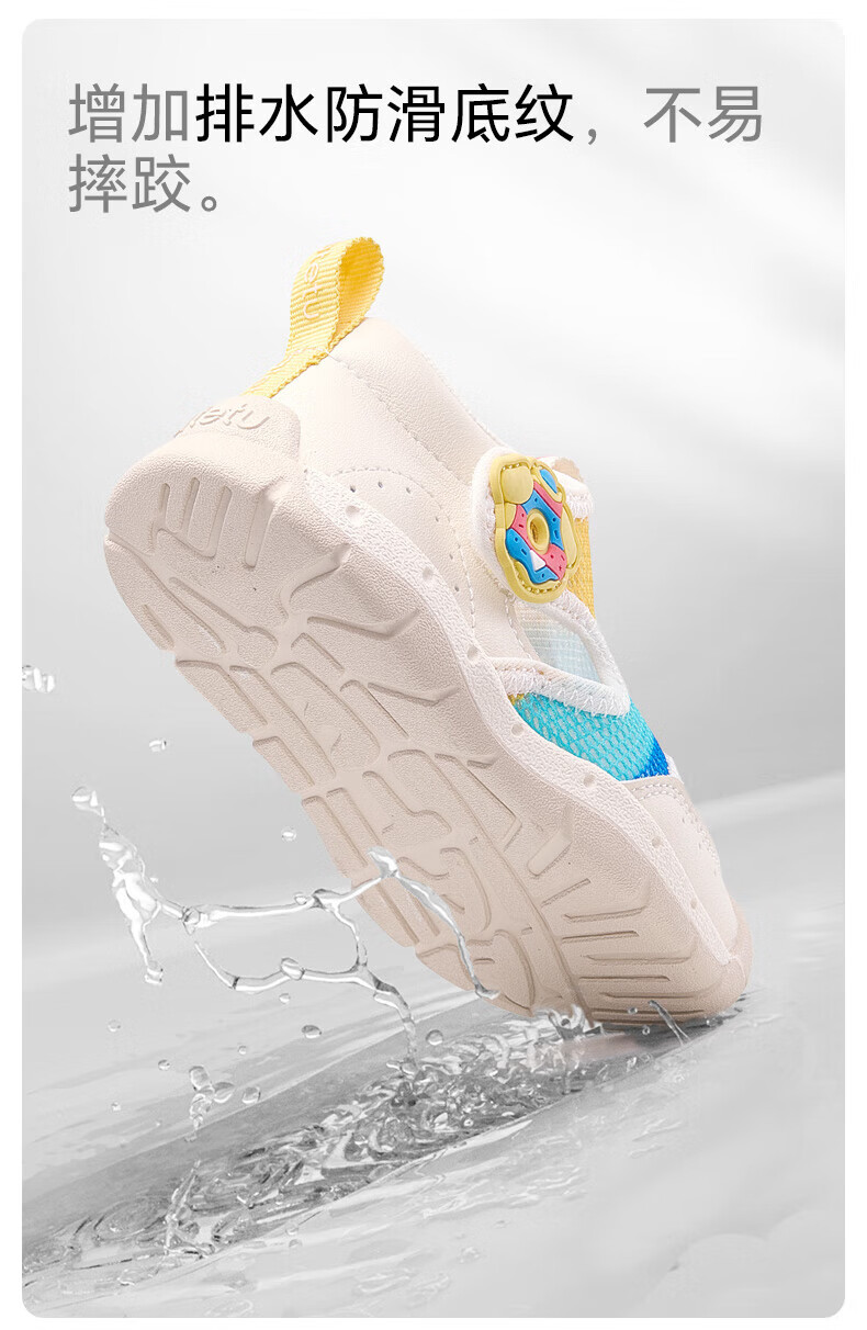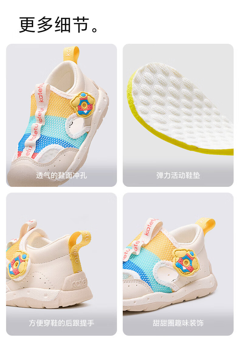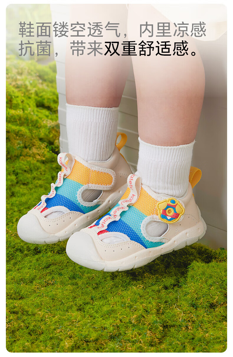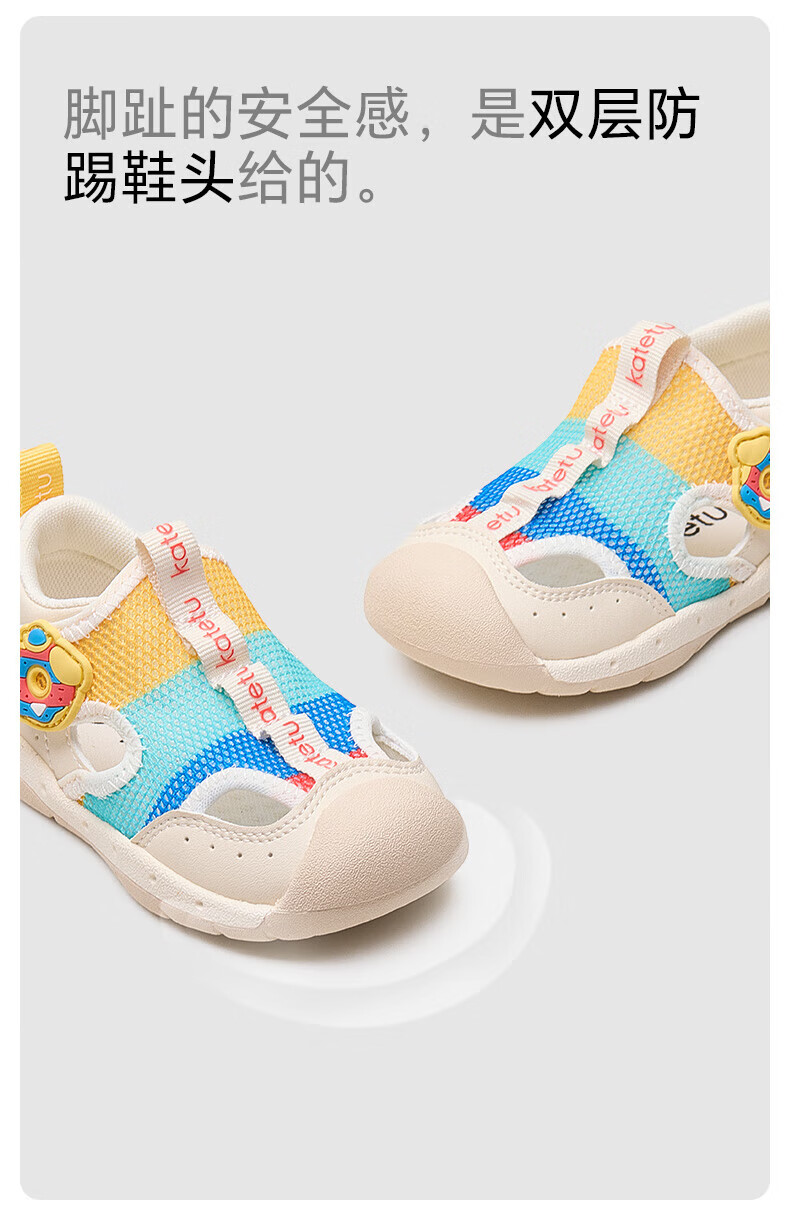 卡特兔凉鞋宝宝学步鞋儿童夏季幼儿园室内鞋网面透气儿童网鞋小童机能鞋 白蓝黄 23 内长14.0cm 适合脚长13.0-13.4