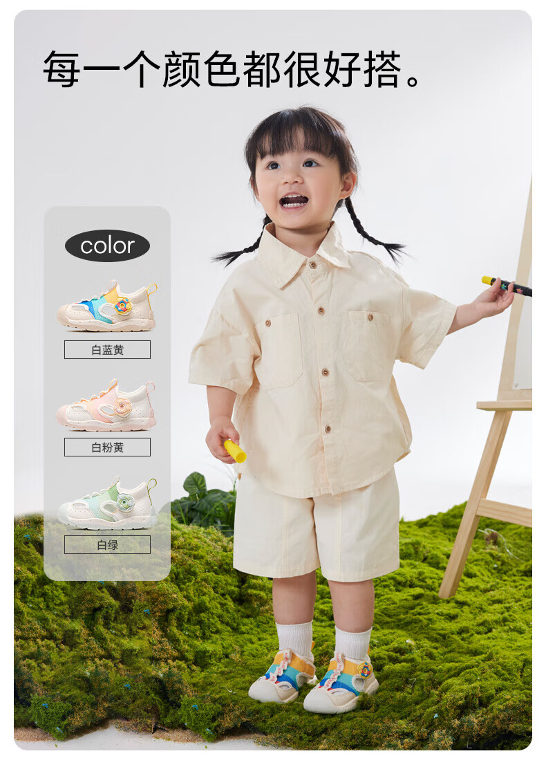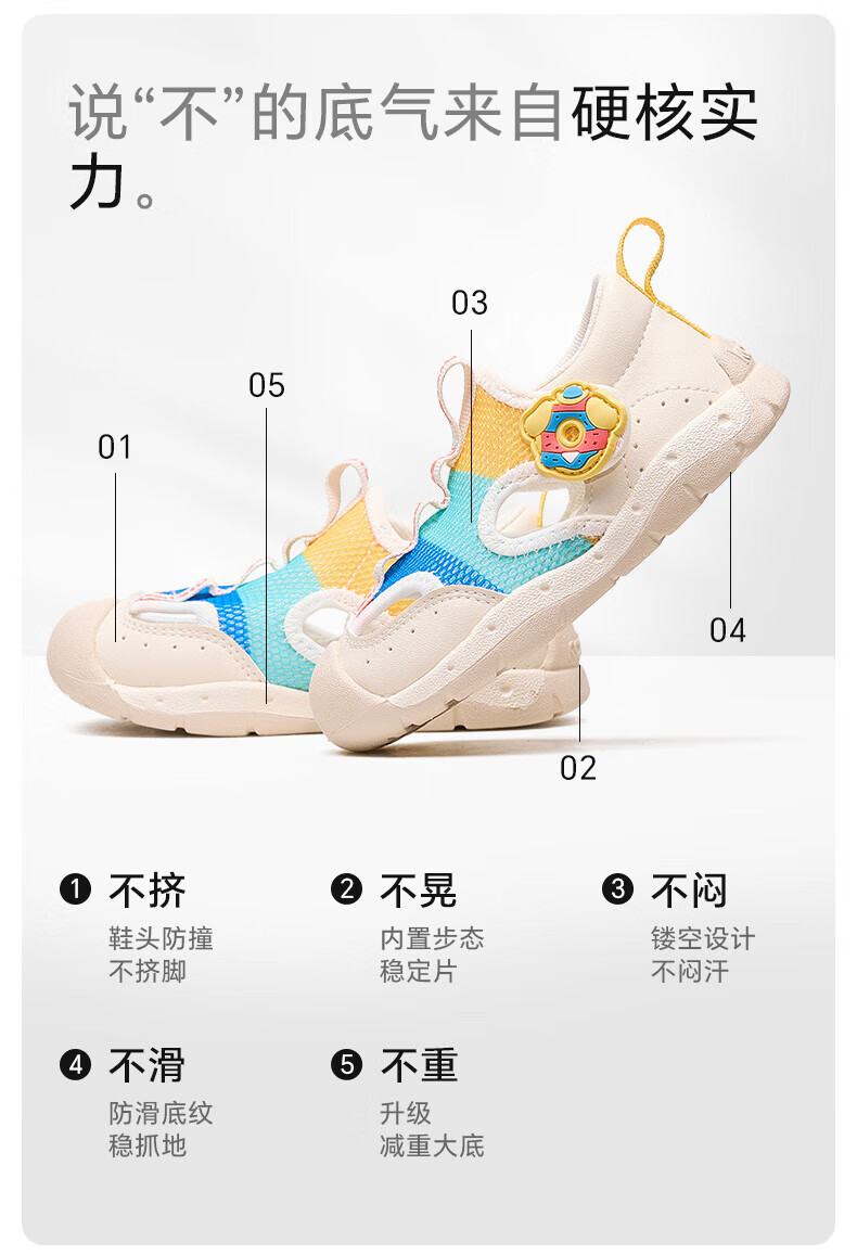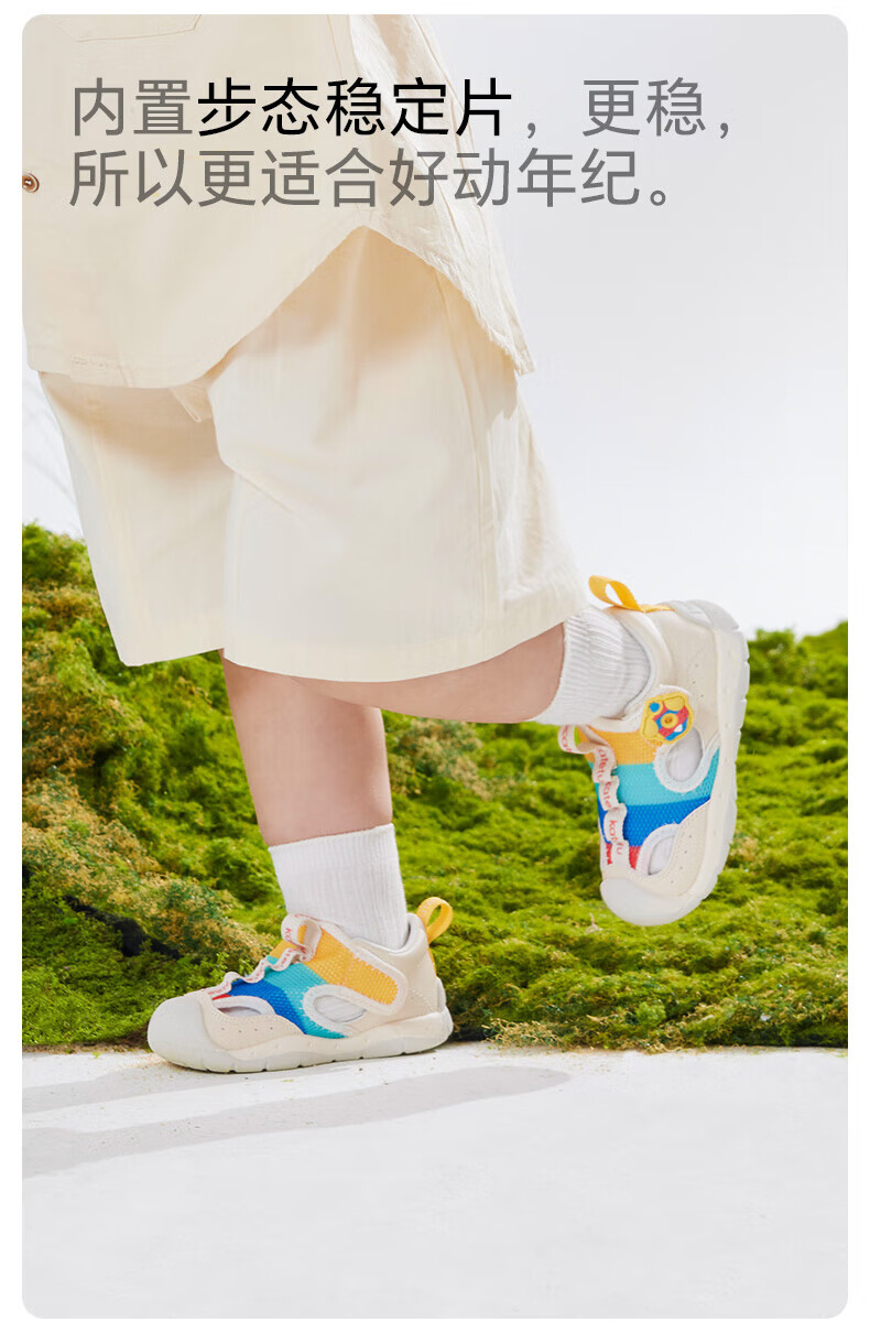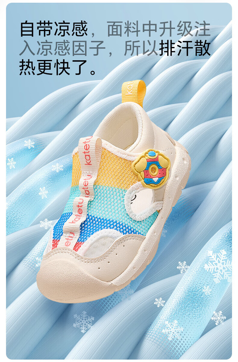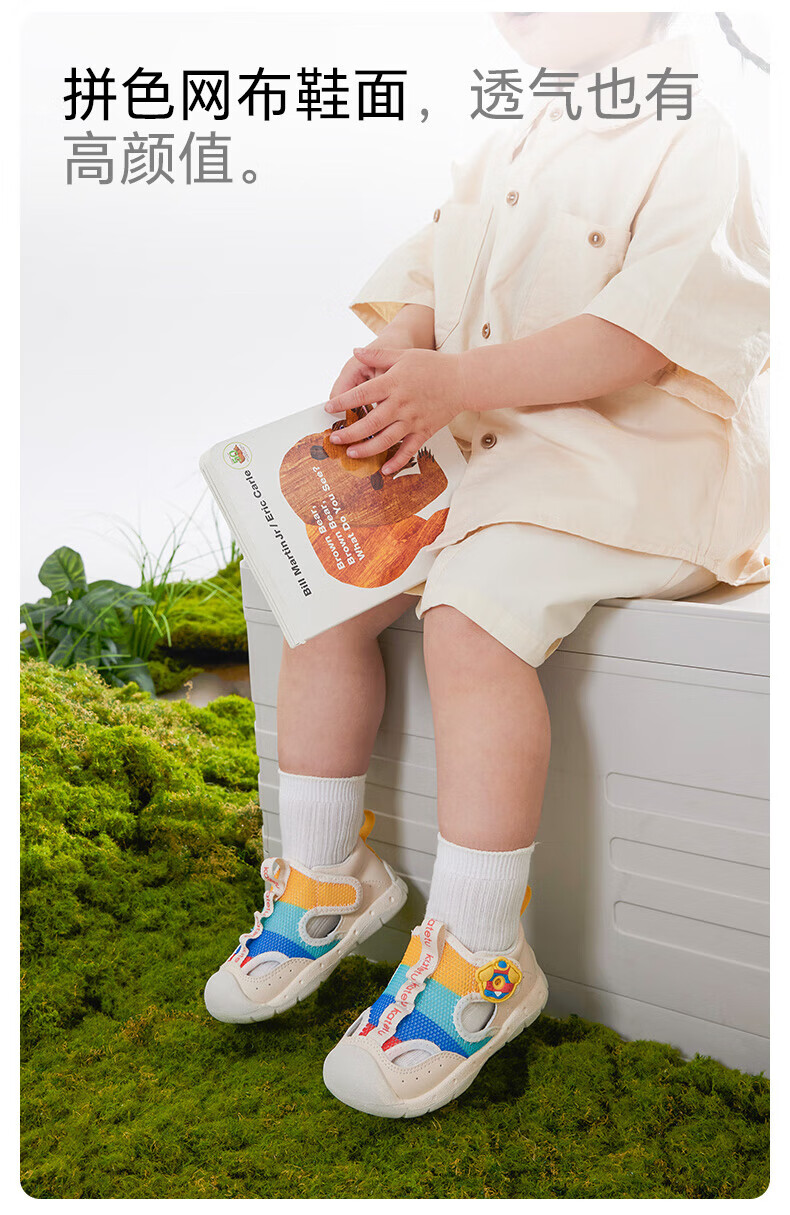 卡特兔凉鞋宝宝学步鞋儿童夏季幼儿园室内鞋网面透气儿童网鞋小童机能鞋 白蓝黄 23 内长14.0cm 适合脚长13.0-13.4