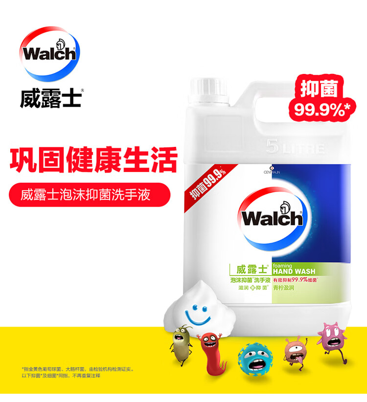 威露士泡沫洗手液补充装5L 青柠盈润抑菌消毒家庭酒店餐厅10斤灭甲流感