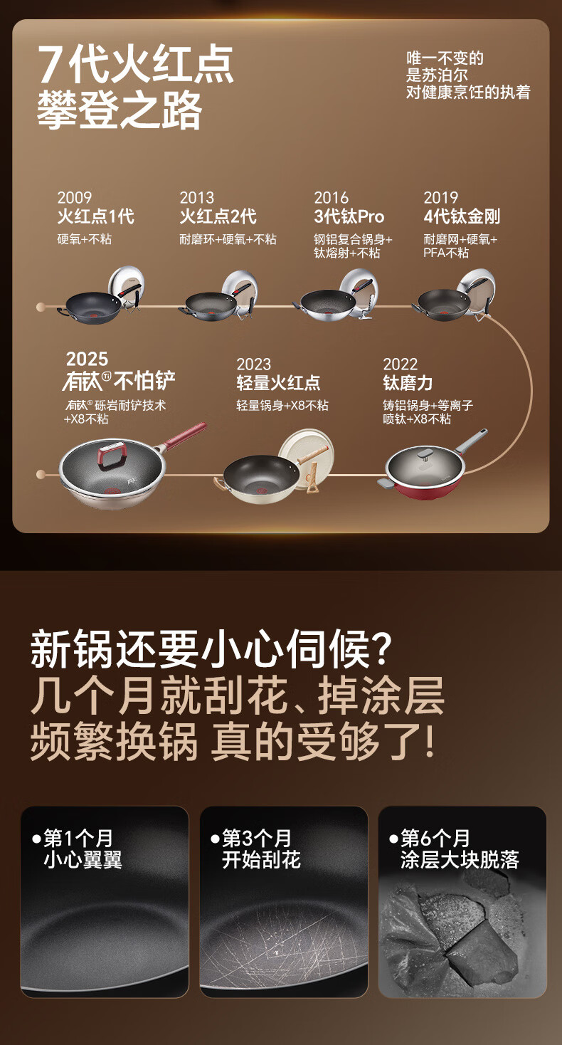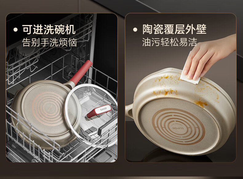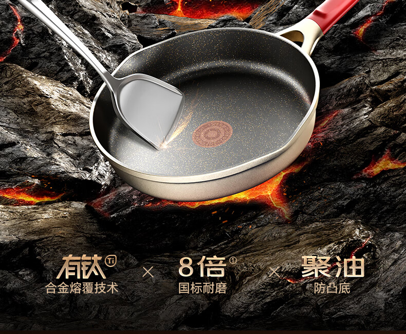 苏泊尔有钛不怕铲健康不粘聚油煎锅平底锅28cm电磁炉燃气通用易洁少油烟
