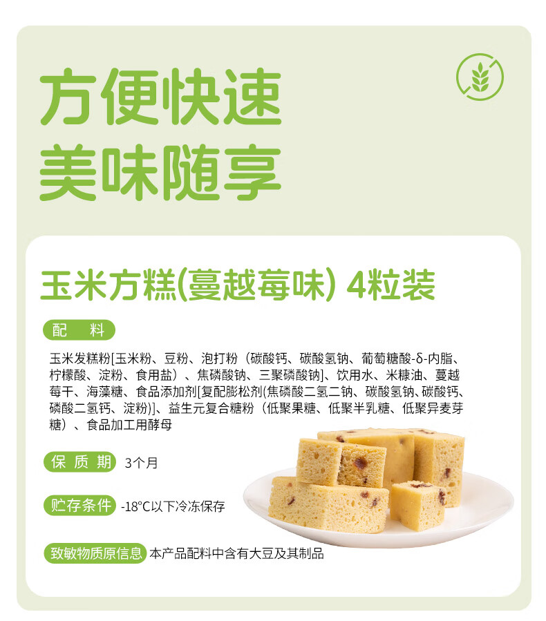 佑儿圆玉米方糕蔓越莓味180g儿童营养早餐4粒装 独立无麸质生产线 蔓越莓味