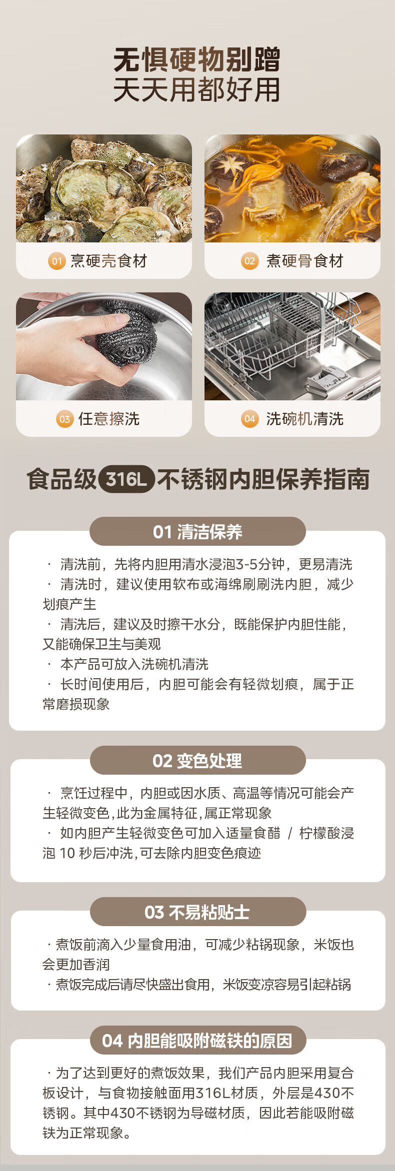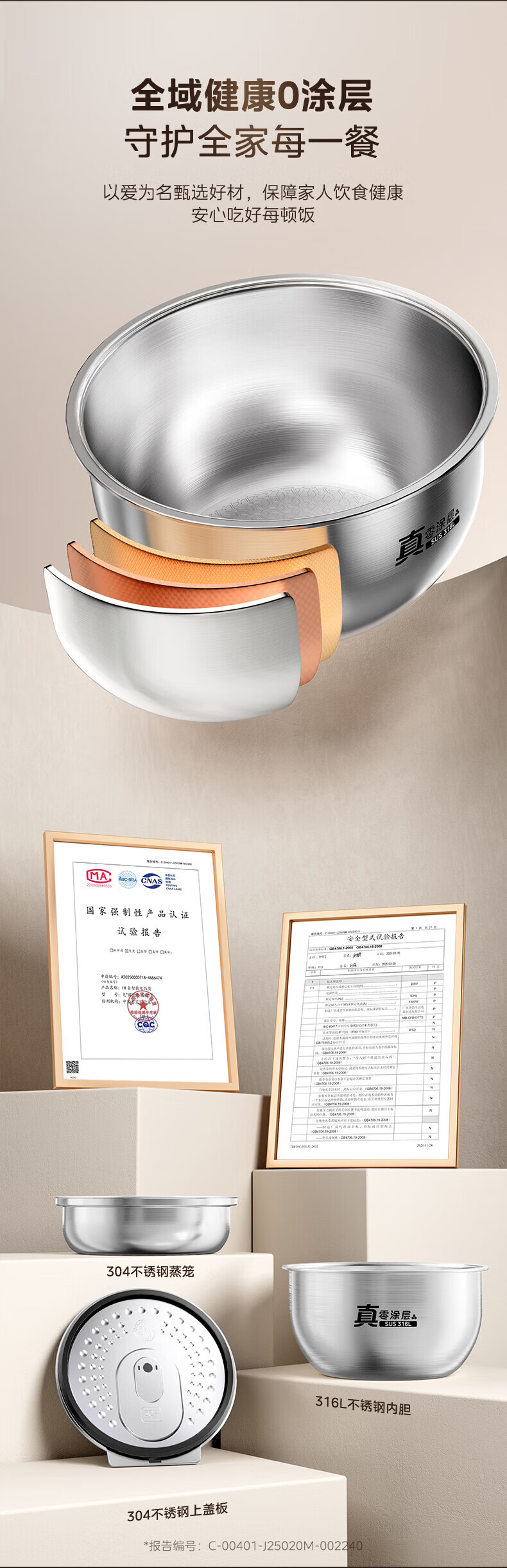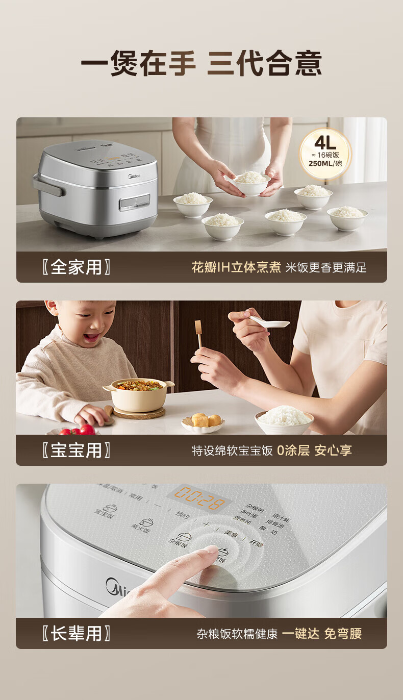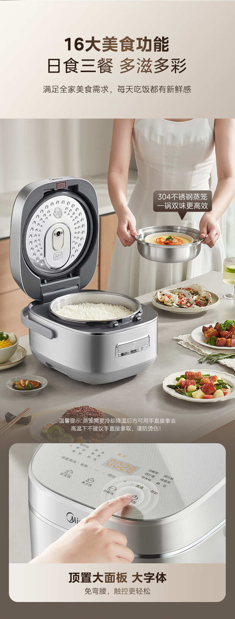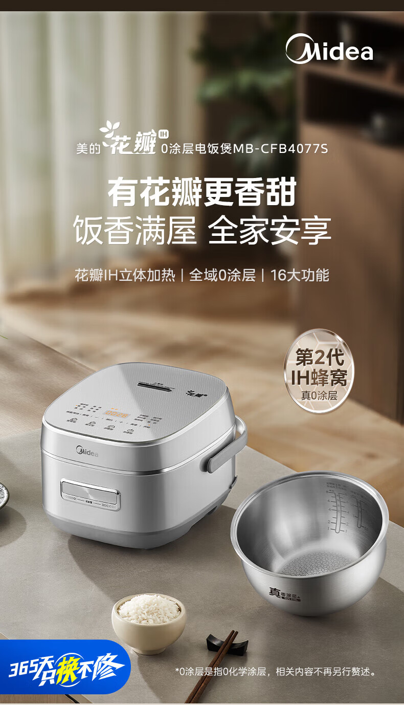 美的(Midea)全域0涂层电饭煲花瓣IH无涂层316L不锈钢内胆家用多功能智能预约3-4人电饭锅4L大容量 CFB4077S 【0涂层】花瓣IH加热 4L