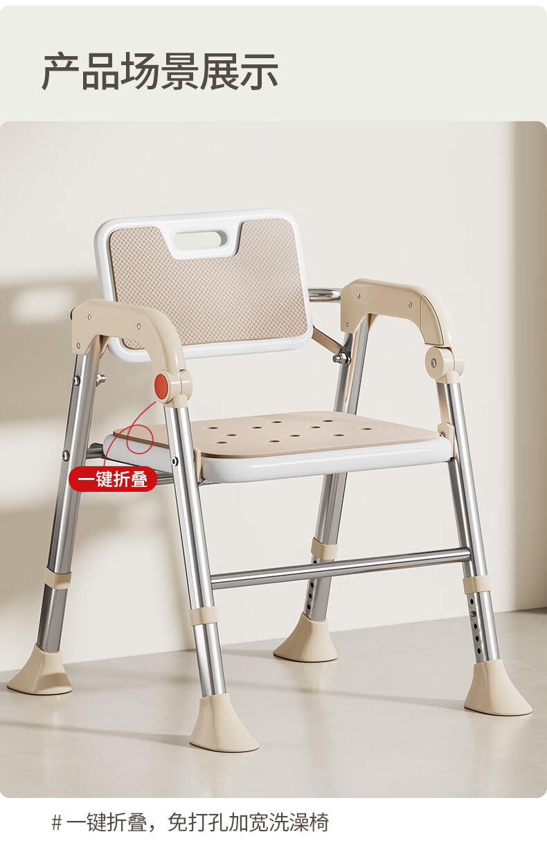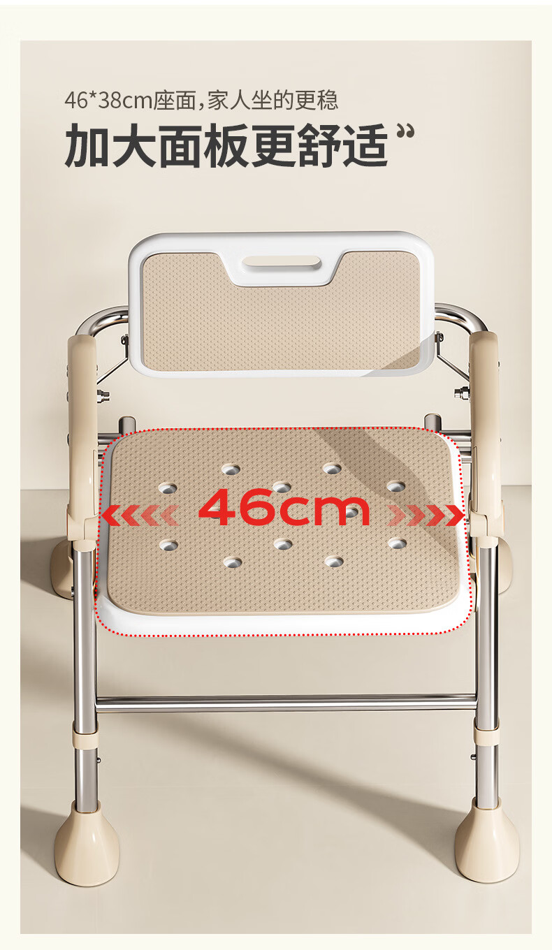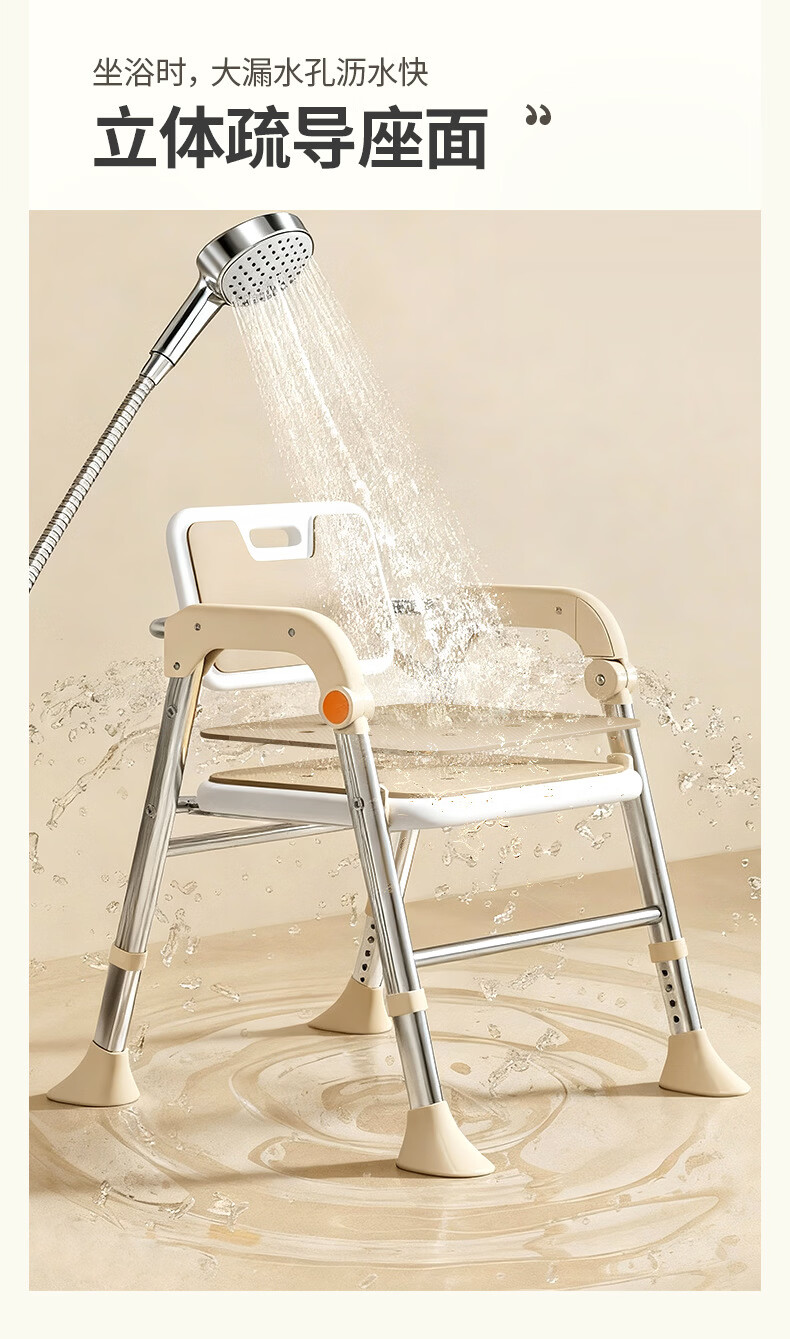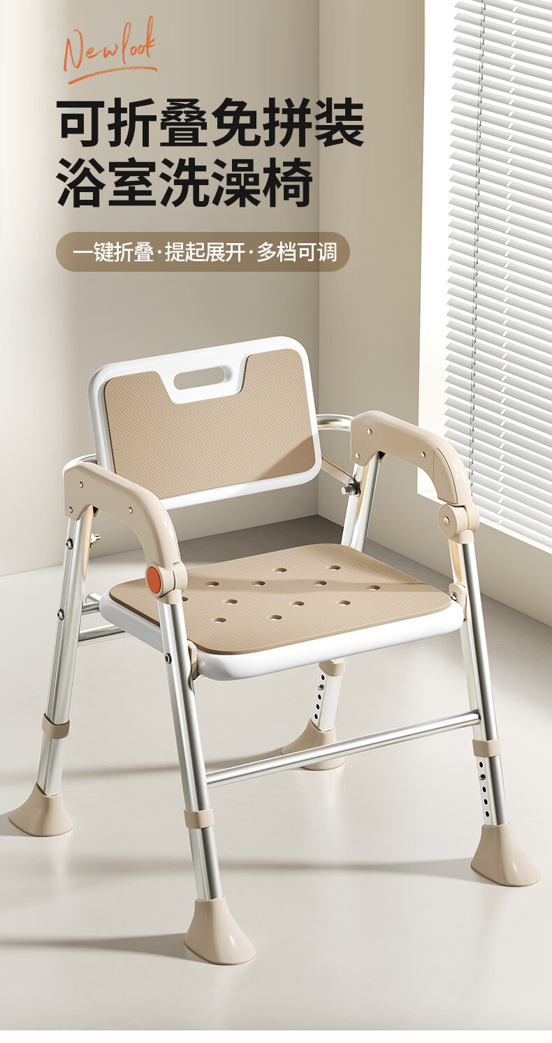 家文化(JIAWENHUA)老人孕妇浴室专用洗澡椅可折叠大靠背失能助浴淋浴椅子沐浴凳防滑 康养折叠大靠背淋浴洗澡椅-明茶棕 品牌限定色