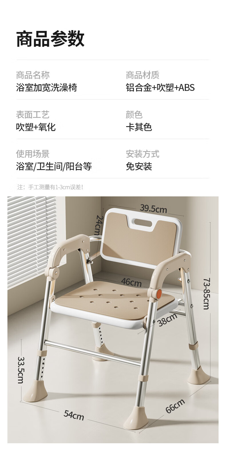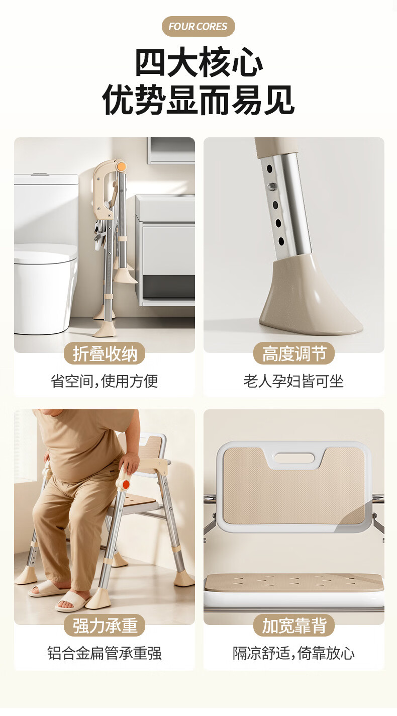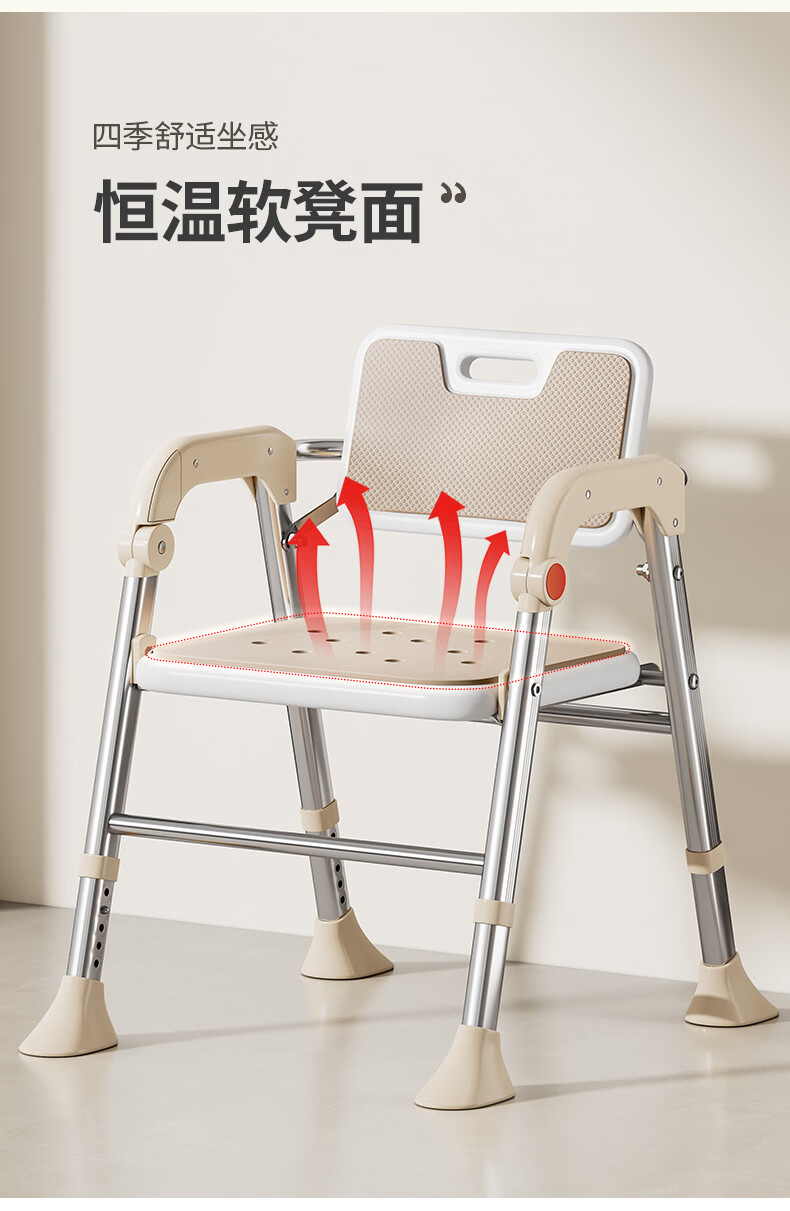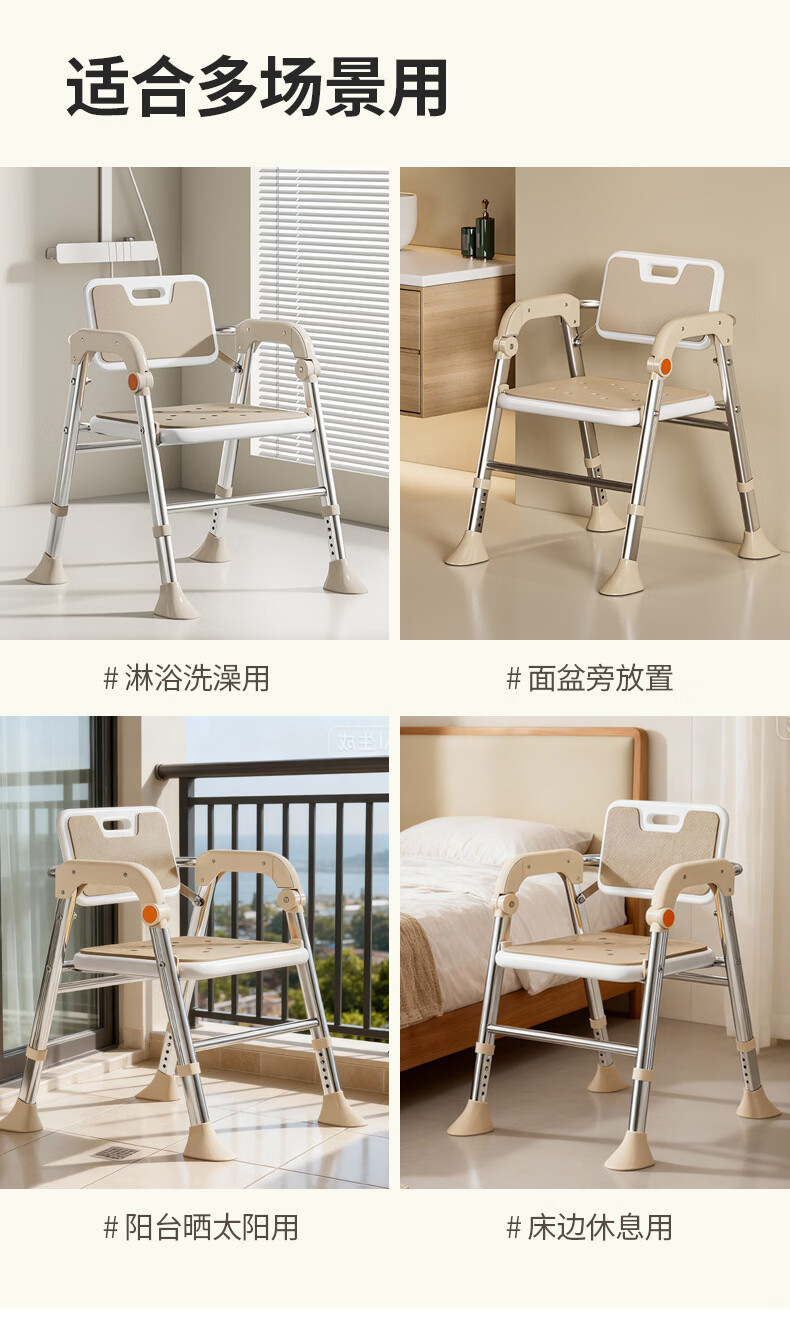 家文化(JIAWENHUA)老人孕妇浴室专用洗澡椅可折叠大靠背失能助浴淋浴椅子沐浴凳防滑 康养折叠大靠背淋浴洗澡椅-明茶棕 品牌限定色