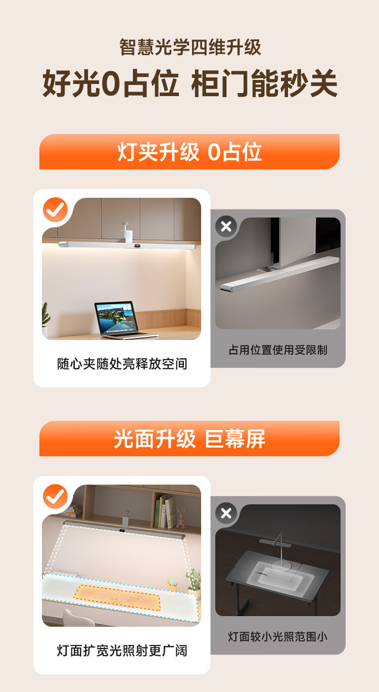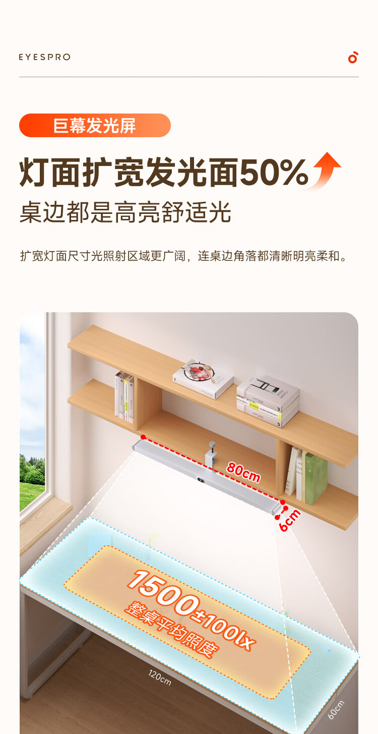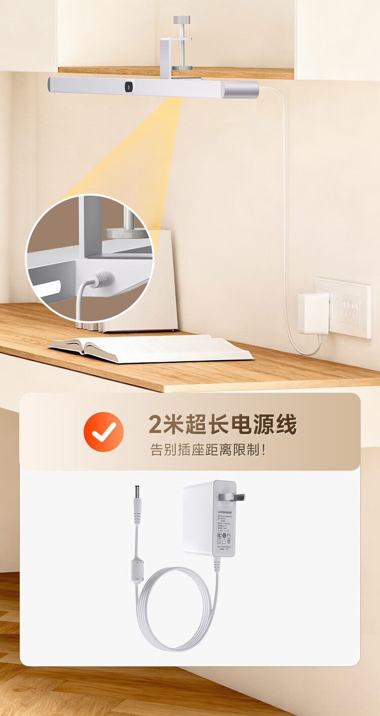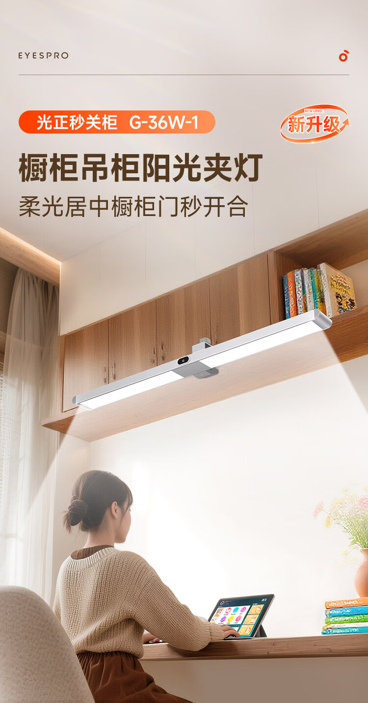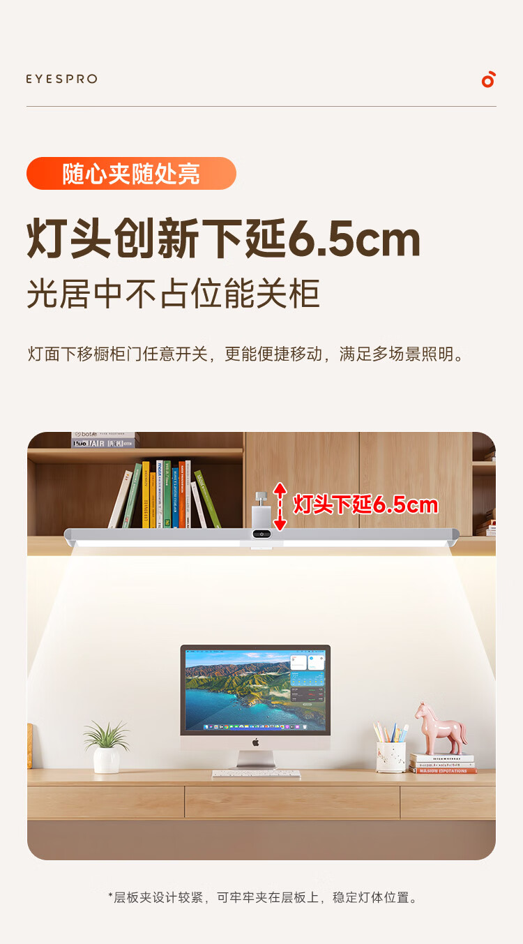 孩视宝夹式护眼台灯全光谱大路灯悬挂壁挂书桌吊柜学生儿童学习阅读灯 【升级工字夹】适配带柜门吊柜 G-36W-1
