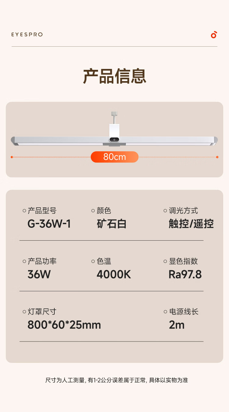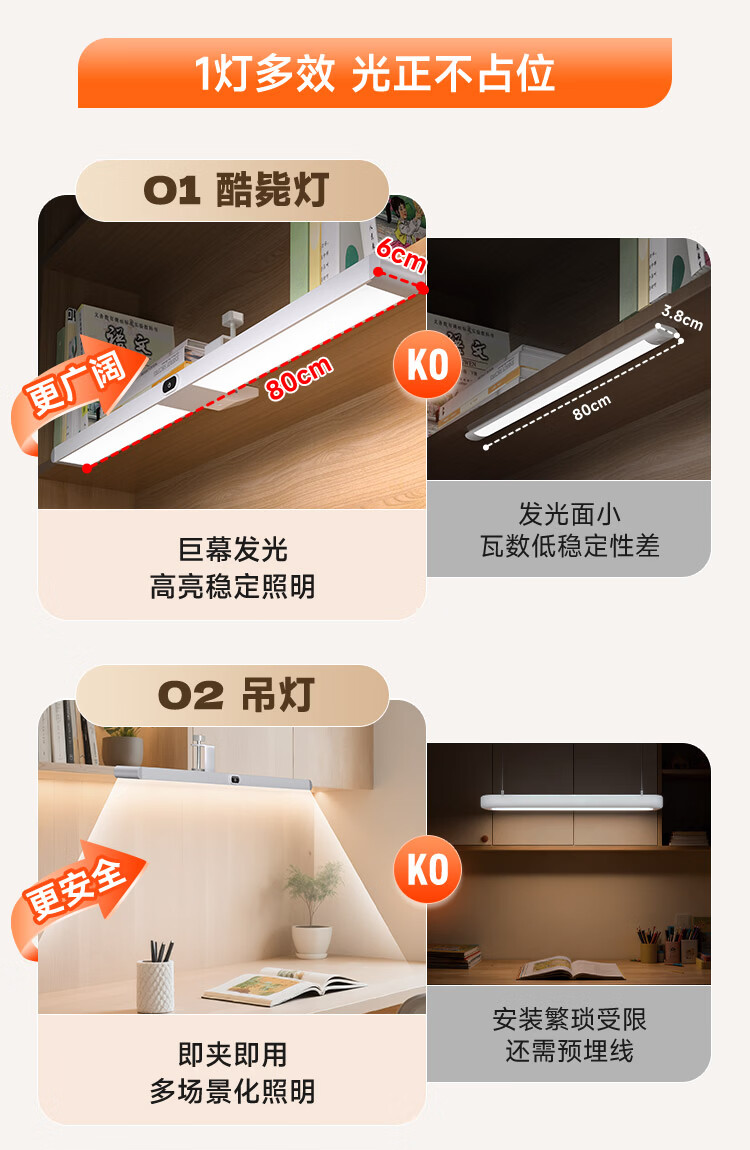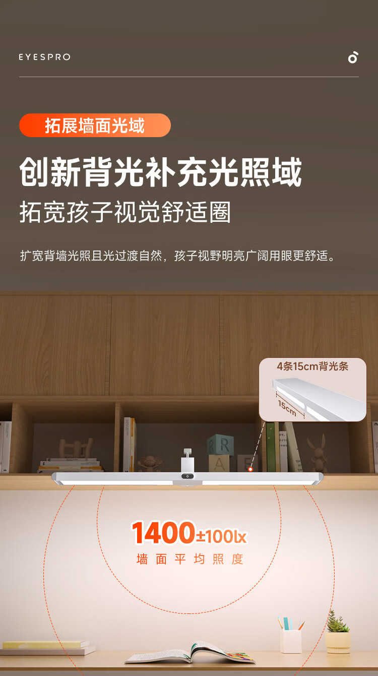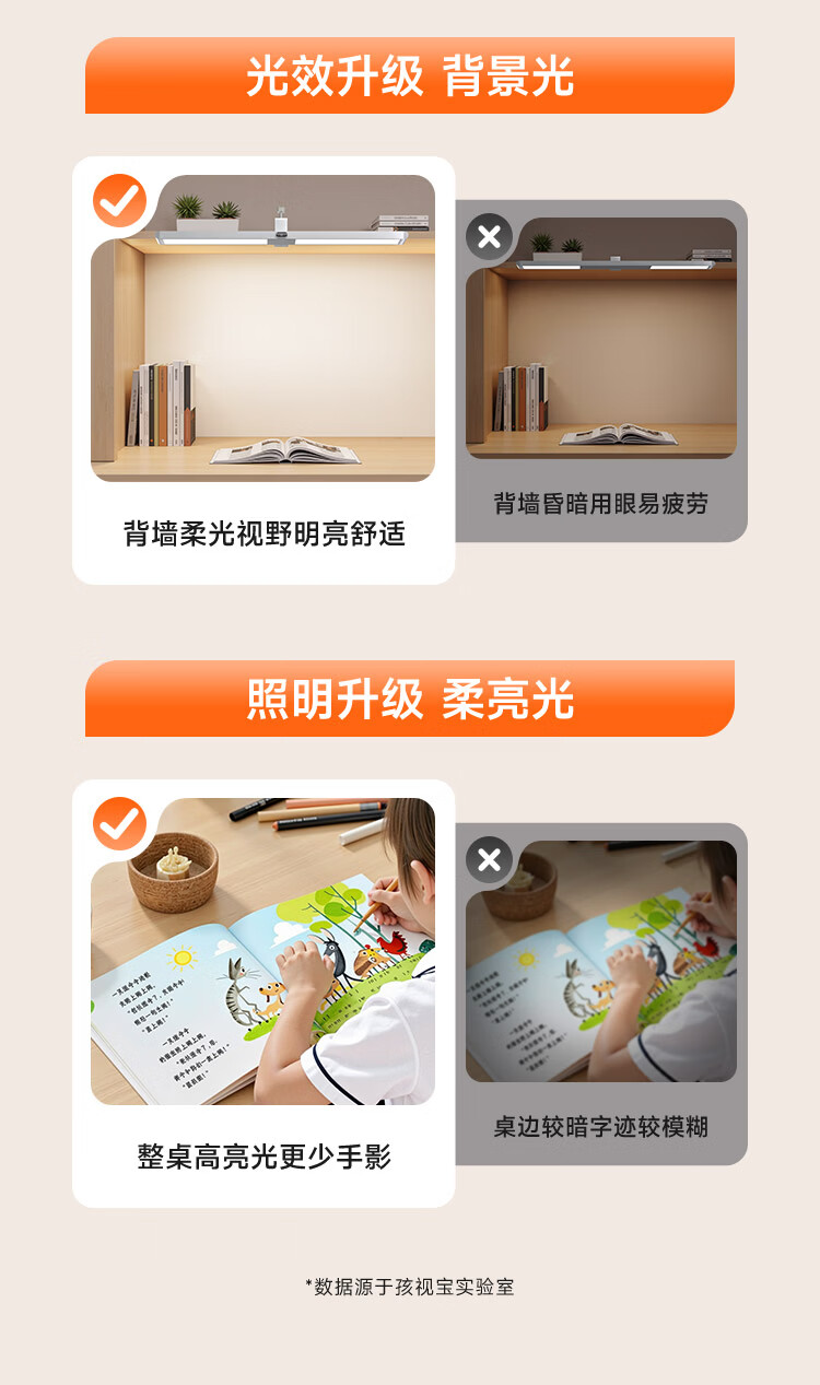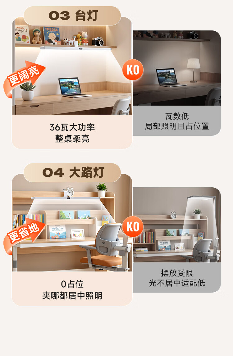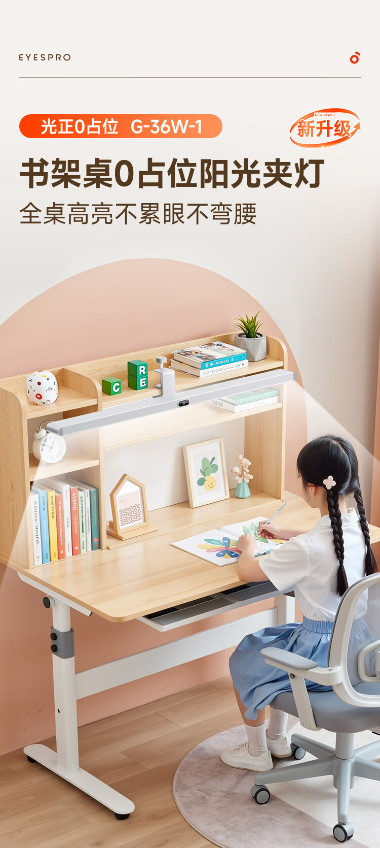 孩视宝夹式护眼台灯全光谱大路灯悬挂壁挂书桌吊柜学生儿童学习阅读灯 【升级工字夹】适配带柜门吊柜 G-36W-1