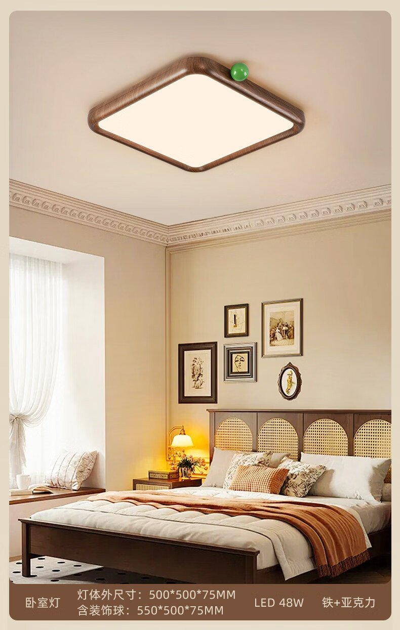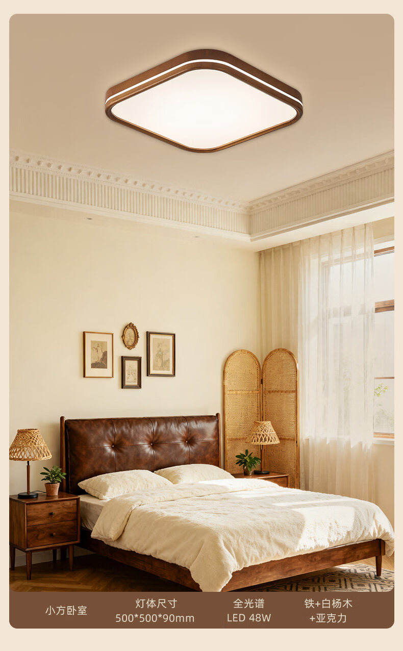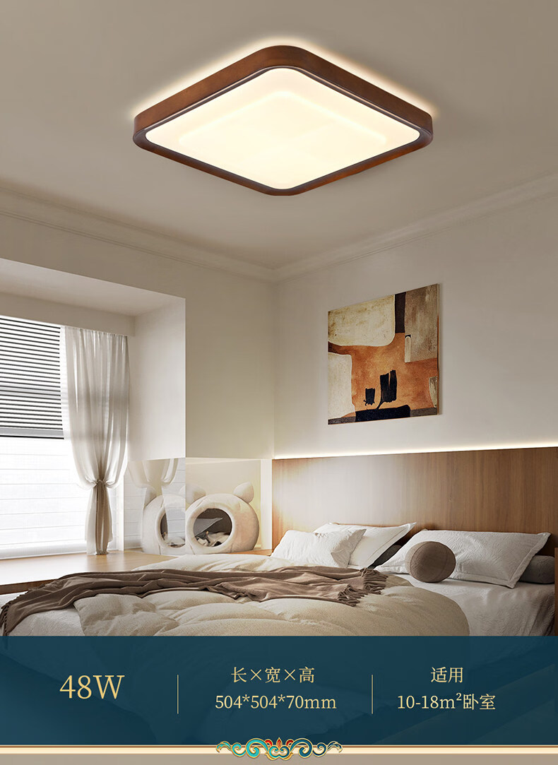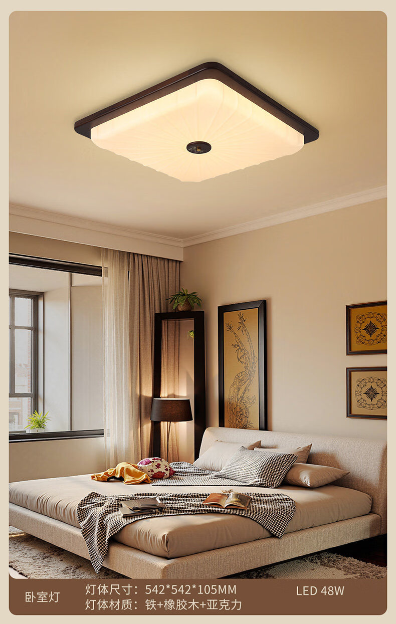 雷士(NVC)卧室吸顶灯中古风宋氏美学美拉德房间新款护眼led书房新中式灯 02_悬浮光【智能全光谱】60W-小方