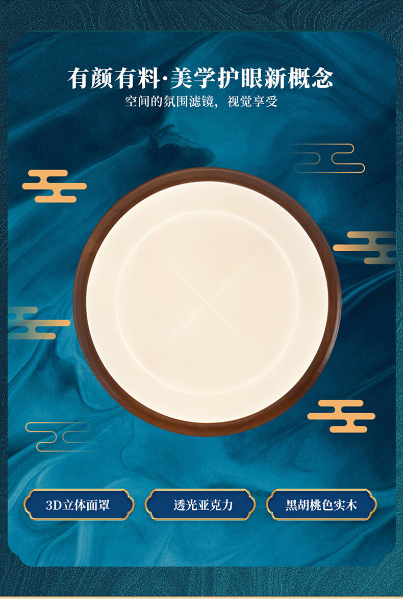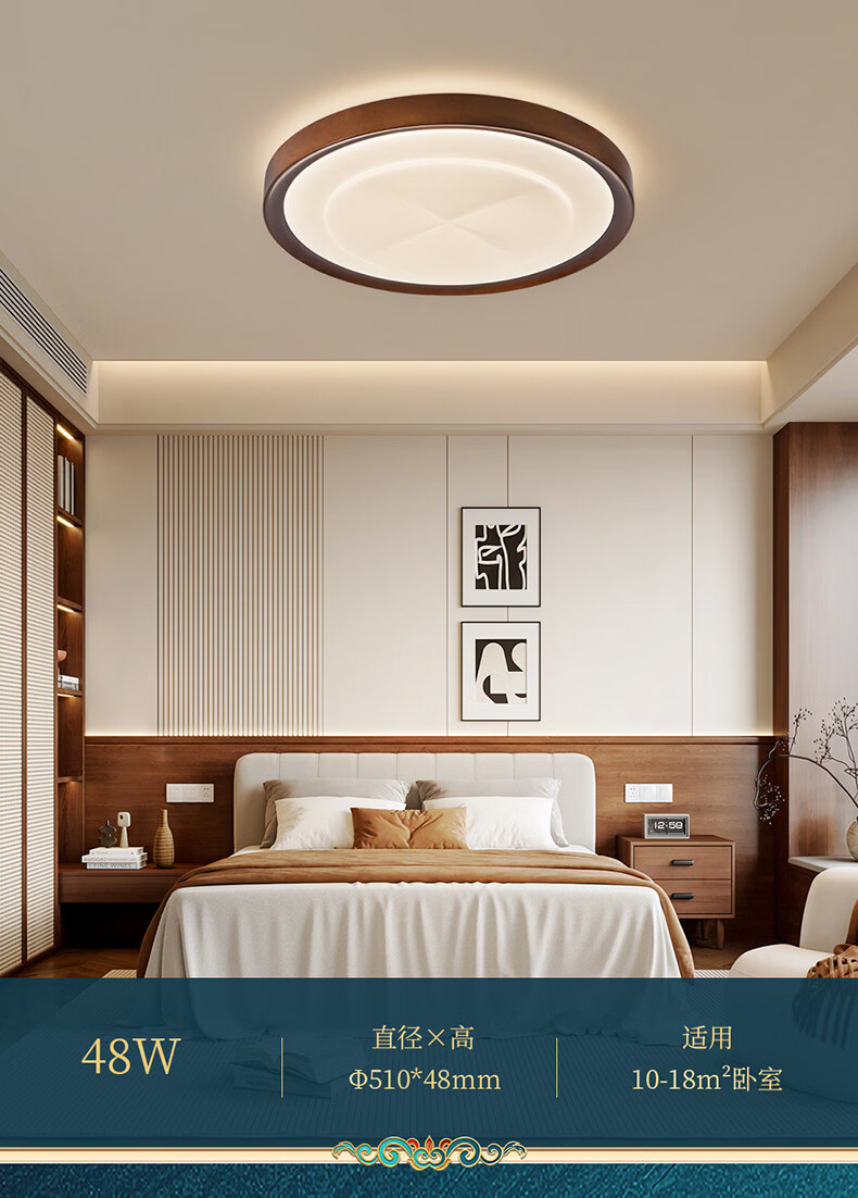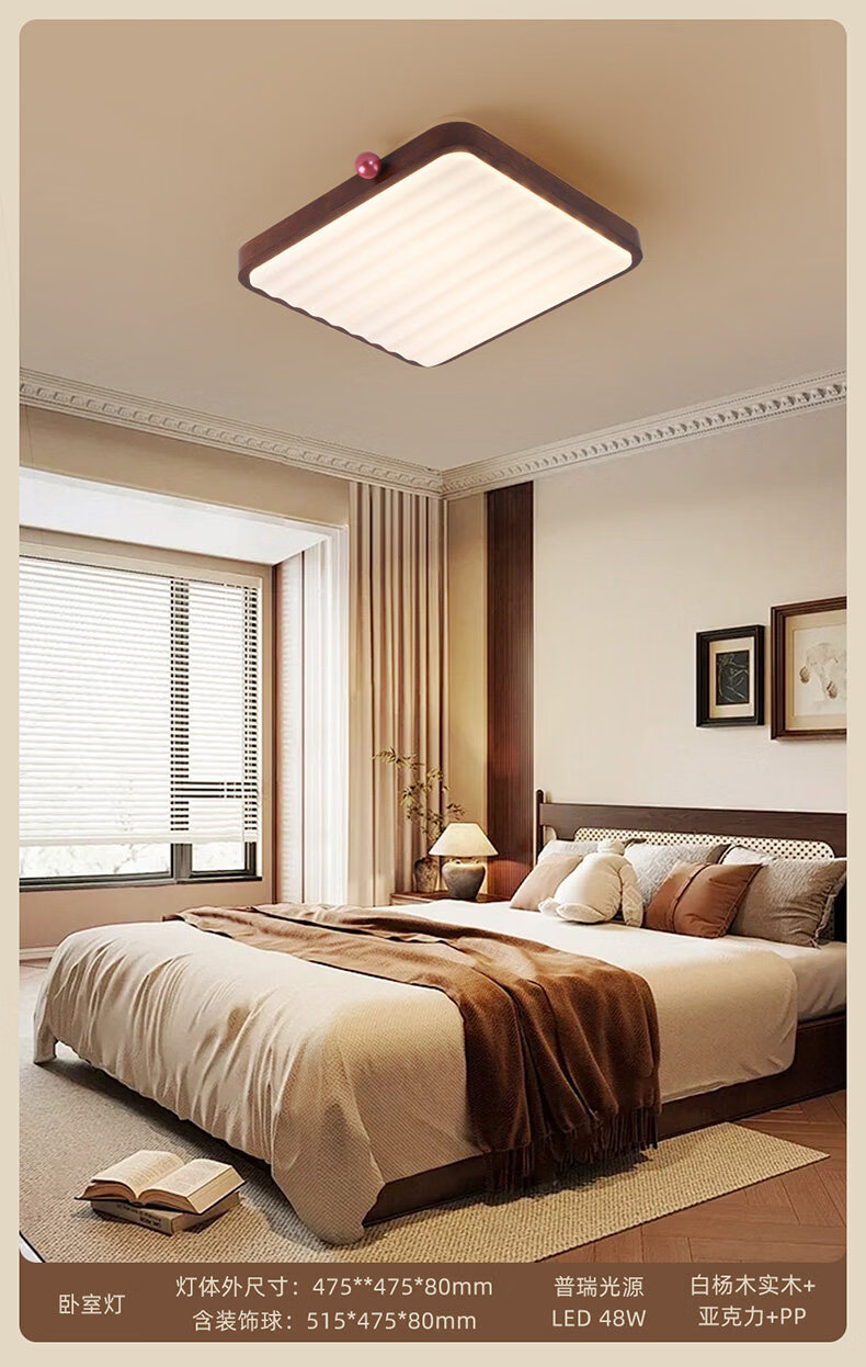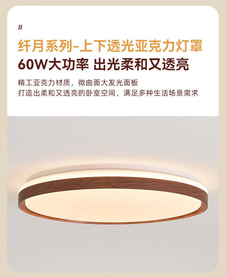 雷士(NVC)卧室吸顶灯中古风宋氏美学美拉德房间新款护眼led书房新中式灯 02_悬浮光【智能全光谱】60W-小方