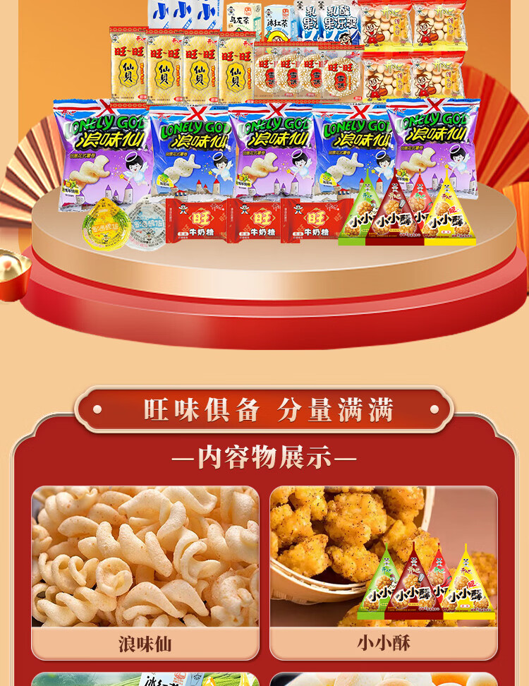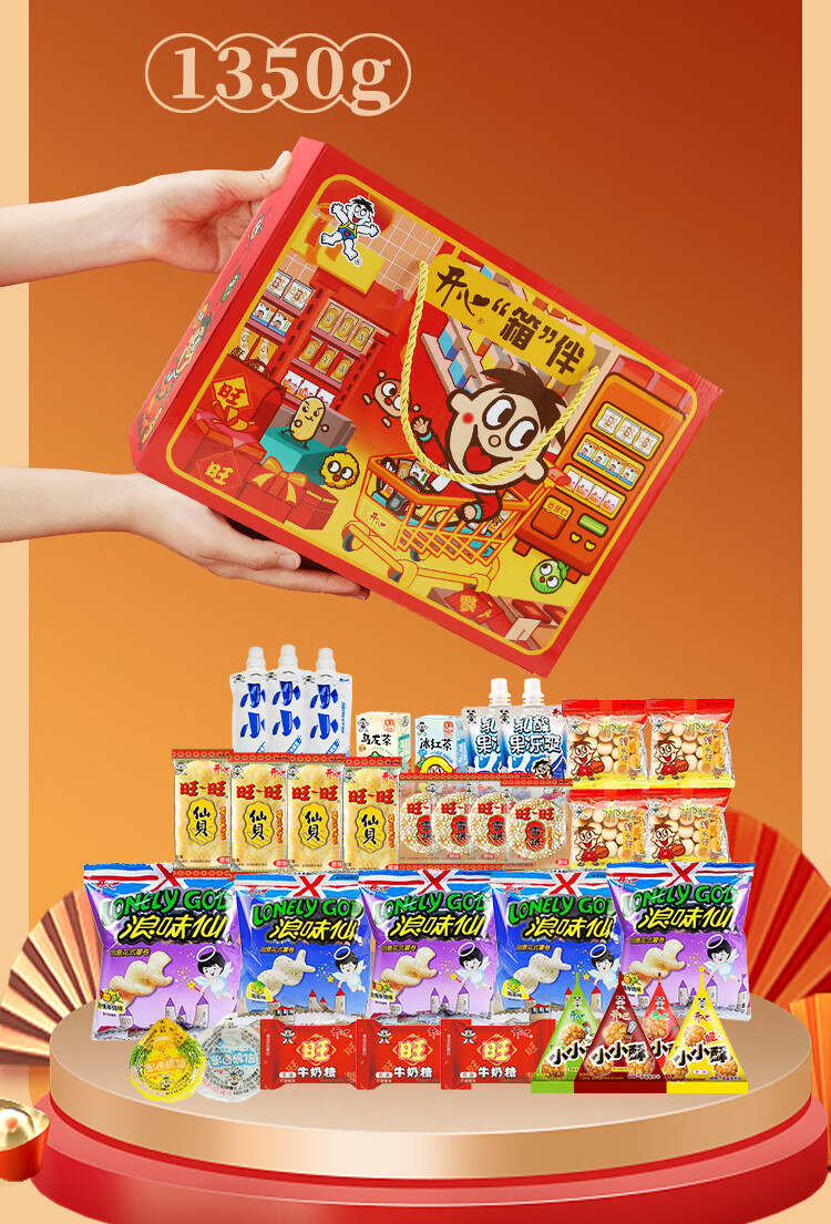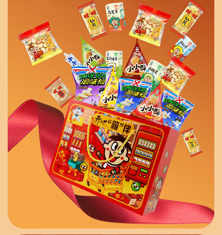 旺旺零食大礼袋双十一惊喜节日礼品生日礼物休闲食品 旺旺醒狮八角礼盒1200g