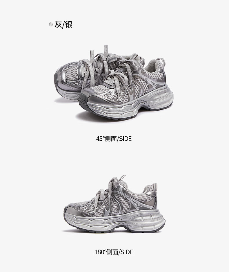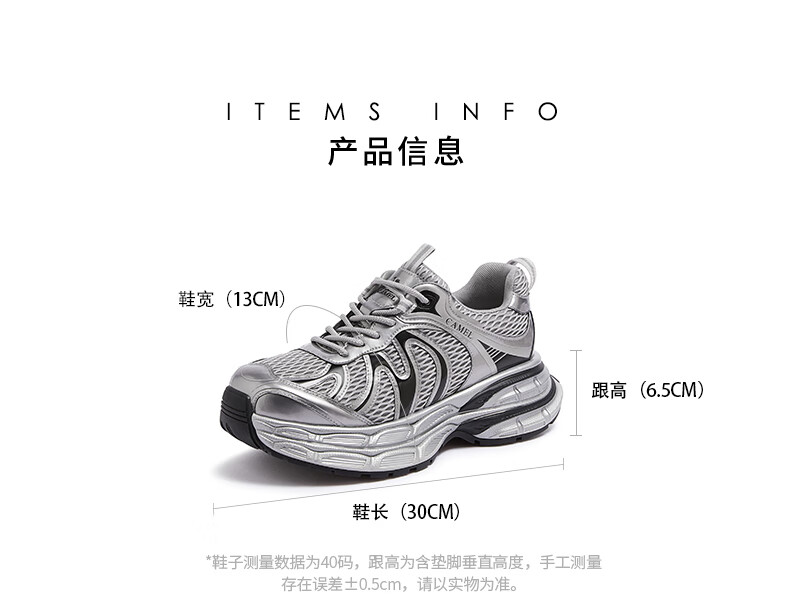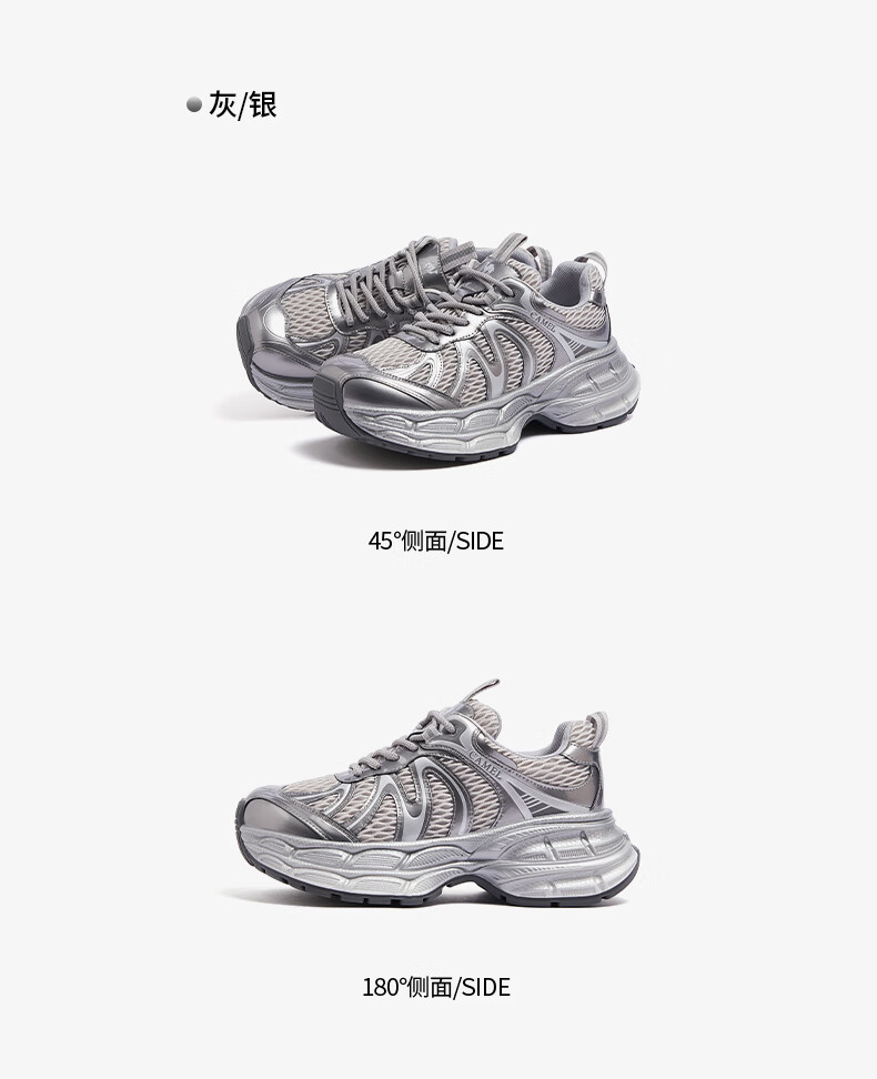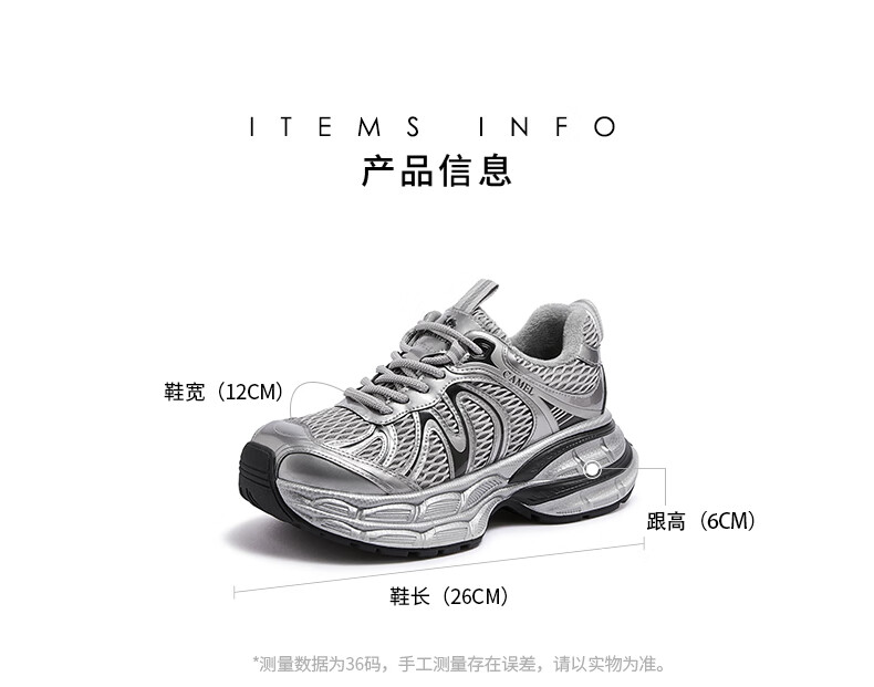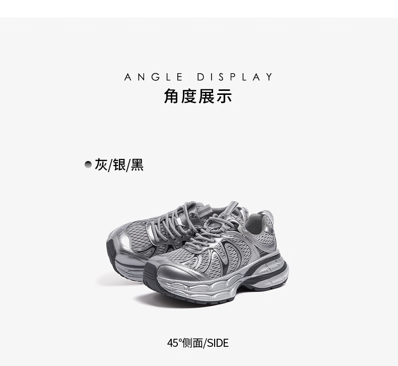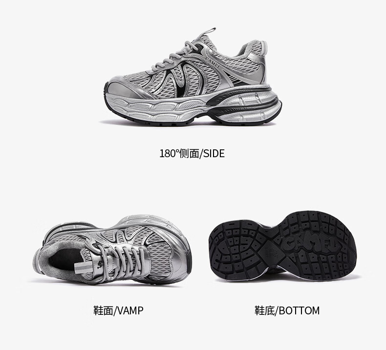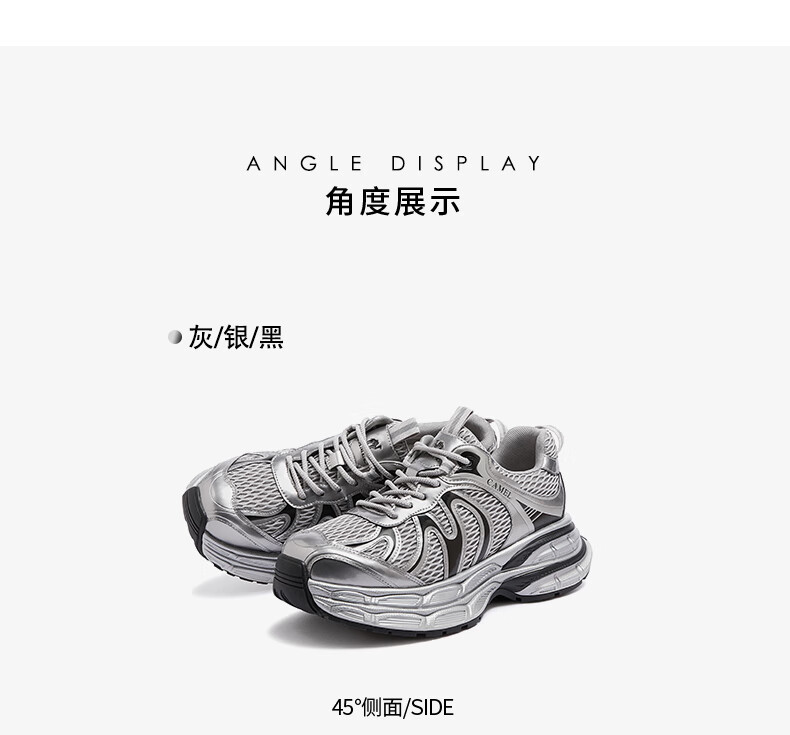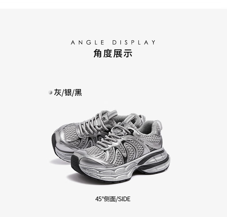 骆驼(CAMEL)【迪丽热巴同款】银月二代老爹鞋女厚底百搭时尚休闲鞋 L25A283148灰/银/黑 37