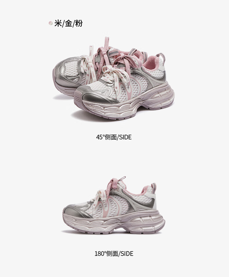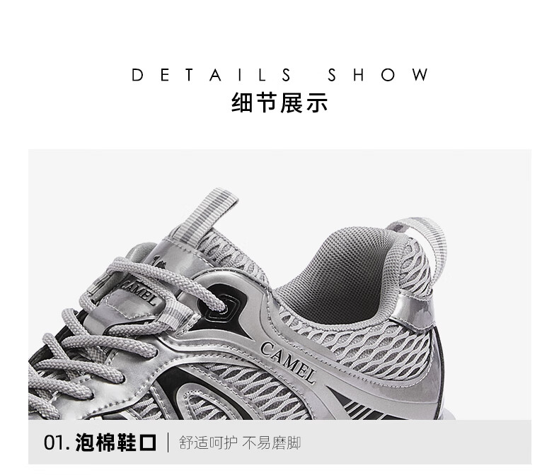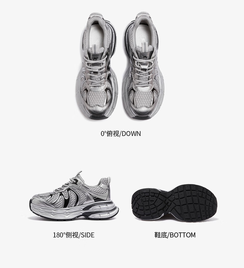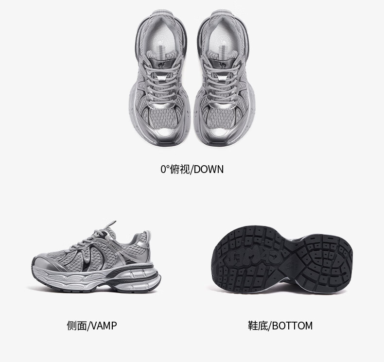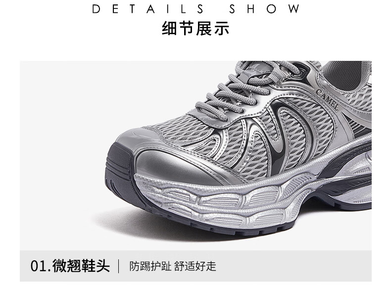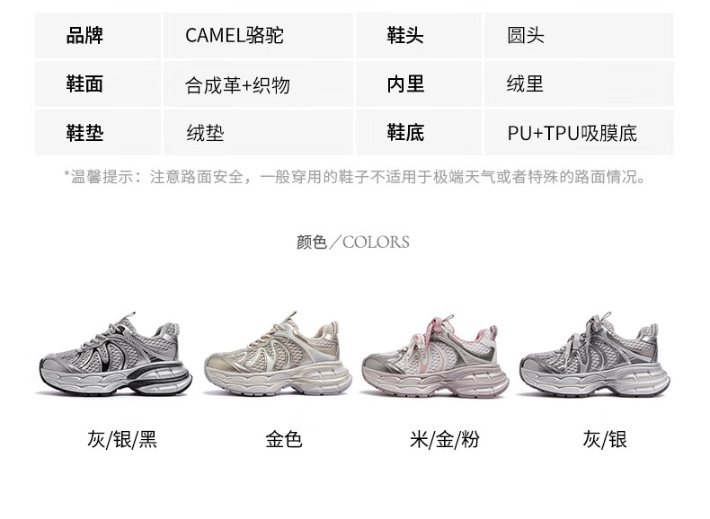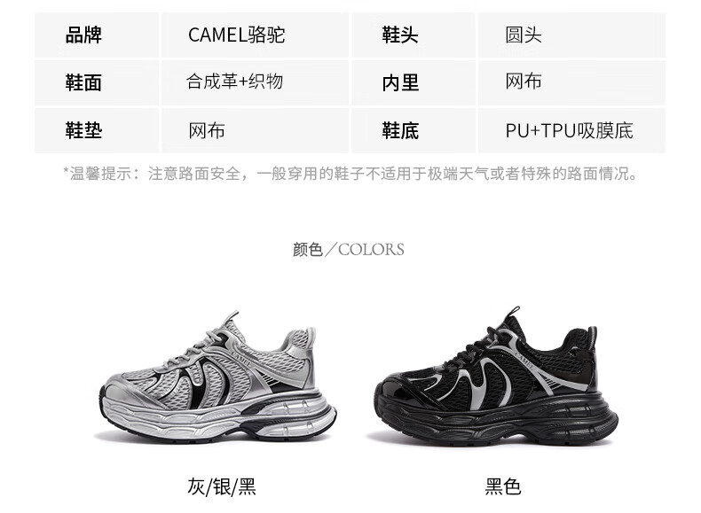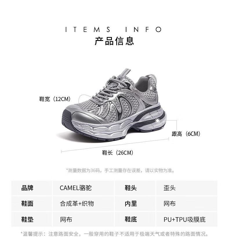 骆驼(CAMEL)【迪丽热巴同款】银月二代老爹鞋女厚底百搭时尚休闲鞋 L25A283148灰/银/黑 37