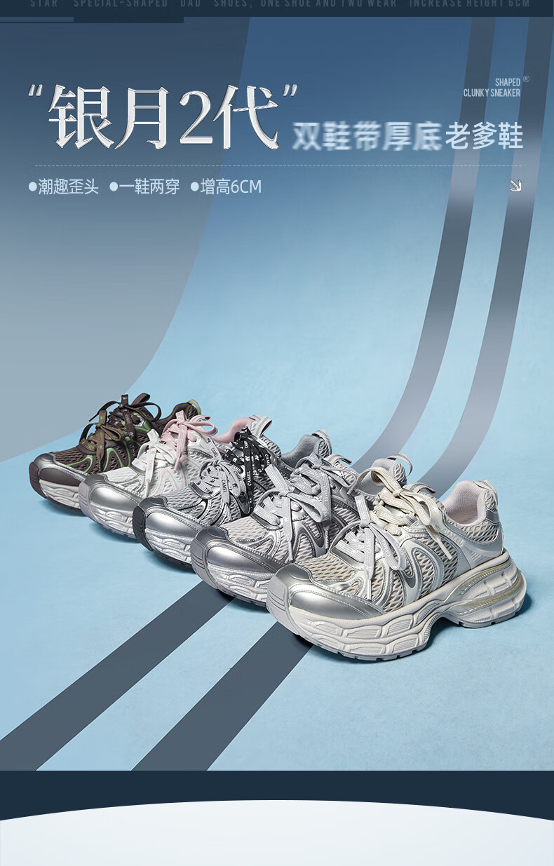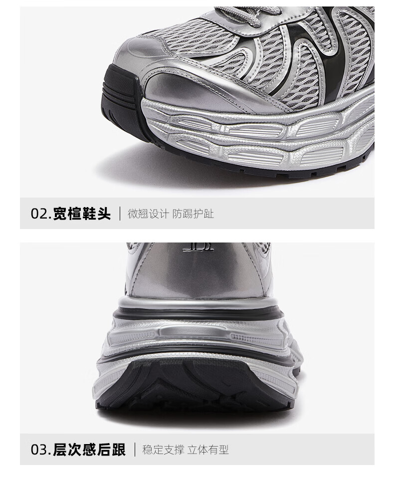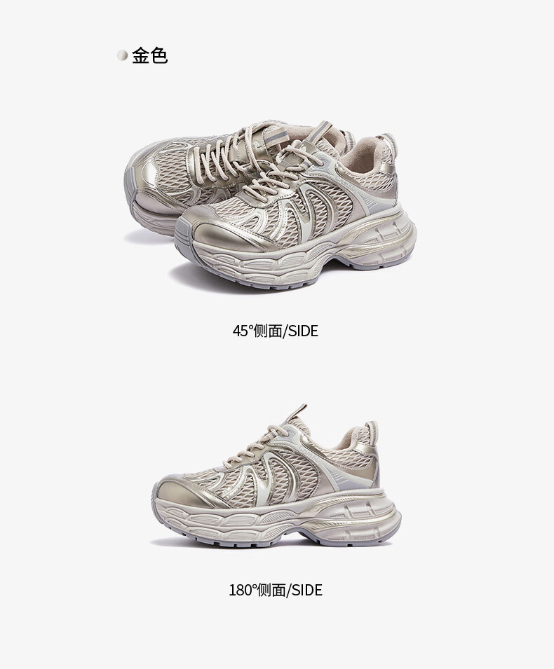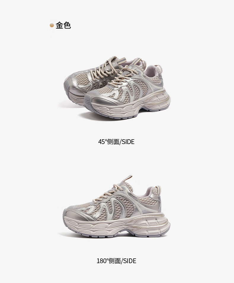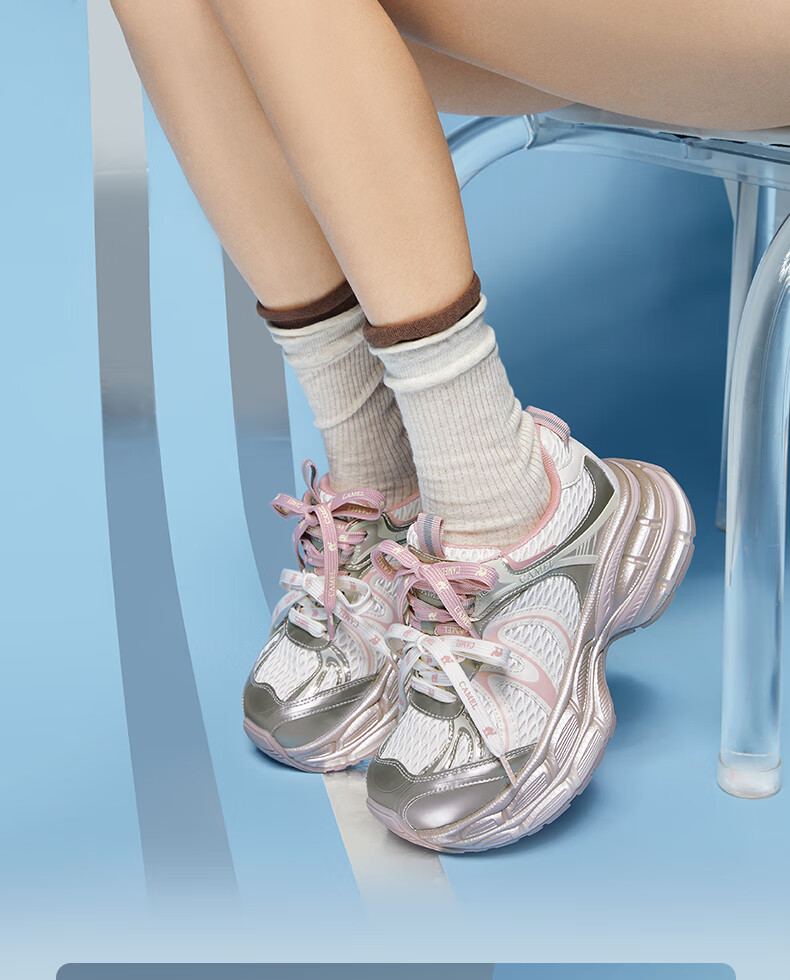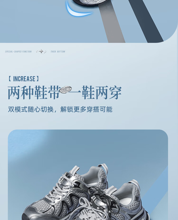 骆驼(CAMEL)【迪丽热巴同款】银月二代老爹鞋女厚底百搭时尚休闲鞋 L25A283148灰/银/黑 37