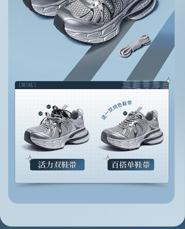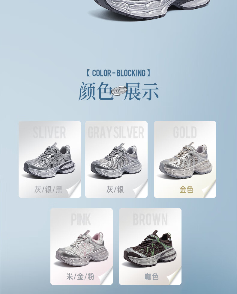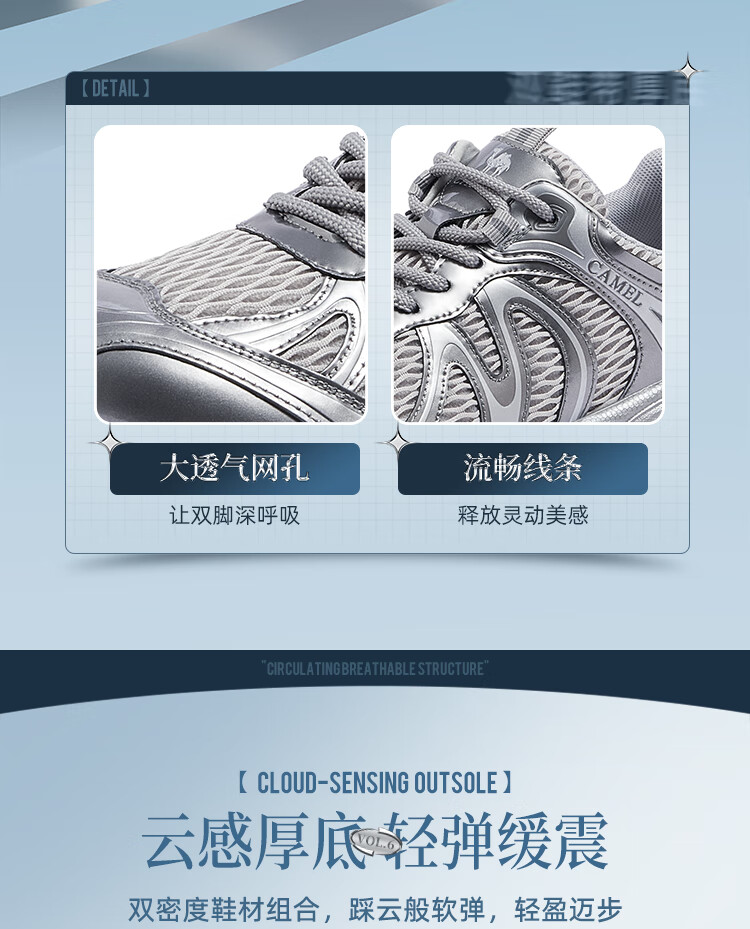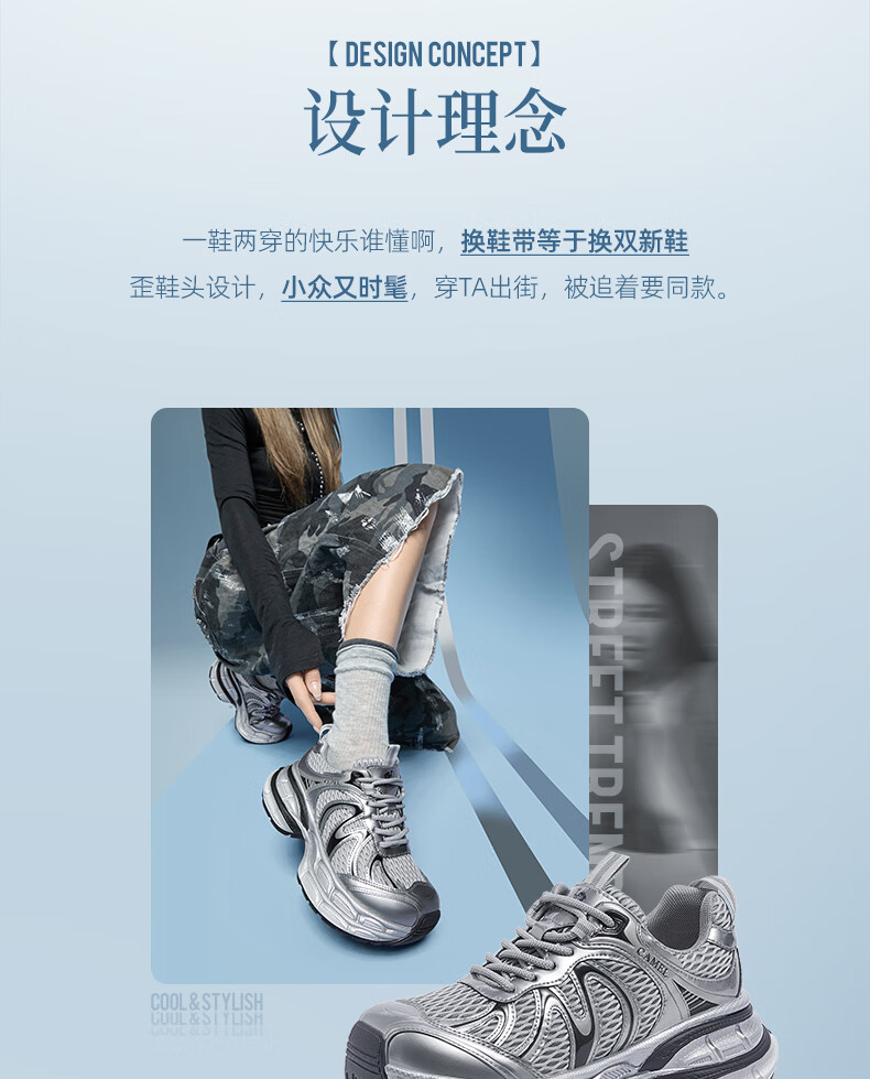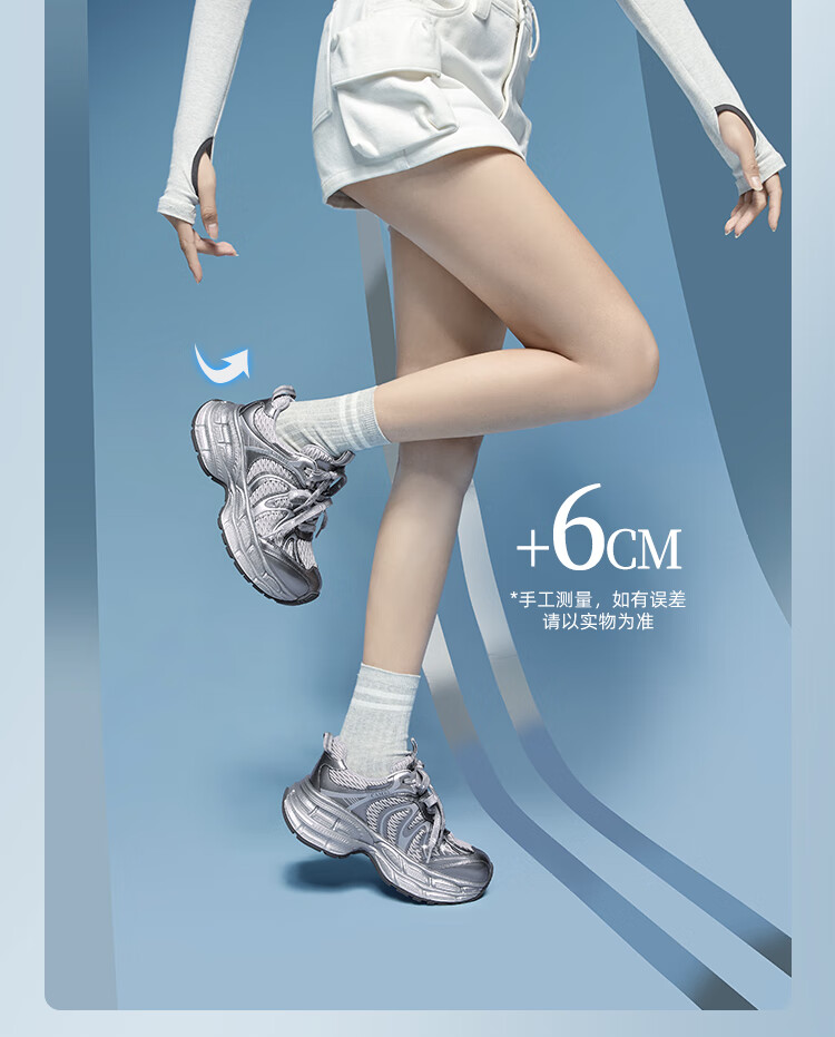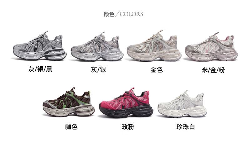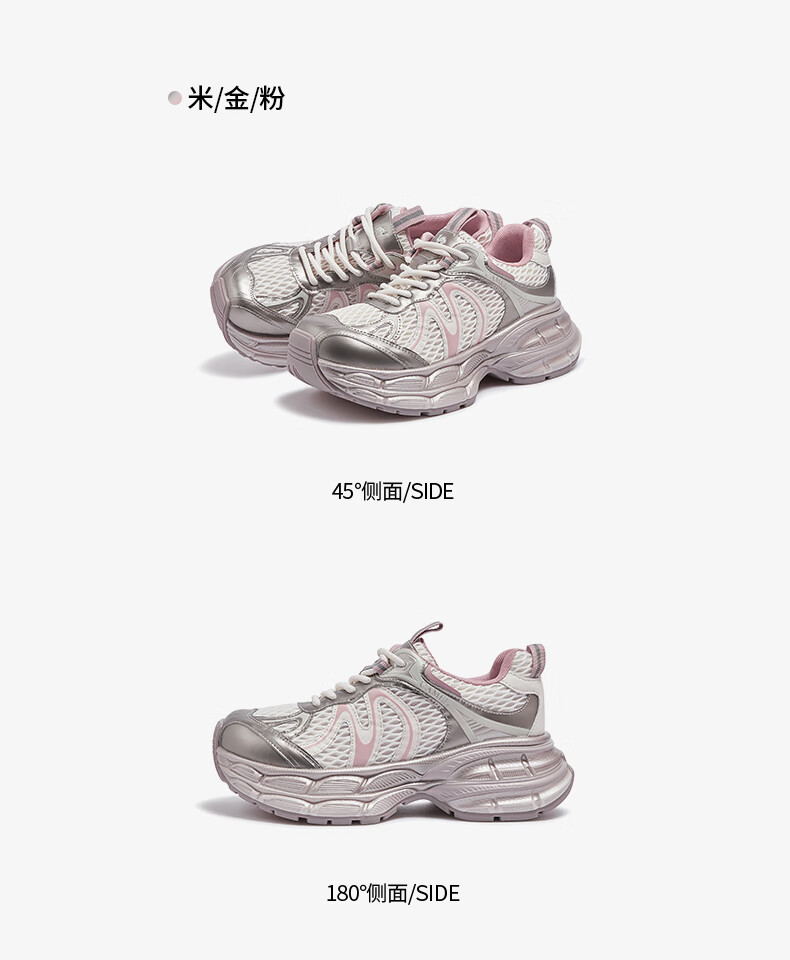 骆驼(CAMEL)【迪丽热巴同款】银月二代老爹鞋女厚底百搭时尚休闲鞋 L25A283148灰/银/黑 37