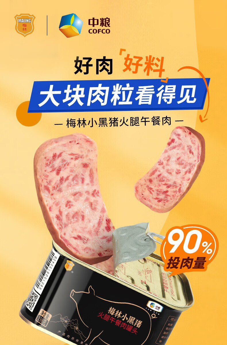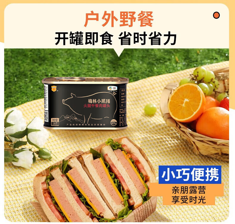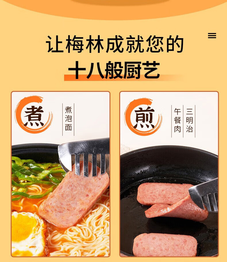 梅林(MALING)午餐肉罐头儿童火腿午餐肉肠火锅食材开罐即食方便食品应急储备 可口【198g*4罐】