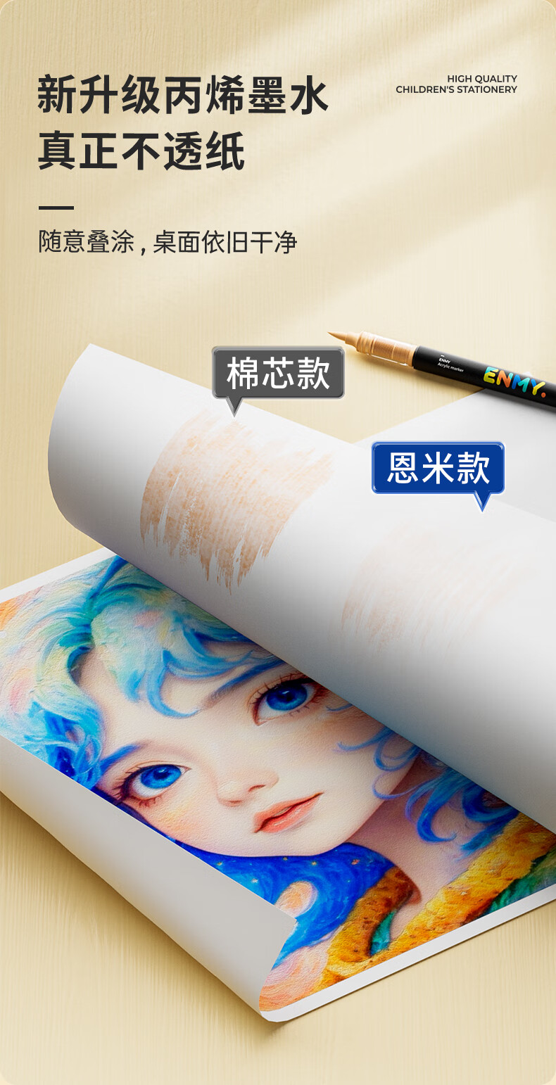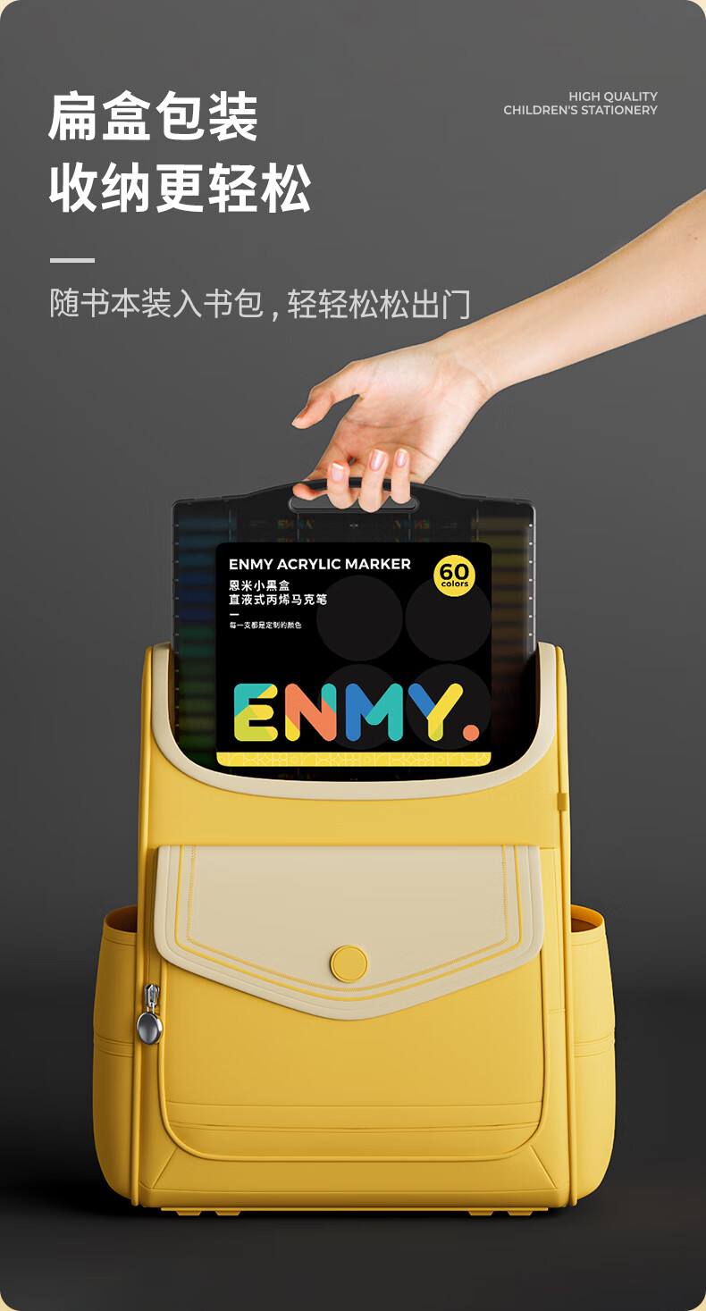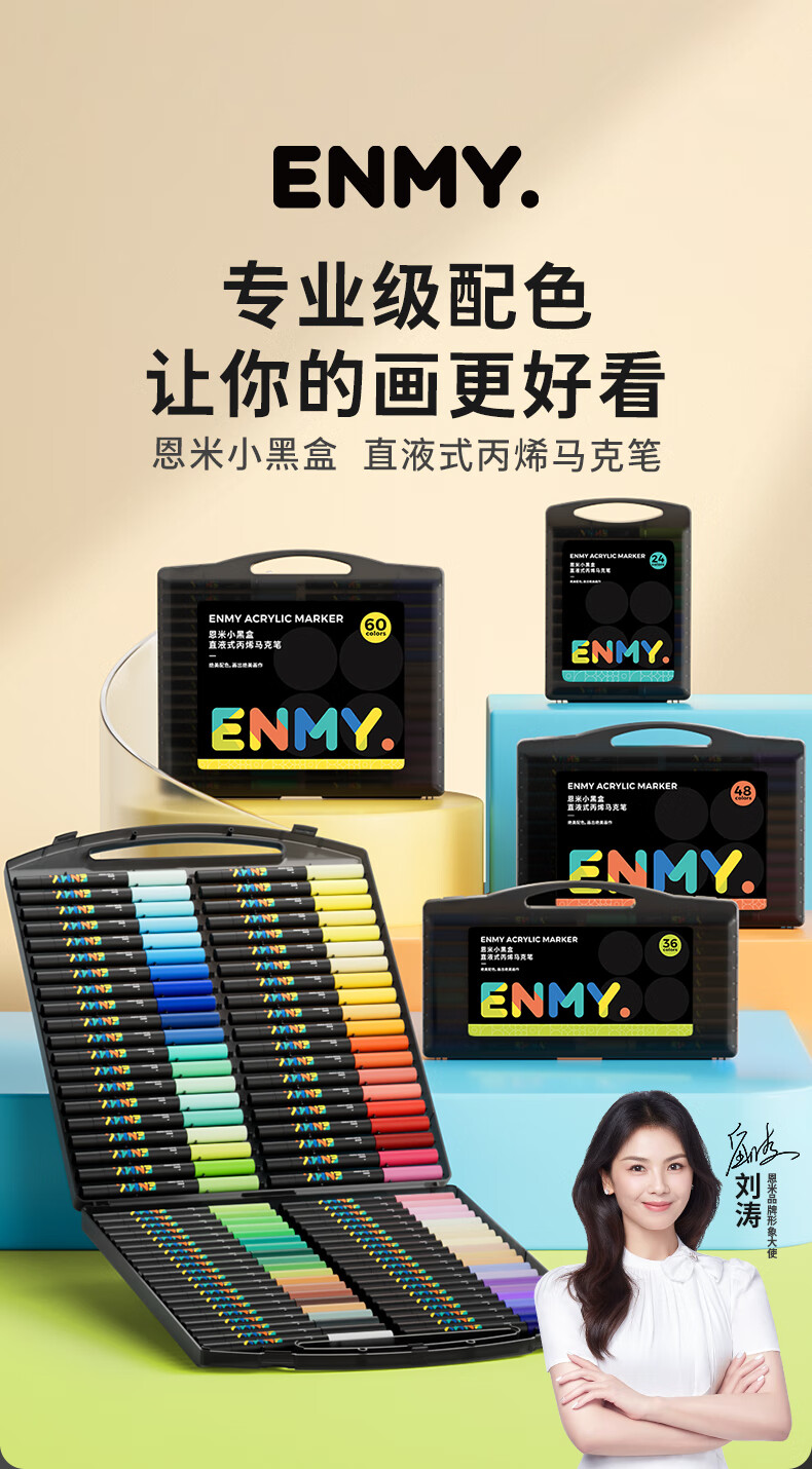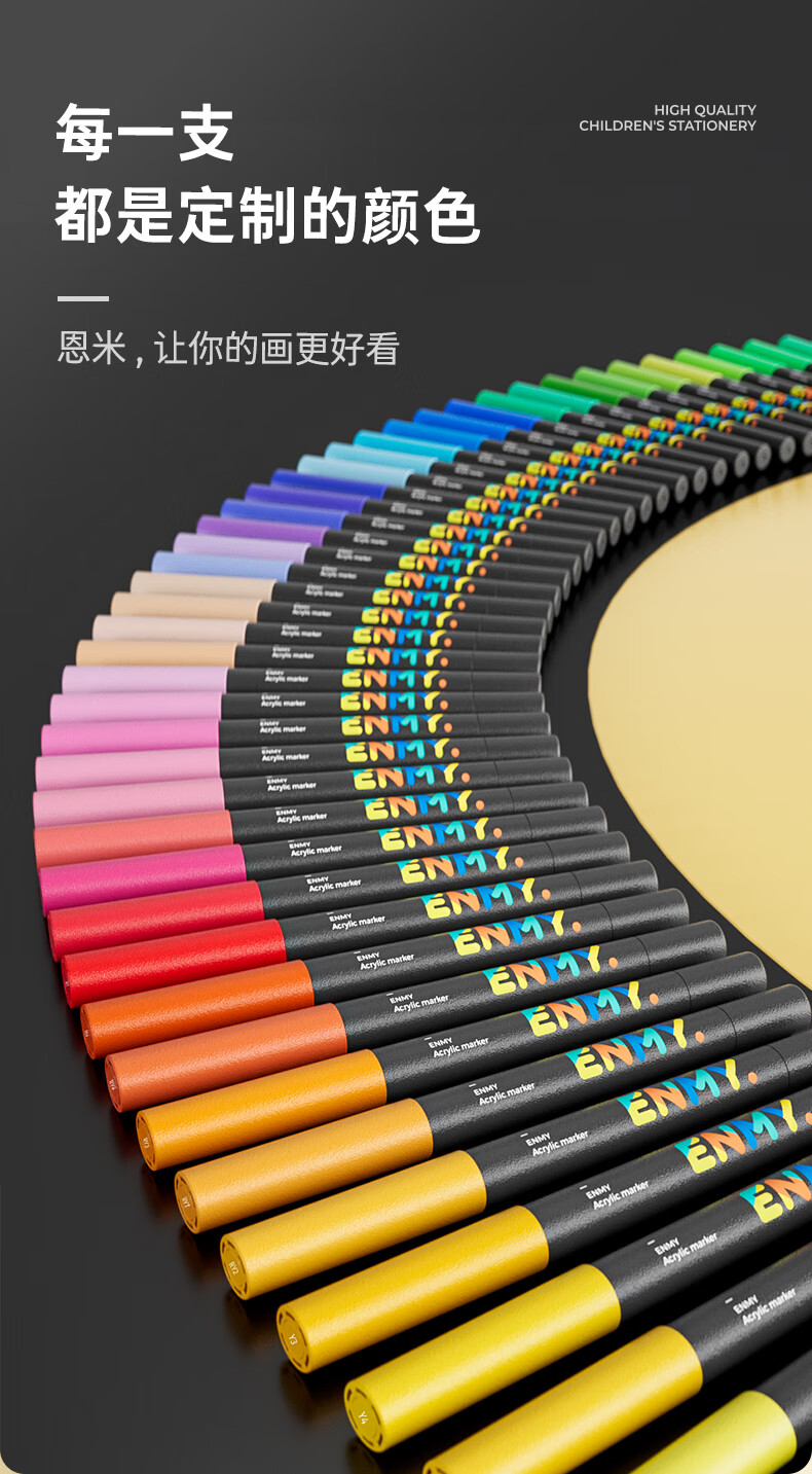 恩米enmy80色小黑盒直液式丙烯马克笔软头可控墨彩色小学生美术美育高覆盖不透色水彩笔开学必备