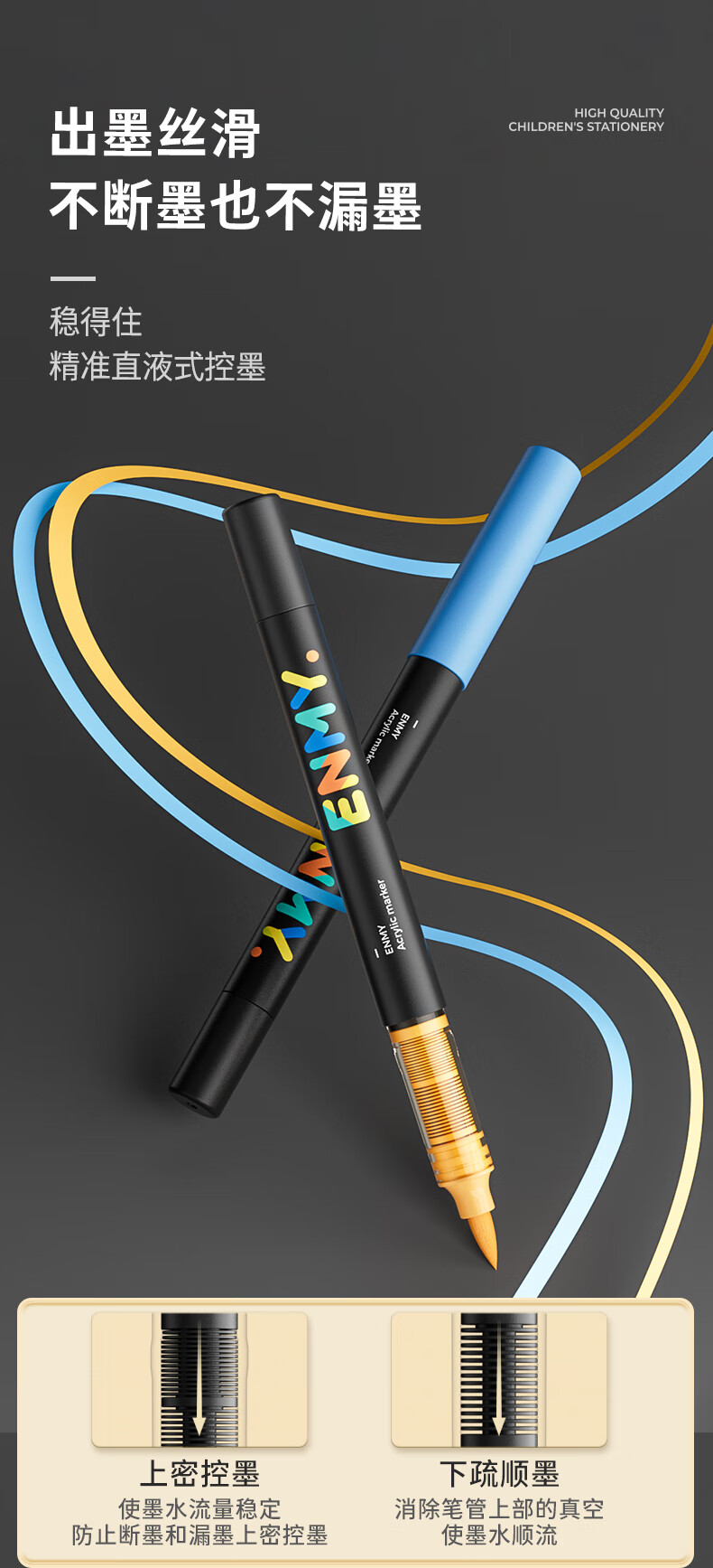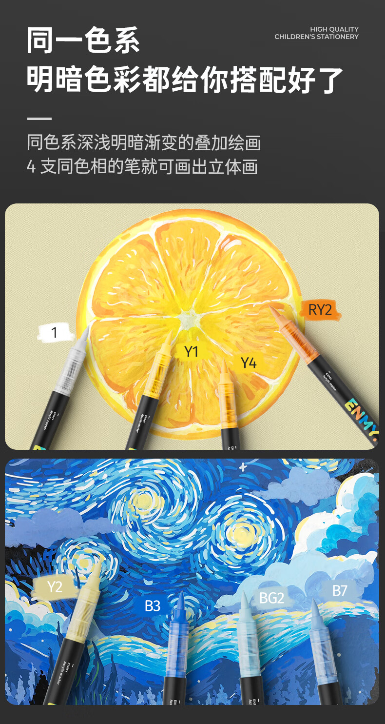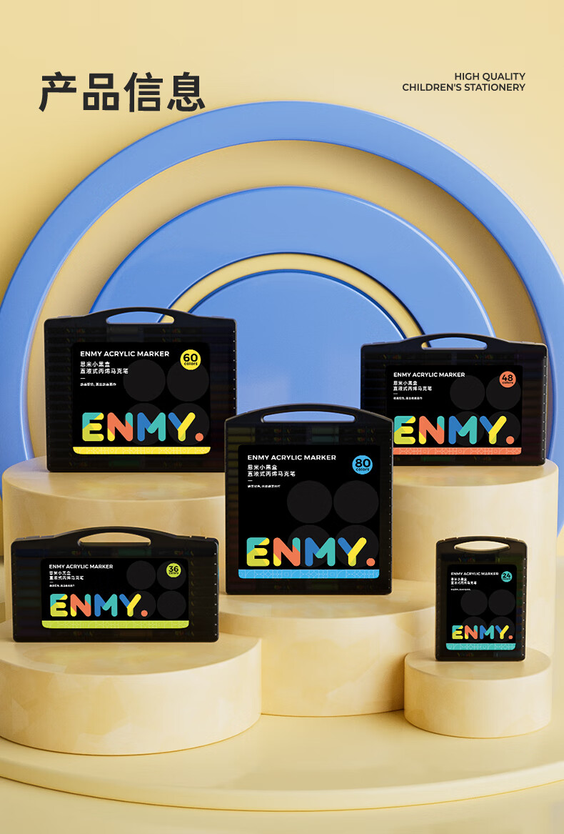 恩米enmy80色小黑盒直液式丙烯马克笔软头可控墨彩色小学生美术美育高覆盖不透色水彩笔开学必备