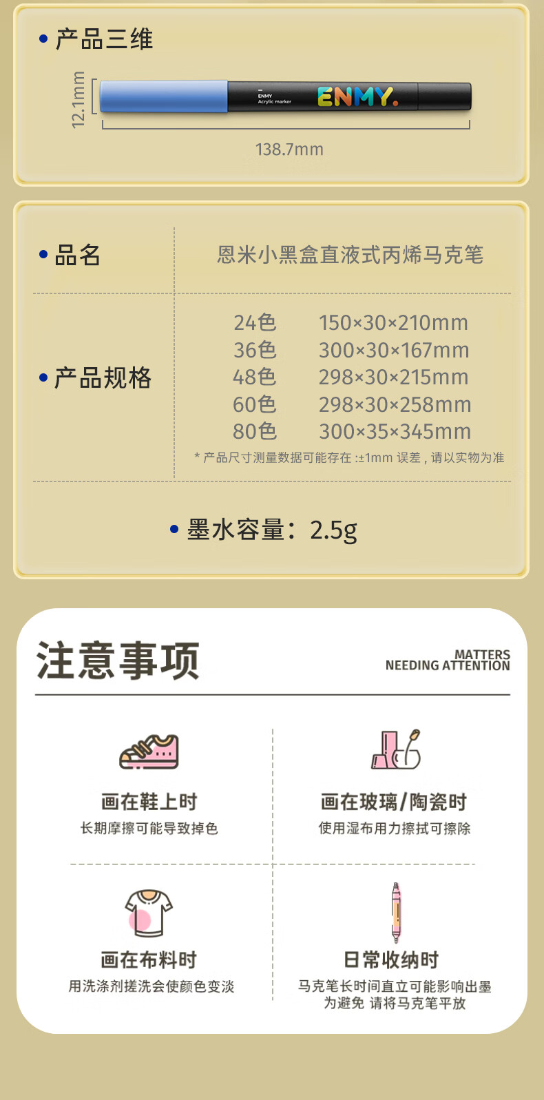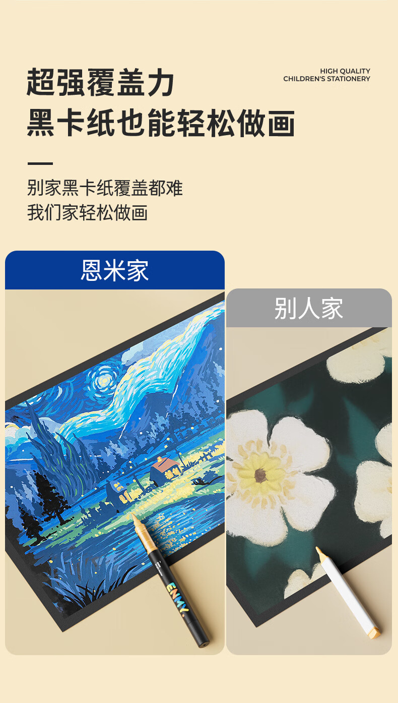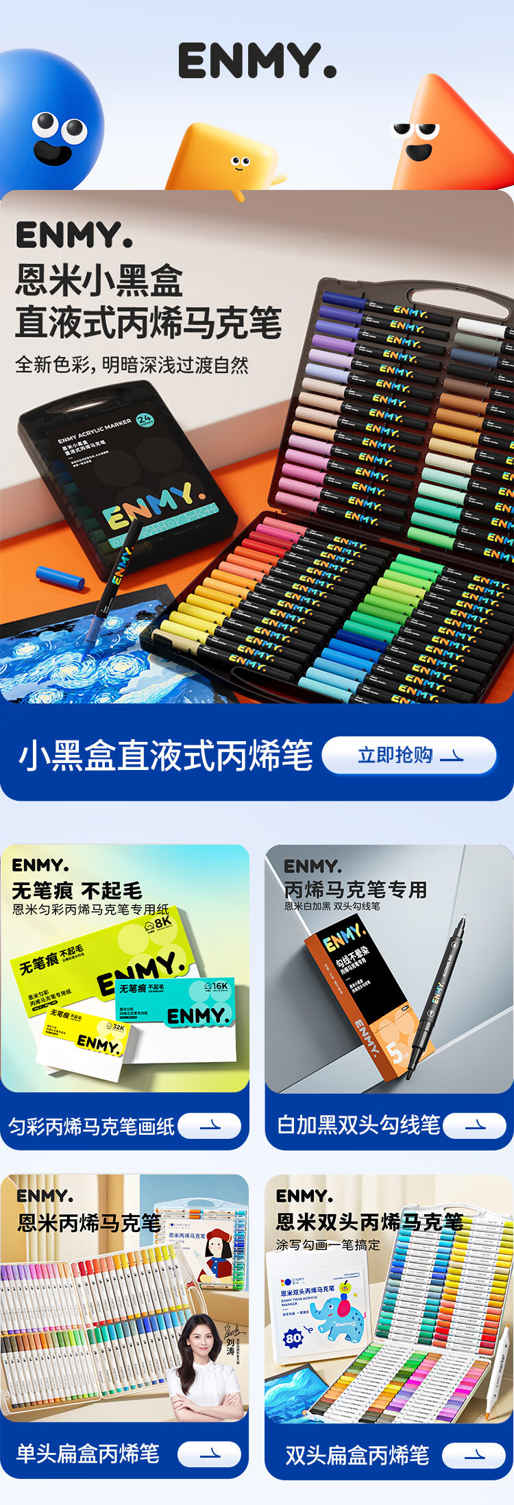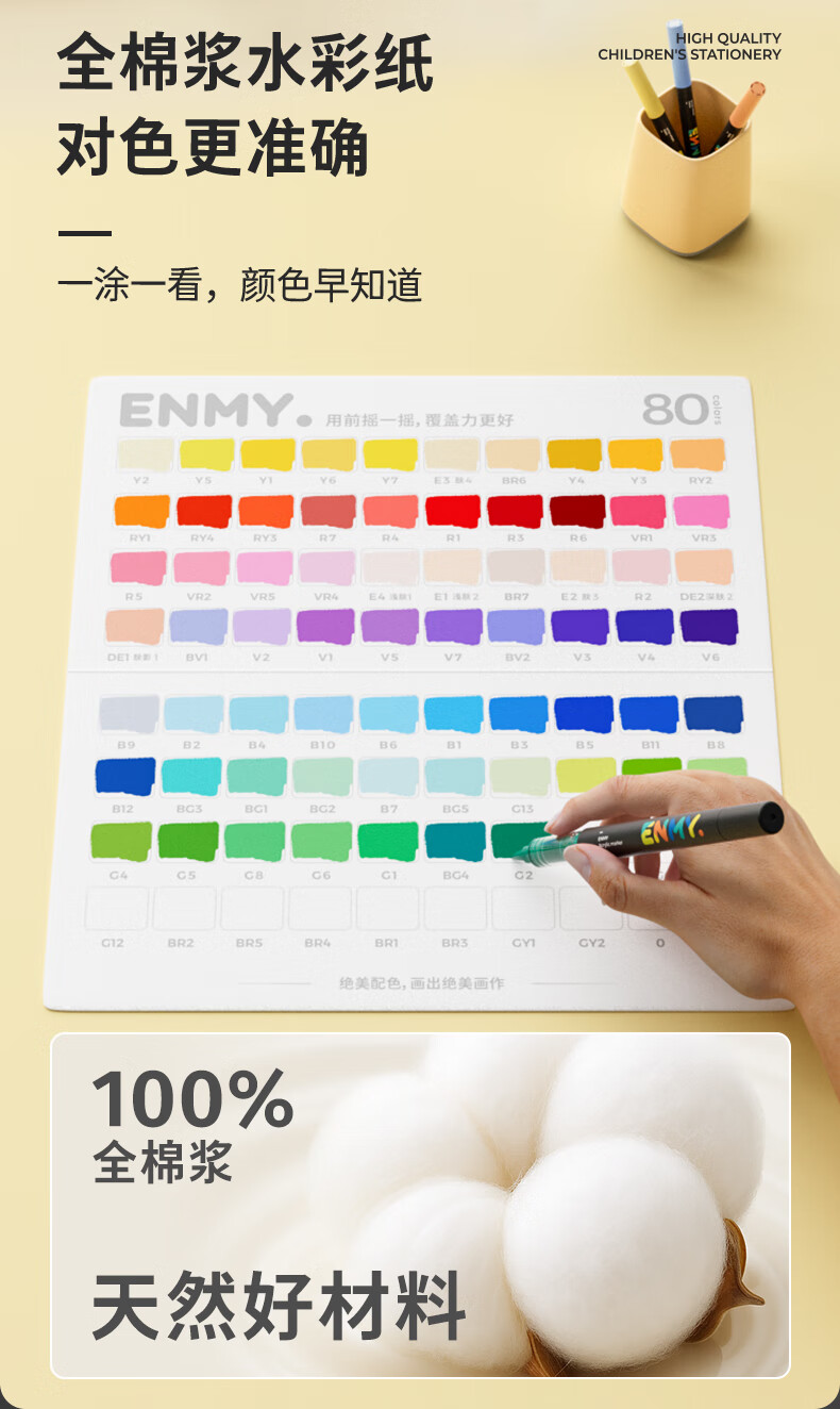 恩米enmy80色小黑盒直液式丙烯马克笔软头可控墨彩色小学生美术美育高覆盖不透色水彩笔开学必备
