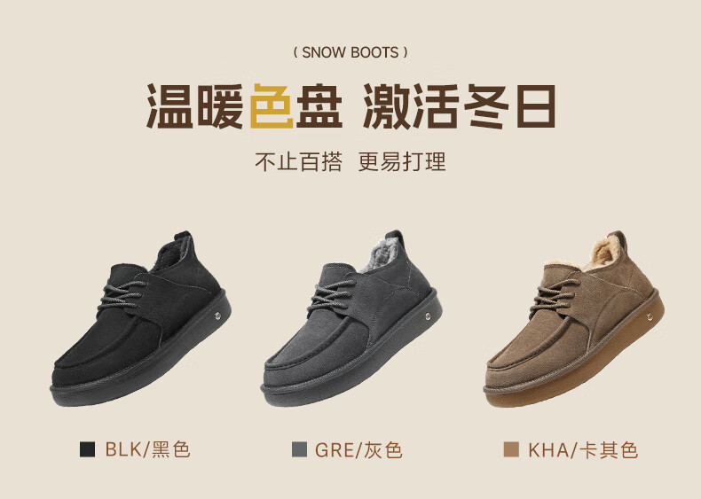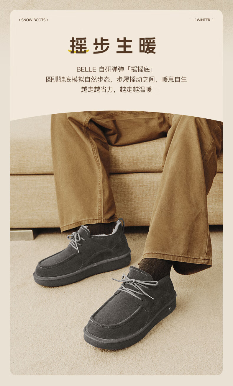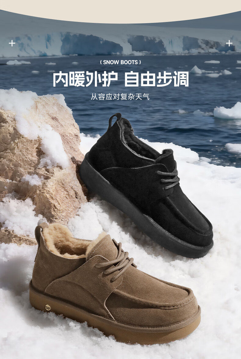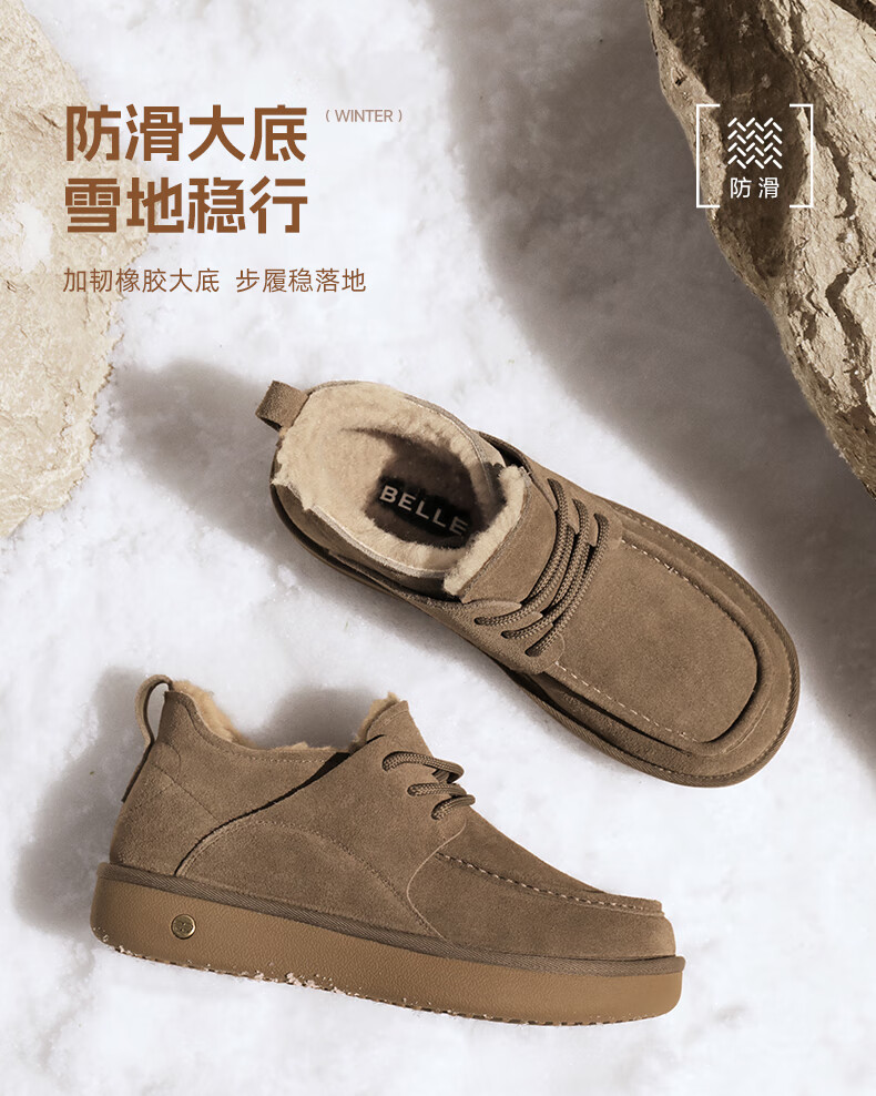 百丽户外休闲雪地靴男冬季商场款保暖东北靴8XX01DD5 卡其色 42