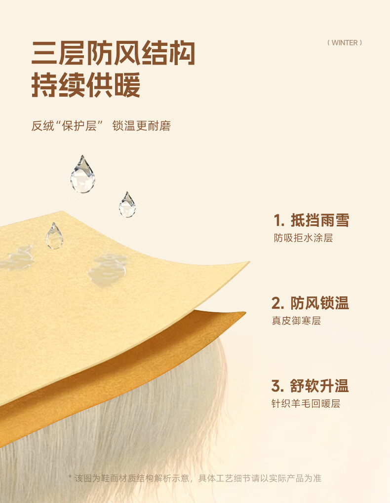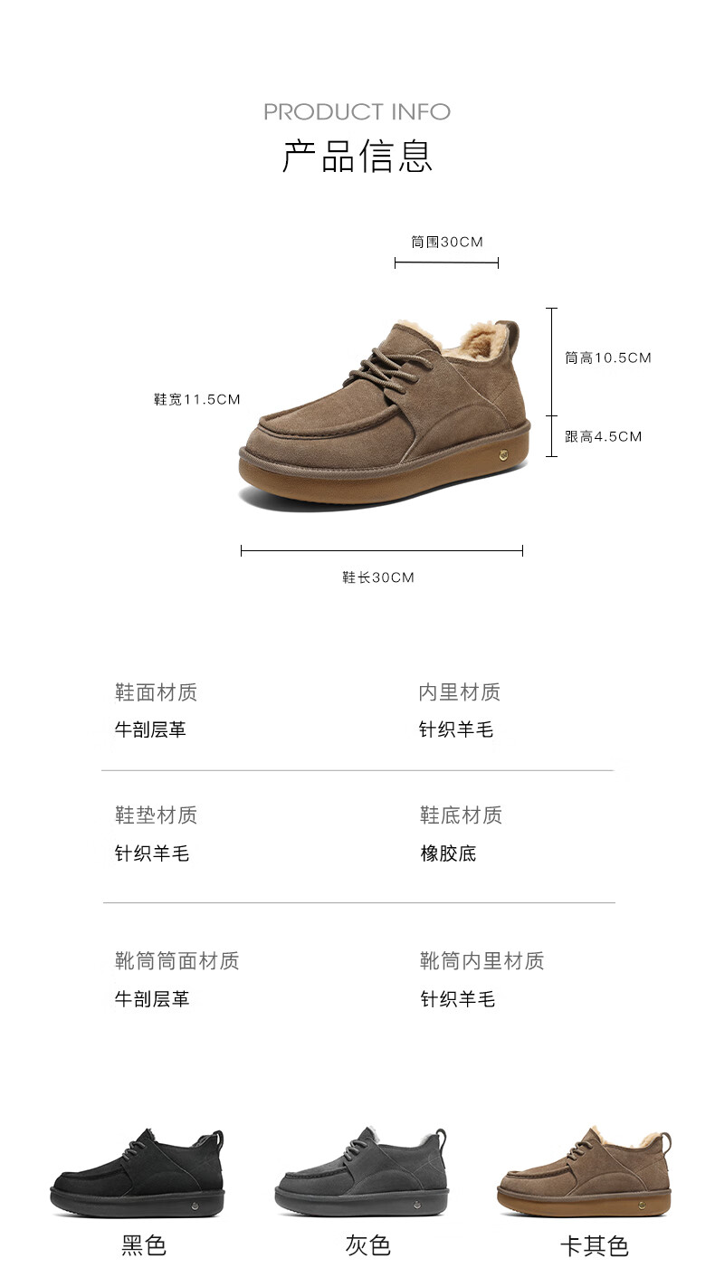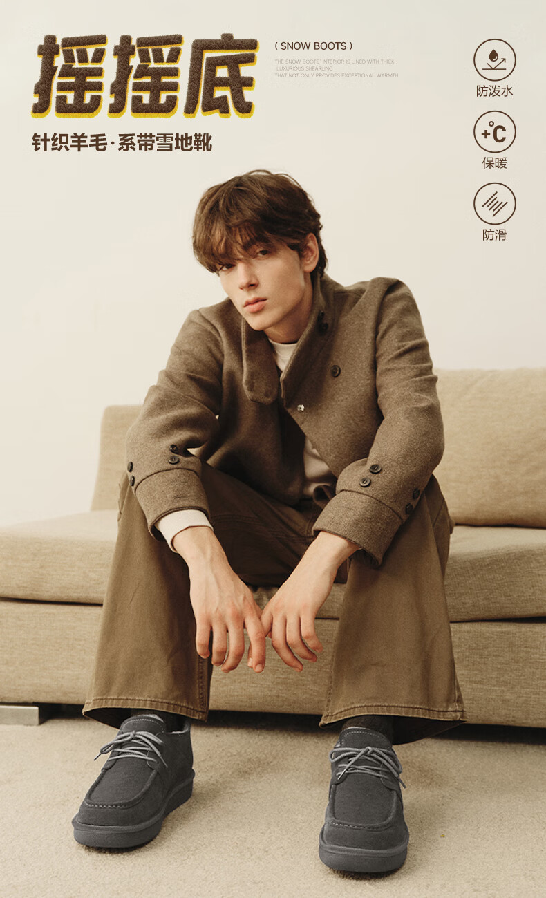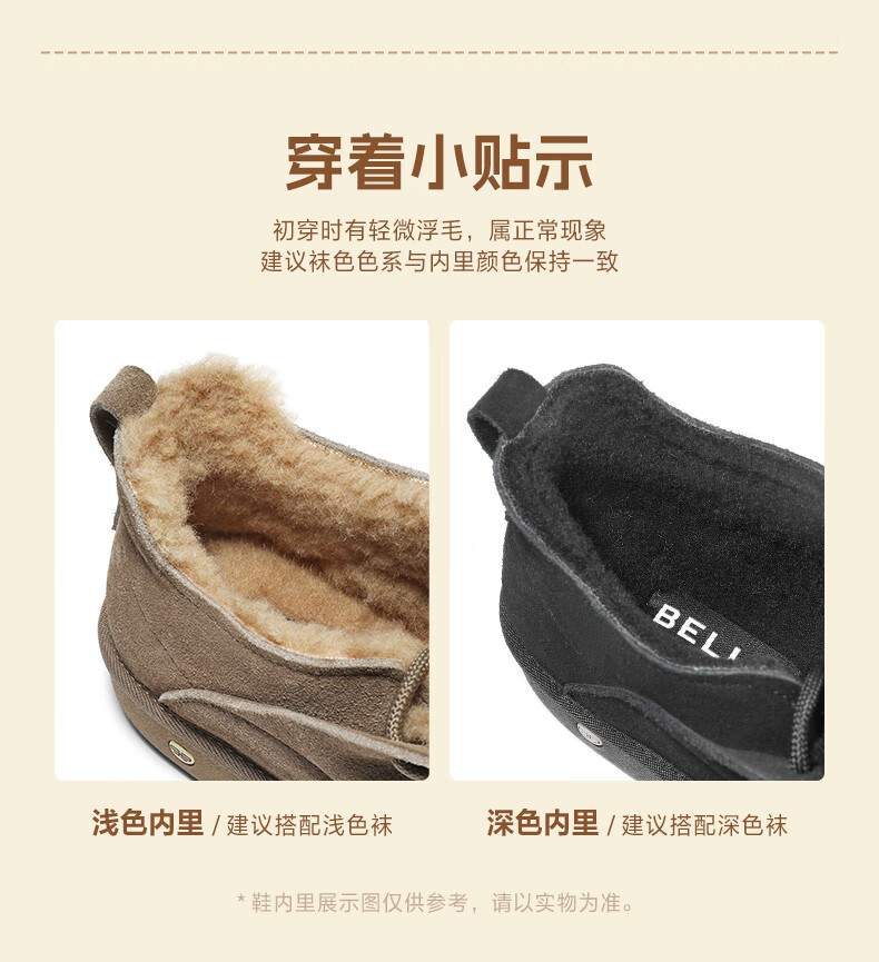 百丽户外休闲雪地靴男冬季商场款保暖东北靴8XX01DD5 卡其色 42