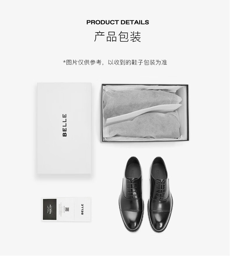红蜻蜓男鞋平底秋冬牛皮休闲鞋男圆头商务正装皮鞋男WTA306871黑色44
