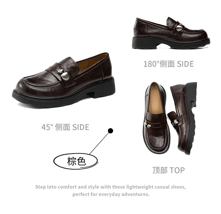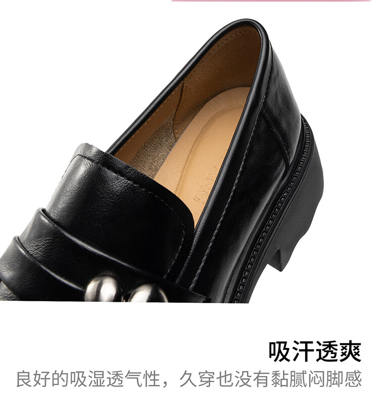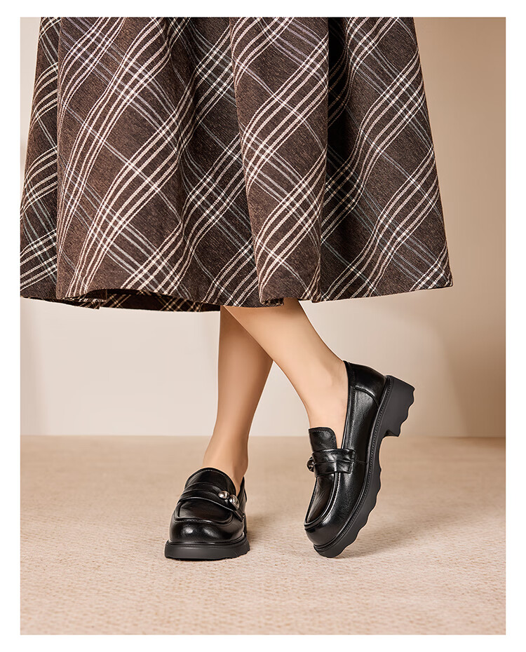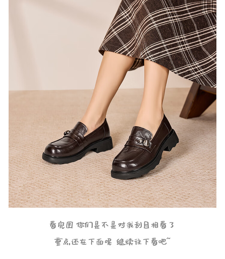 天美意乐福鞋厚底商场同款一脚蹬女鞋上班通勤小皮鞋新款