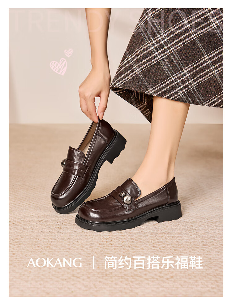 奥康(Aokang)女鞋秋季乐福鞋简约百搭浅口单鞋通勤一脚蹬舒适中跟黑色39码