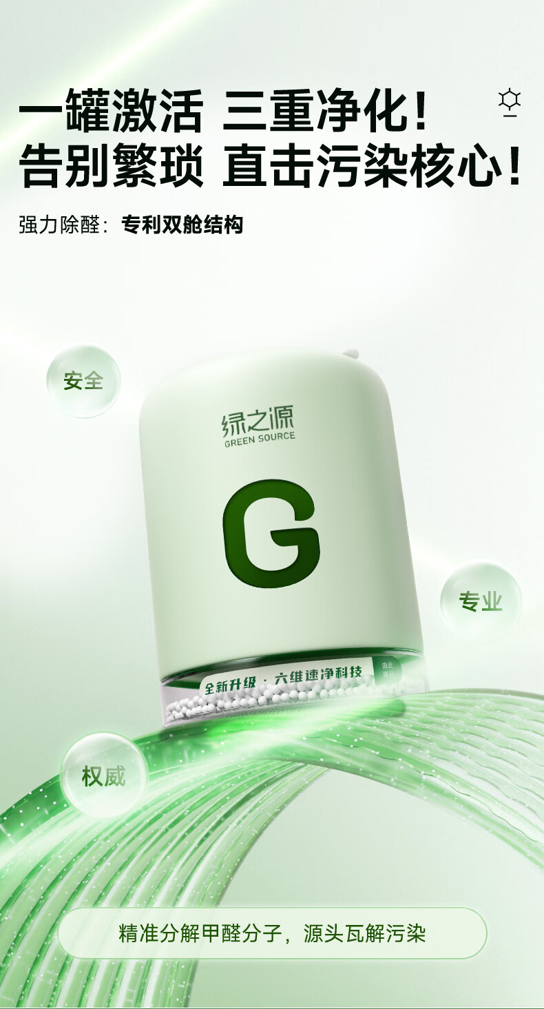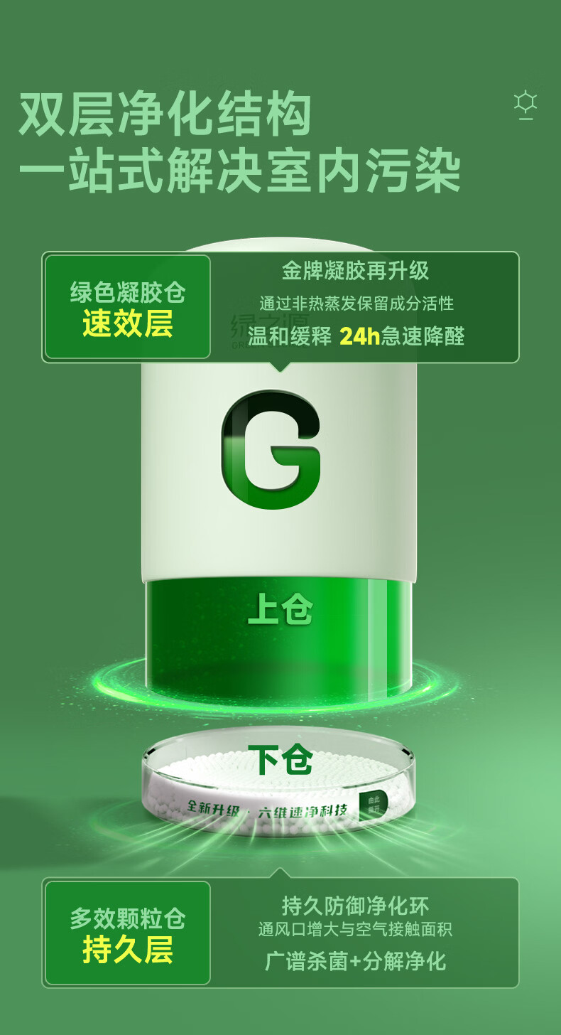 绿之源大G多效除醛罐 双仓除甲醛果冻除醛魔盒 新房新车甲醛清除剂 2罐丨大G多效除醛罐丨净化 256g 1盒